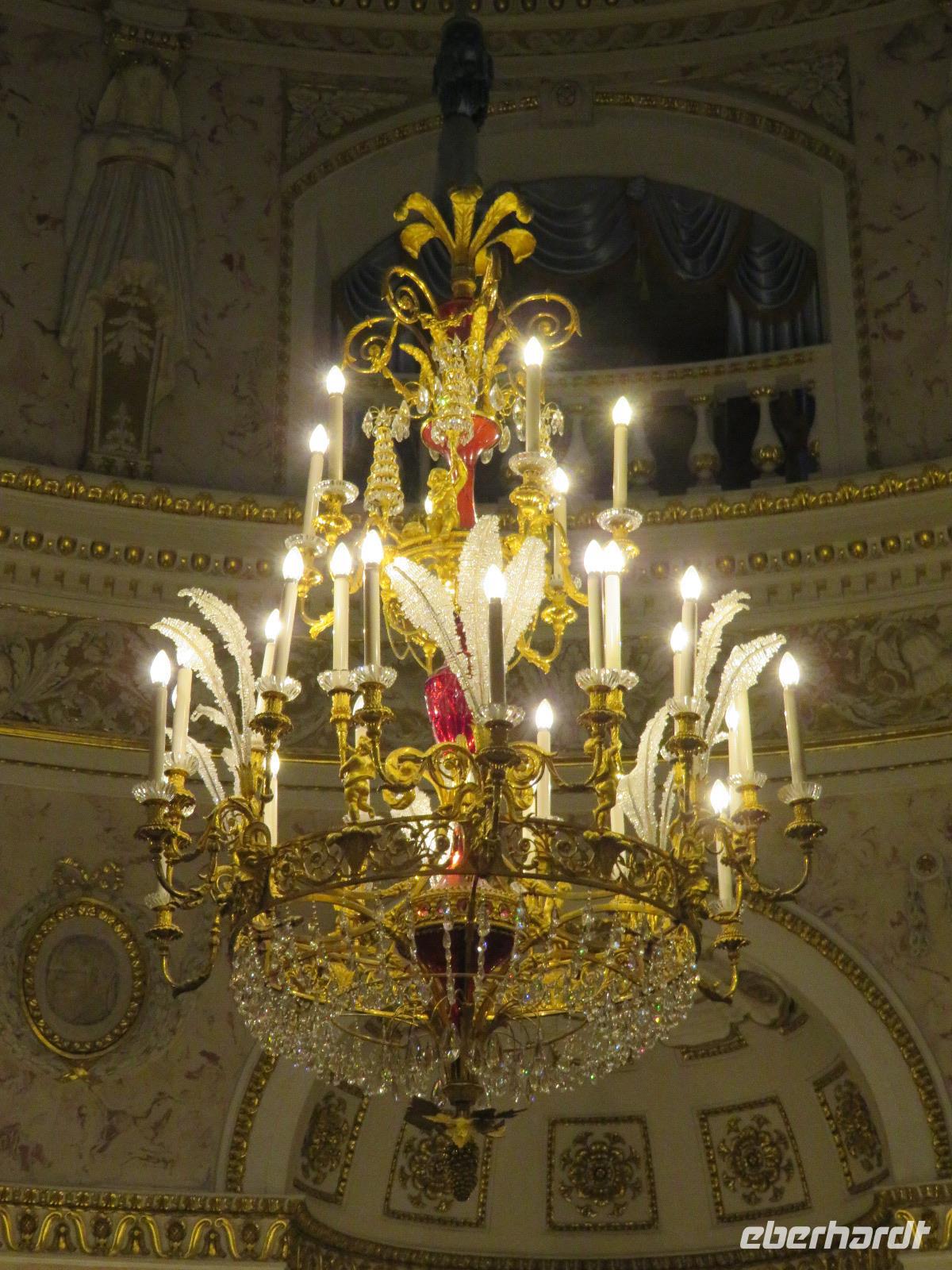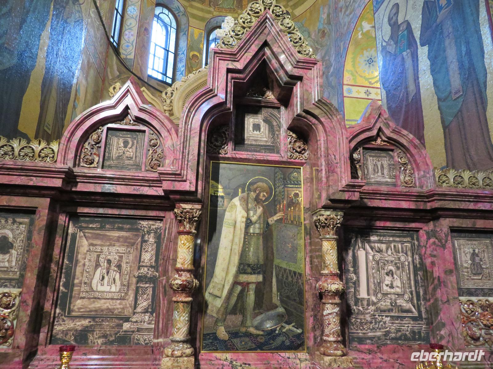 Der Tag sollte ein langer werden; insofern starteten wir erst Zehn Uhr. Von deutschen Gästen oft gewünscht, schauten wir mit dem Bus zunächst zum Smolny-Kloster, in dessen Mädchen-Schulgebäuden 1917 die Bolschewiki ihre Zentrale hatten. Heute befindet sich hier der Sitz des Petersburger Bürgermeisters. Baulich interessant, weil im feinsten russischen Barock sind die Klostergebäude und Kirche im nordwestlich angeschlossenen Komplex. Logistisch sinnvoll machten wir dann Stopp an der Christi-Erlöser-Kirche, die Ende des 19. Jahrhunderts an jener Stelle errichtet wurde, wo 1881 ein tödliches Attentat auf den Zaren Alexander II. verübt wurde (eben „auf dem Blute"). Diese sehr russisch anmutende Kirche wurde erst 1913 eröffnet und entstammt so einer Bauperiode, die wir in Deutschland eher als Historismus (Neobarock) bezeichnen würden. 1997 wurde Sie nach Schließungen und Fremdnutzungen in der Sowjetzeit wiedereröffnet und steht nunmehr wieder mit typisch russischen Zwiebeltürmen als eher museal genutzte Kirche am Ufer eines Kanals. Anschließend ging es mit Jekaterina zur Isaakkathedrale, die heute zu den bedeutendsten Kirchen Russlands zählt. Da passt natürlich das einstige Pendel zur Erklärung der Erdrotation nicht mehr ins Bild, auch wenn sich für manchen Touristen damit Jugenderinnerungen verbinden.