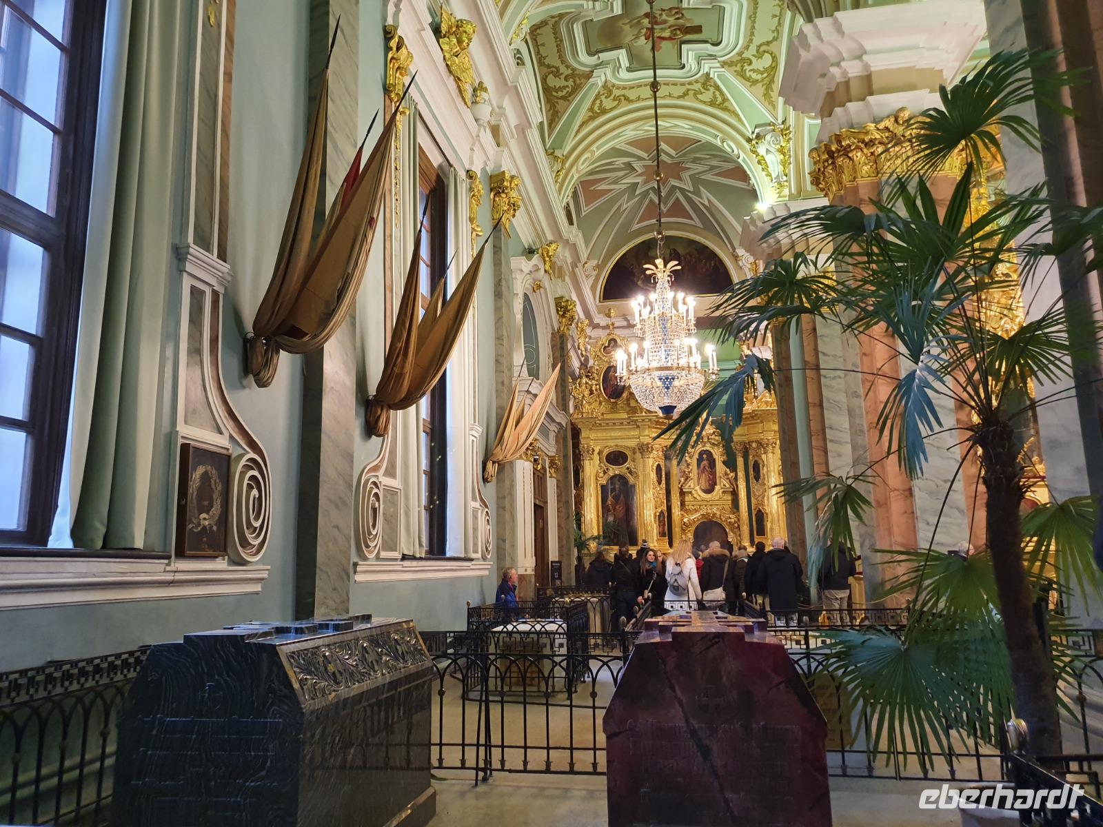 Ursprünglich war die Festung als Schutz vor den Schweden gedacht gewesen - diente jedoch später vor allem als Gefängnis und als Familienfriedhof der Romanow-Dynastie. Das wichtigste Bauwerk auf dem Festungsgelände ist die Peter-und-Paul-Kathedrale. Die erste hölzerne Kirche entstand bereits im Jahr 1702 - wurde von dem Architekten Domenico Trezzini jedoch im Barockstil neu aufgebaut. Die prunkvolle Kathedrale sollte als Symbol für Russlands aufstrebende Macht dienen. In der Kirche befinden sich heute die Gräber von Peter I. und Katharina II.