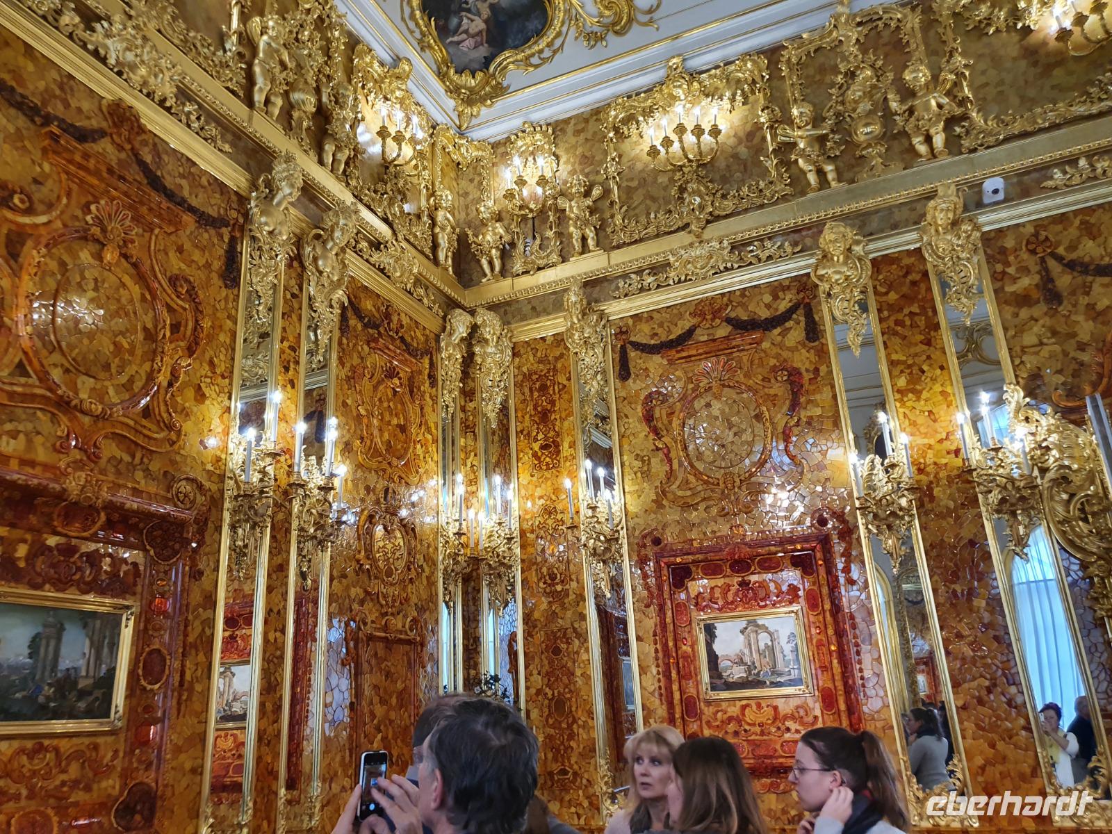 Berühmt ist der Palast für sein Bernsteinzimmer: 500.000 Bernsteinscheibchen sind hier passgenau auf die Wände angebracht. Erst seit kurzem ist es hier wieder gestattet ohne Blitz zu fotografieren.