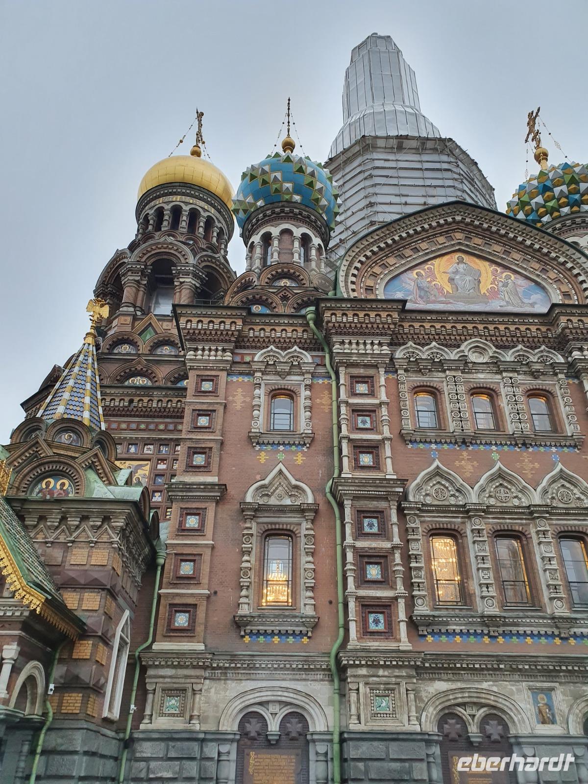 Im Anschluss fuhren wir zur sogenannten Blutskirche - oder auch Erlöserkitche genannt. Die Kirche wurde zum Andenken von Kaiser Alexander dem II. erbaut. Genau an der Stelle, an der die Kirche heute steht, wurde er am 01.03.1881 von Mitgliedern der terroristischen Organisation „Volkswille" tödlich verletzt. Kaiser Alexander II wollte die Leibeigenschaft abschaffen - was zu der damaligen Zeit noch nicht als Fortschritt angesehen wurde.