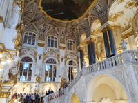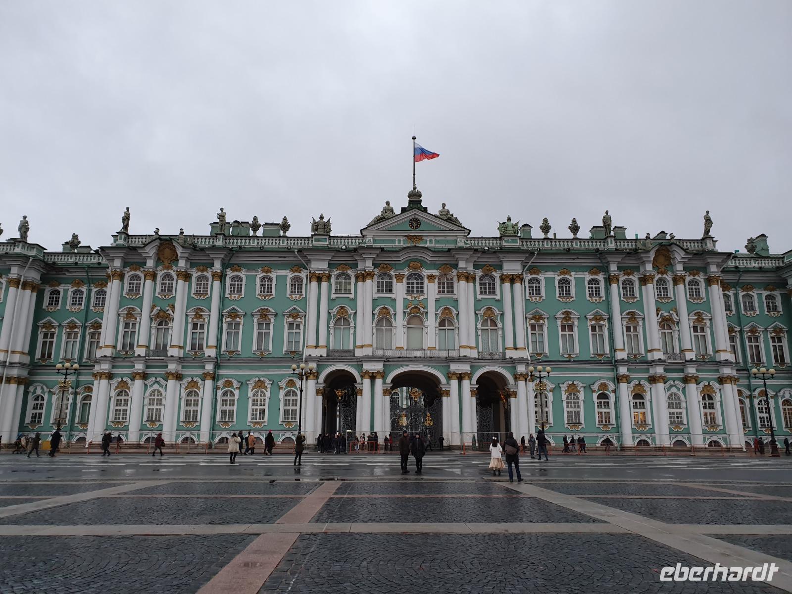 Nach einem stärkenden Frühstück im Hotel, stand heute eine der größten Kunstsammlungen weltweit auf unserem Programm: die Eremitage. Hier finden sich über 60.000 Exponate und unter anderem Gemälde von Rembrandt, Rubens und Leonardo da Vinci. Die Eremitage wurde im Auftrag von Zarin Eliabeth in dem Zeitraum 1754 - 1762 von Bartolomeo Rastrelli erbaut. Den Grundstock für die große Kunstsammlung legte jedoch Katharina die Große, die in dem Winterpalast zahlreiche Gemälde und Kostbarkeiten ausstellte und sammelte. Katharina kam nach dem Mord an ihrem Mann - Peter III - im Jahr 1762 auf russischen Zarenthron.