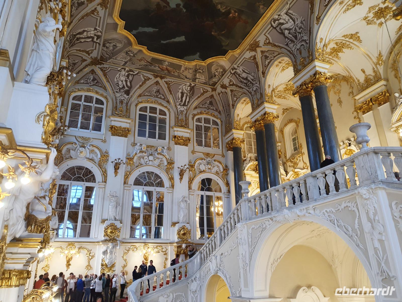 Die Rämlichkeiten der Eremitage, sind mit Vergoldungen, Stuckverzierungen, riesigen Malachit-Vasen und imposanten Treppenaufgängen schon Kunstwerke für sich und wir waren uns danach alle einig, dass zwei Stunden auf alle Fälle zu kurz sind, um einen vollständigen Eindruck von diesem Gebäude zu erhalten.