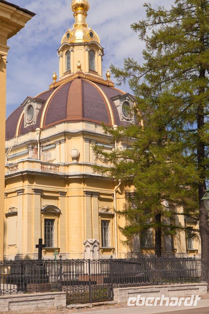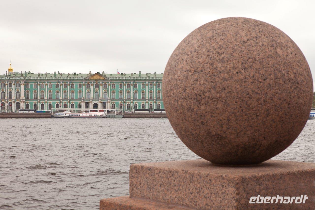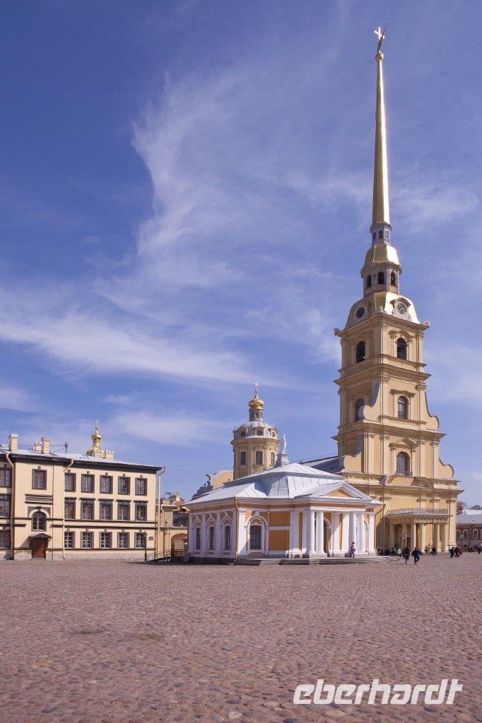 Im bequemen Reisebus chauffiert uns Michael bis zur im Barockstil erbauten Nikolaus-Marine-Kathedrale, die für die Seeleute der Zarenzeit errichtet wurde. Das Besondere an diesem Kirchenbau und typisch für Russland sind zwei Kirchräume, die sogenannte Unter- bzw. Oberkirche. Die Unterkirche wirkt in der Bauweise eher gedrungen und wird für die Gläubigen zum Gebet täglich geöffnet, wobei die Oberkirche lediglich an Feiertagen genutzt wird. Unser nächster Stopp ist der wohl schönste wasserumgebene Uferplatz von St. Petersburg. Auf dem Strelka Platz spazieren wir entlang und genießen die Aussicht zum Winterpalast und den steinernen Mauern der Festungsinsel Peter-und-Paul. Als Schutz gegen die schwedische Invasion begann Peter der Große 1703 mit dem Bau der Festung, in deren Mitte sich die Peter- und- Paul- Kathedrale mit der schlanken gold glänzenden Turmnadel erhebt. Geschaffen wurde dieses Bauwerk, heute die älteste Kirche der Stadt und Grablege der Romanowdynastie, vom italienisch-schweizerischen Architekten Domenico Trezzini. Die Festung wurde ab 1720 als Kasernenanlage genutzt und war eines der gefürchtetsten Gefängnisanlagen des Zarenreiches, in der auch Maxim Gorki und Fjodor Dostojewski inhaftiert waren. So viele neue Eindrücke machen hungrig und so verleben wir die Mittagpause entlang des Newski Prospektes.