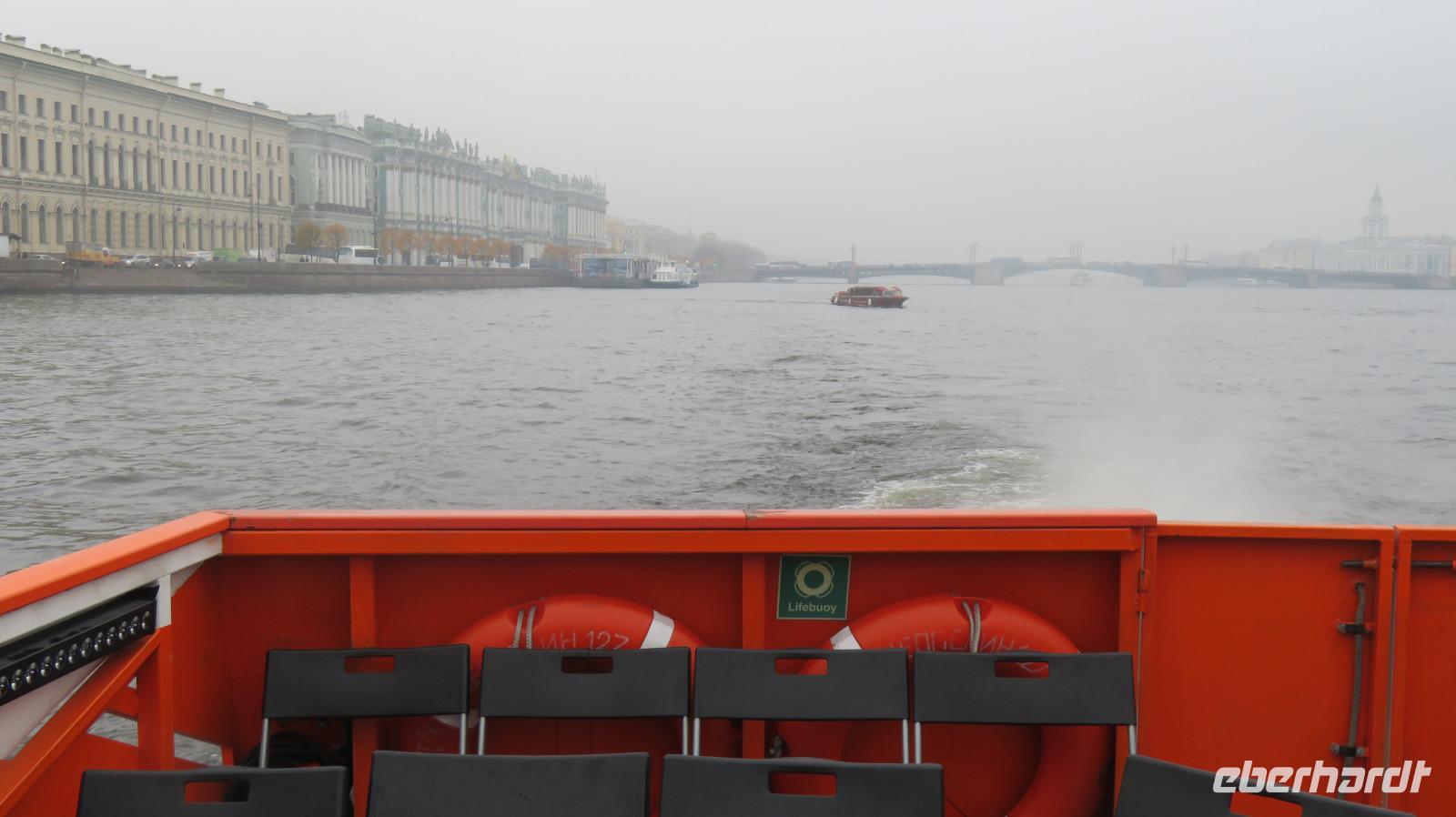 Nach einer kurzen Mittagsfahrt unternahmen wir eine Bootsfahrt auf den Kanälen von St. Petersburg. Über die Kanäle Moika und Fontanka gelangten wir zu der Newa. Trotz nicht so guter Sicht, genossen wir alle den Blick auf St. Petersburg vom Wasser aus.