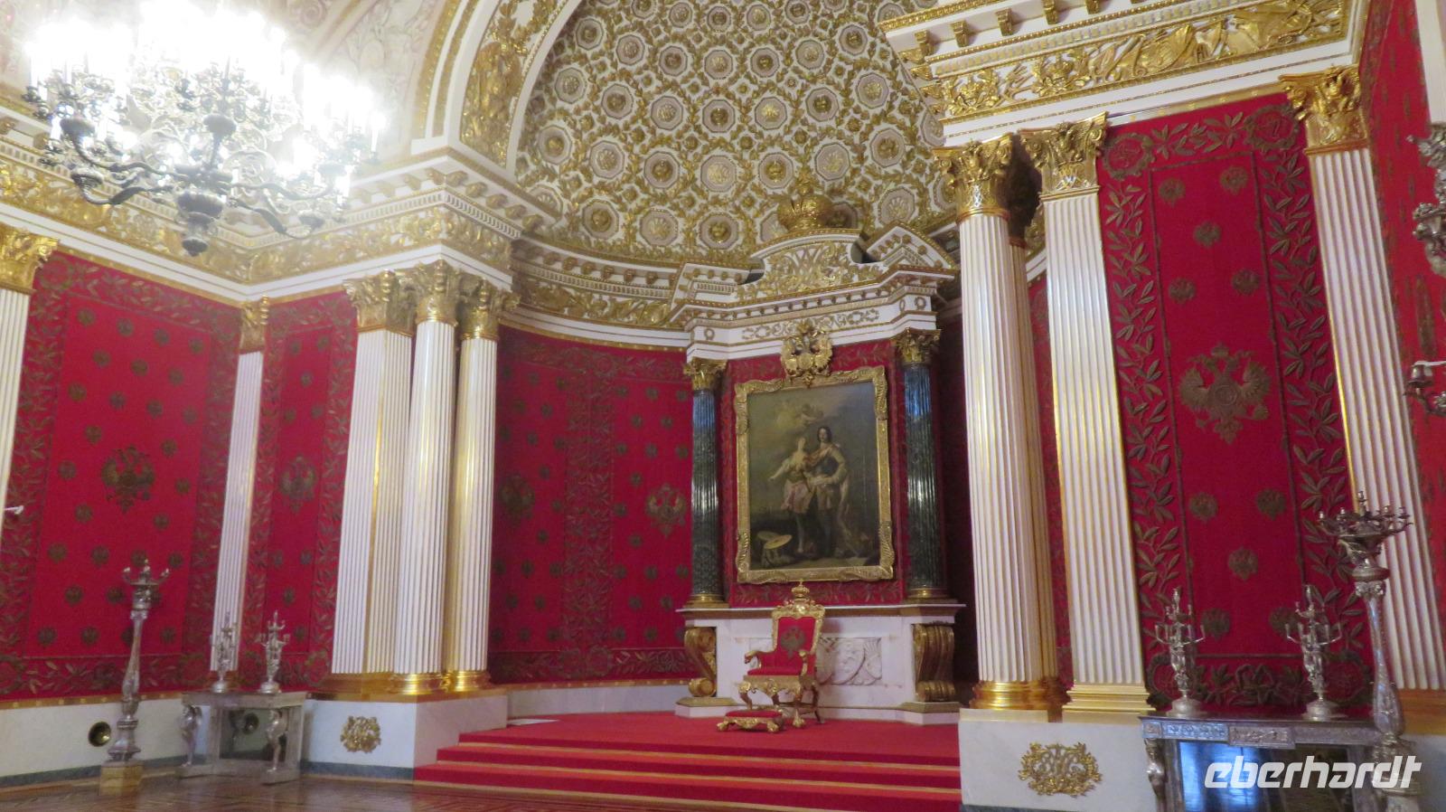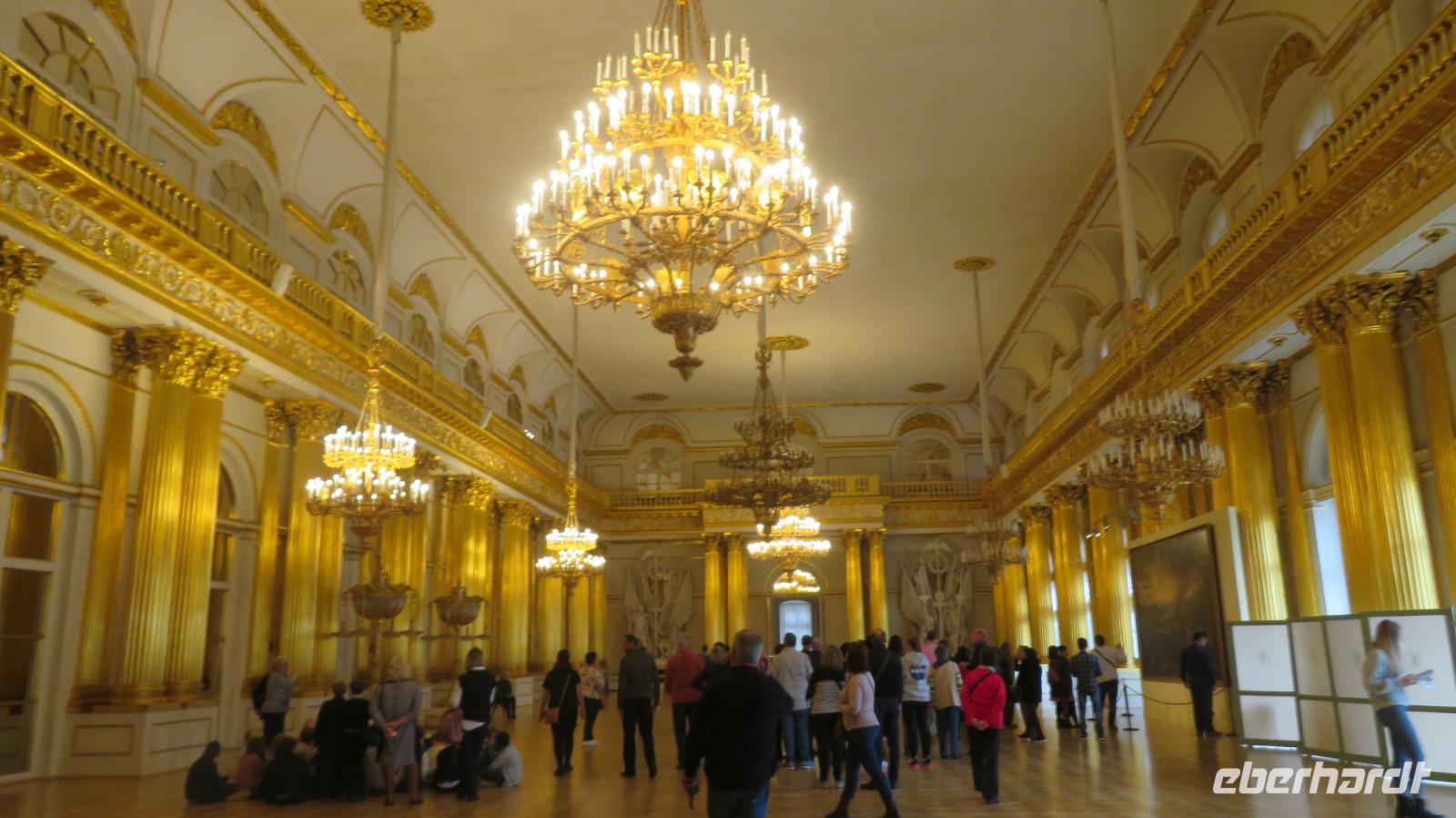 Zu seinen Bauwerken zählt auch die Eremitage - die wir anschließend besuchten. Die Eremitage zählt mit 60.000 Exponaten zu den größten Kunstsammlungen weltweit. Den Grundstock für diese große Sammlung legt Katharina die Große, die in dem Winterpalast zahlreiche Gemälde und Kostbarkeiten ausstellte und sammelte. Katharina kam nach dem Mord an ihrem Mann - Peter III - im Jahr 1762 auf russischen Zarenthron.