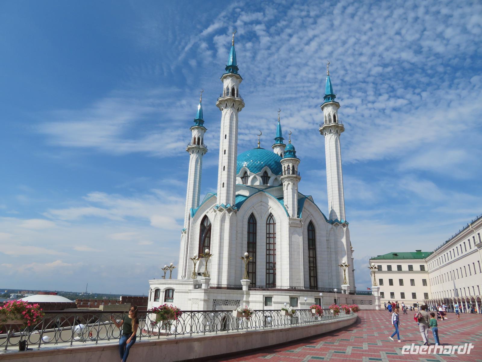 Der Schlafwagenschaffner brauchte uns nicht wach zu klopfen; erwartungsvoll schafften wir es allein. Pünktlich 8:54 Uhr lief der Zug in Kasan ein. Unsere tatarische Reiseleiterin Alina stand bereit und begleitete uns ins Mariott-Hotel. Nach Zimmerbezug, Frühstück und Duschen konnten wir zur Stadtbesichtigung starten.