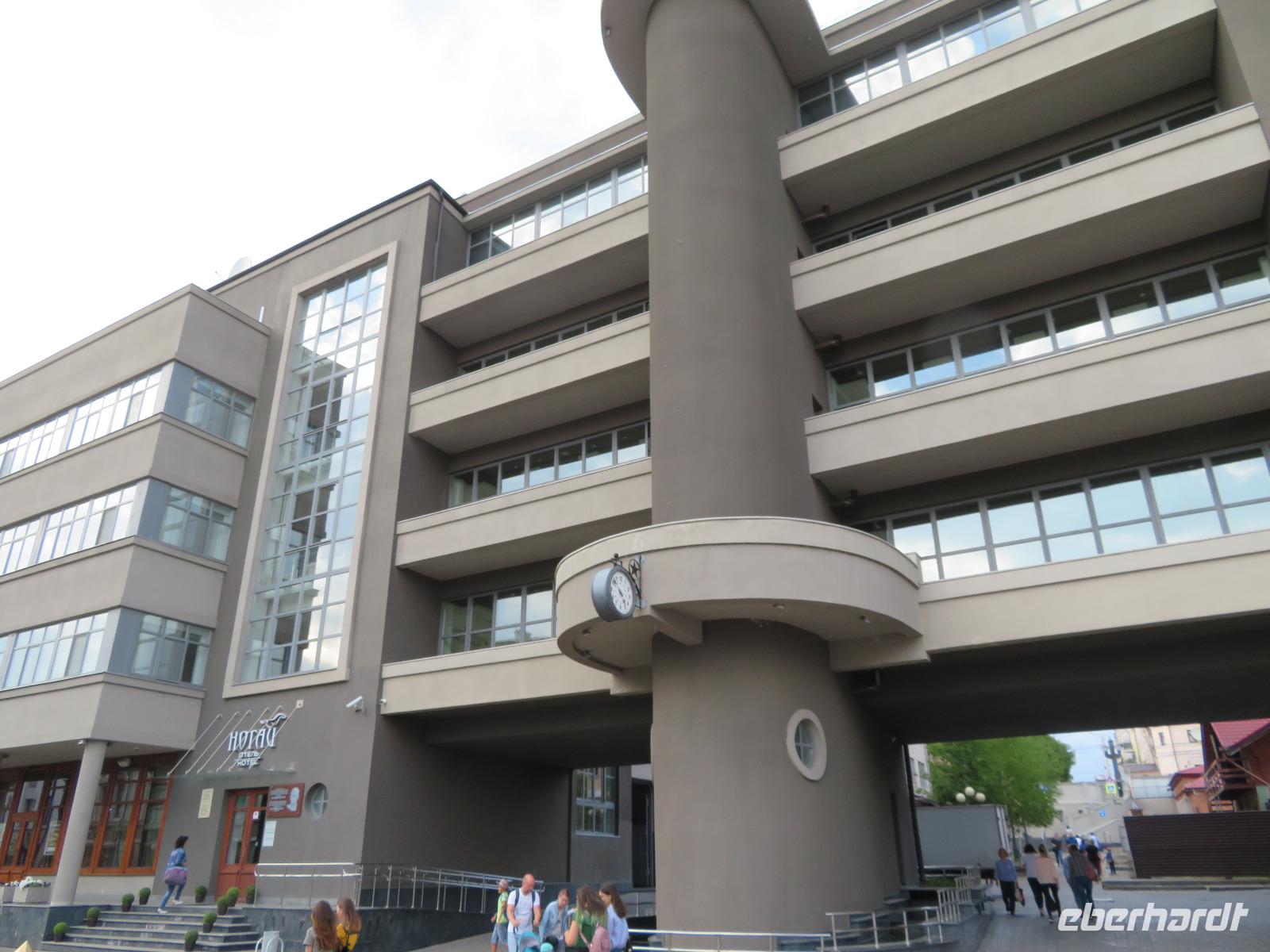 Ausgeschlafen trafen wir uns erst 10 Uhr zu einer Stadttour. Wir begannen am Jelzin-Museum in einem Business-Center. Die Ausstellung, deren Gestaltungskonzept Bezug nimmt die biblische Schöpfungsgeschichte, nach der die Welt in sieben Tagen erschaffen worden sein, zeit mannigfaltige Facetten aus dem Leben des einstigen Präsidenten; nicht zu vergessen, sein Anteil an der Zerschlagung zweier Putschversuche 1991 und 1993.