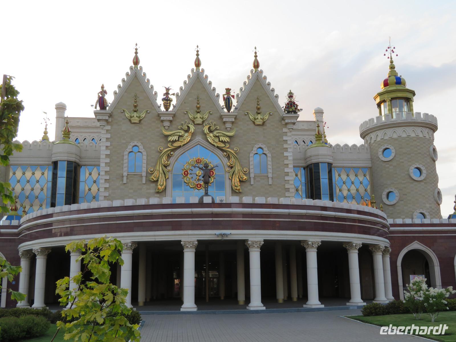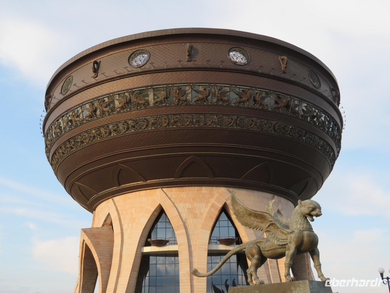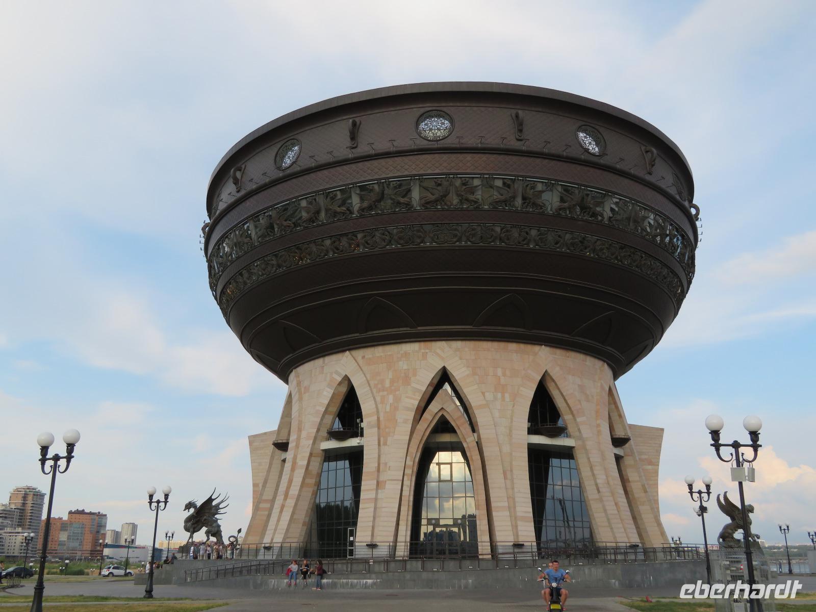 Zum späten Nachmittag fuhren wir auf die andere Seite der Kasanka zum „Kessel", dem Standesamt der Stadt, von wo wir einen spätnachmittäglichen Blick auf die Stadtsilhouette genossen. Durch die modernen Schlafstätte Kasans mit einem Stopp am Fussball-WM-Stadion erreichten wir unsere Restaurant „Kreuzung des Jazz", wo wir mit Swing-Live zu Abend aßen.