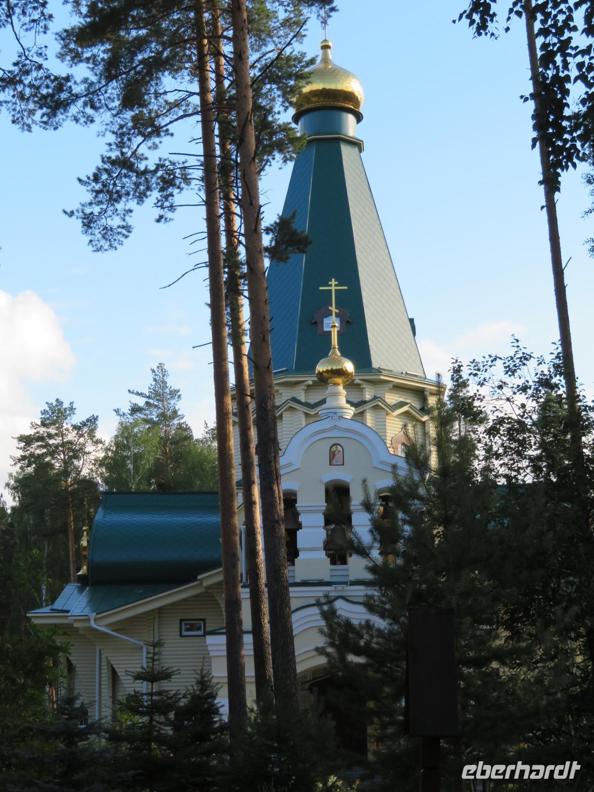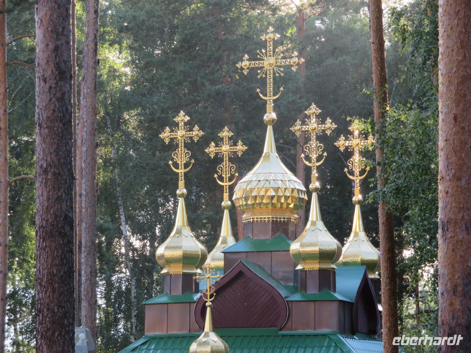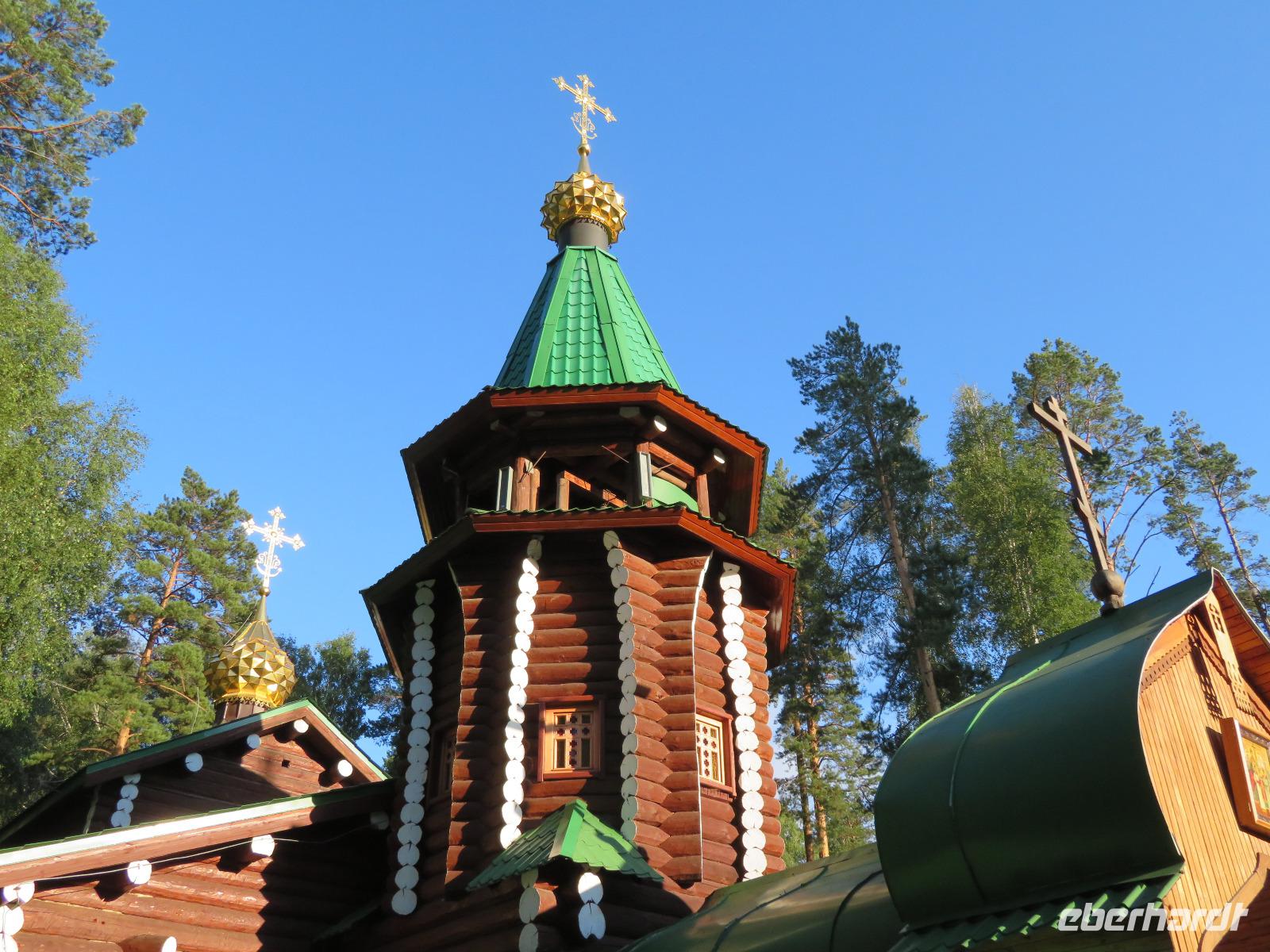 Anschließend fuhren wir nach Ganina Jama, einem Ort, an dem die ermordeten Romanows einige Tage verscharrt wurden. Hier wurde seit 2000 ein Männerkloster errichtet; hübsche Holzkirchlein mit goldenen Kuppeln im lichten Wald erfreuen heute Gläubige und ungläubige Touristen.