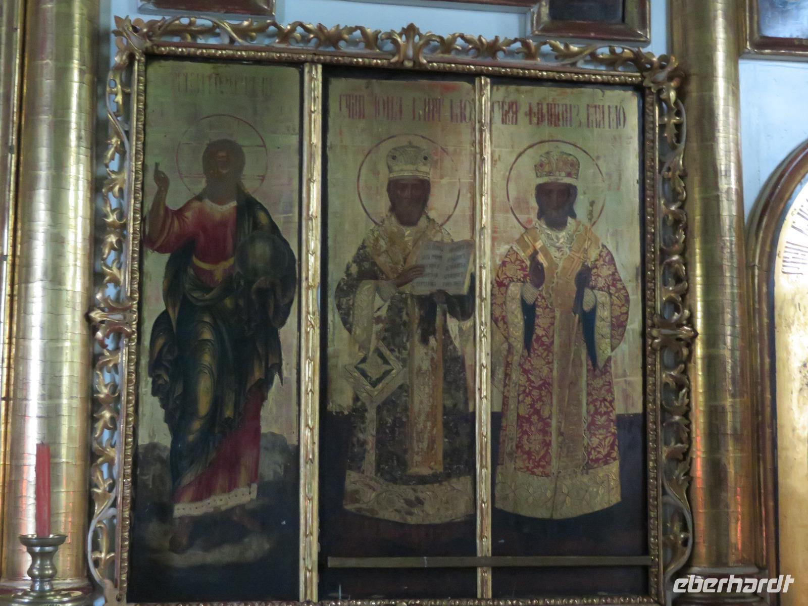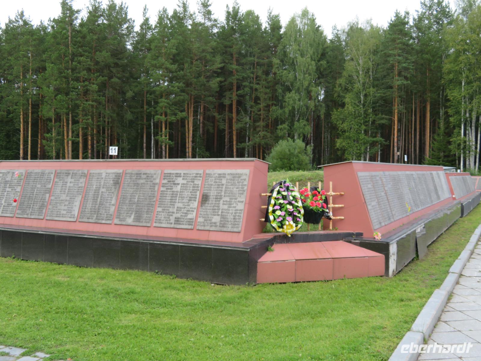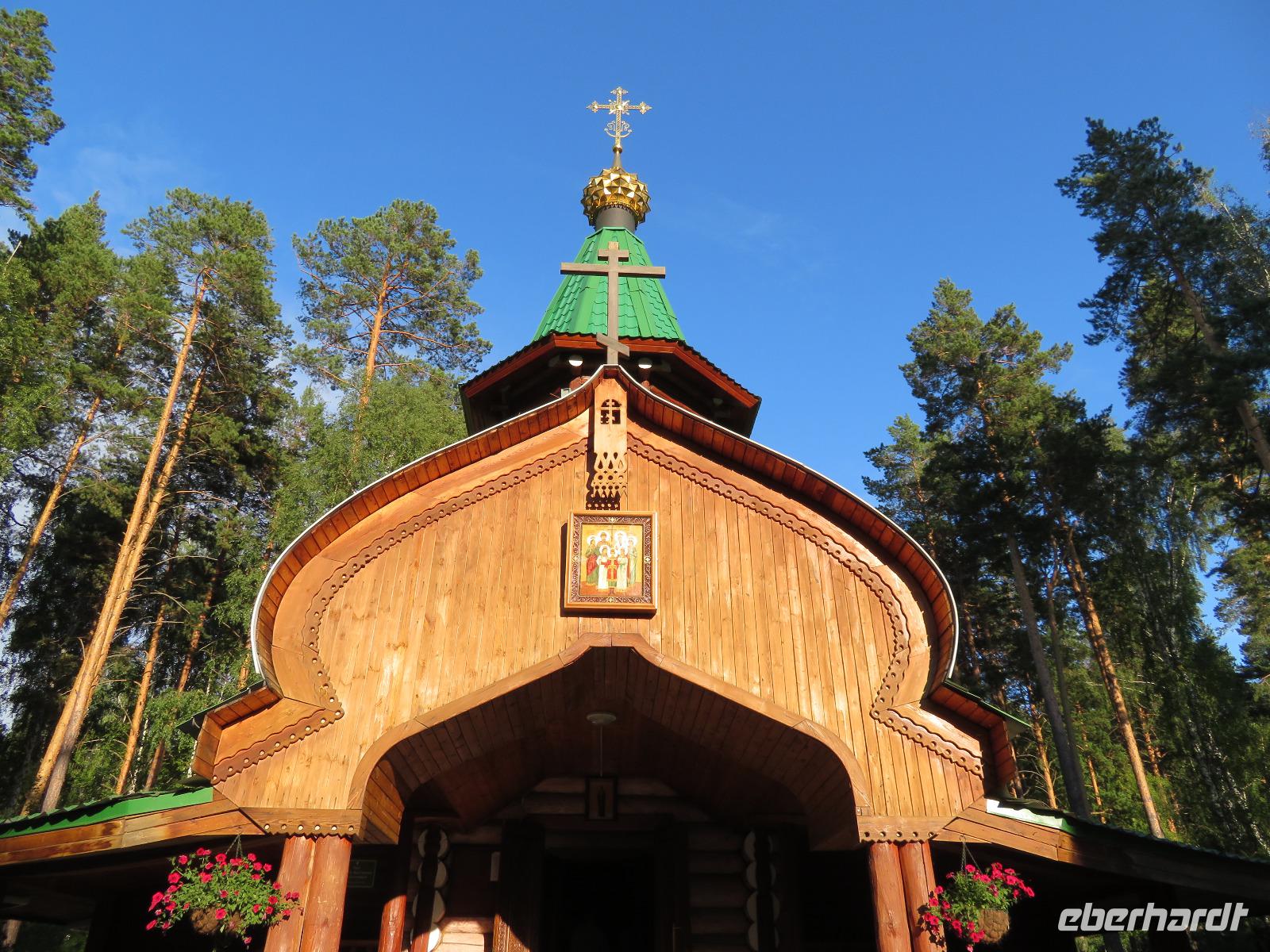 Anschließend fuhren wir nach Ganina Jama, einem Ort, an dem die ermordeten Romanows einige Tage verscharrt wurden. Hier wurde seit 2000 ein Männerkloster errichtet; hübsche Holzkirchlein mit goldenen Kuppeln im lichten Wald erfreuen heute Gläubige und ungläubige Touristen.