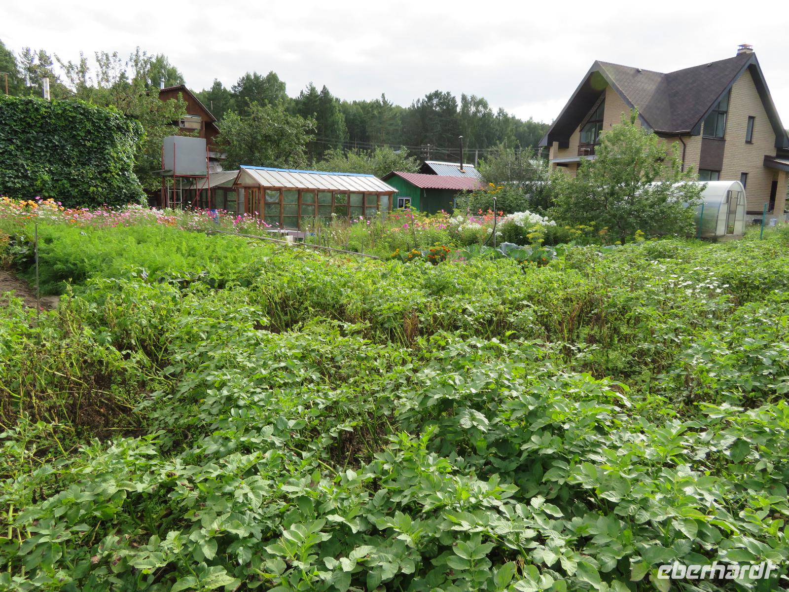 Unser Zug im Zuglauf Tscheljabinsk - Wladiwostock in etwas ungeordneter Reihung. Unser Wagon 15 also mittendrin, was uns auf dem abendlichen Weg zum Wagon-retaurant den Durchgang durch „Platzkartnij-Waggons" voller Nordkoreanischer Gastarbeiter ermöglichte. Am stets geschlossenen Fenster blickten wir am Nachmittag auf eine Mittelgebirgslandschaft mit kleinen Orten und Datschen an den Hängen, an denen sich der Zug in großen Gleisbögen vorbeiwand. Spätnachmittagslicht tauchte die hügelige Landschaft, immer wieder durchbrochen von Blütenflächen der Datschen mit Kartoffelacker, in eine anmutige Landschaft.