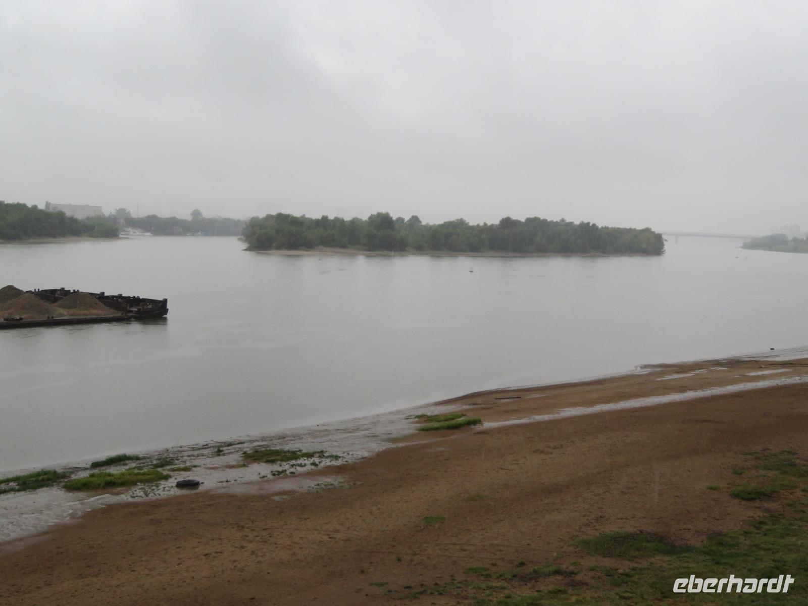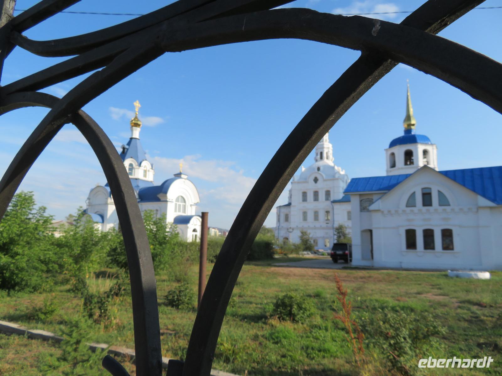 Ausgeschlafen trafen wir uns zu einem Stadtbummel in der dreihundertjährigen Stadt Omsk. Die einstige Festungsstadt an der Mündung des Om in den Irtysch hat sich in den vergangenen Jahren herausgeputzt. Vom Hotel am Koltschak-Haus vorbei bummelten wir zur Landspitze am Zusammenfluss von Om und Irtysch. Weiter ging es über die Leninstraße mit Gebäuden des Provinz-Klassizismus. Bei zunehmendem Regen konnten wir indess den freundlichen Teil der Stadt kaum genießen. Stopp an der wiedererrichteten Kirche der Maria-Himmelfahrt, deren Äußeres nach wenigen Jahren bereits erste „Falten" bekommt. Traditionell dann Fahrt zur einstigen Festung und ein erster Fußgängerstopp am Denkmal des 1850-54 nach Omsk verbannten Dostojewski. Rekonstruierte Festungsanlagen würden eigentlich die Entwicklung von kleinen Unternehmen mit Handwerk und Gastronomie in attraktiver Lage begünstigen, aber der Fortschritt in der Vermietung seit vergangenem Jahr ist gleich Null.