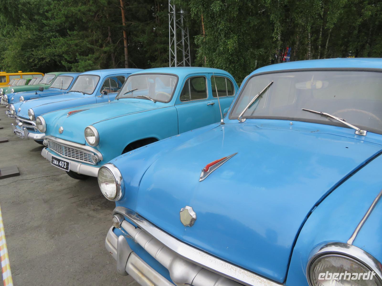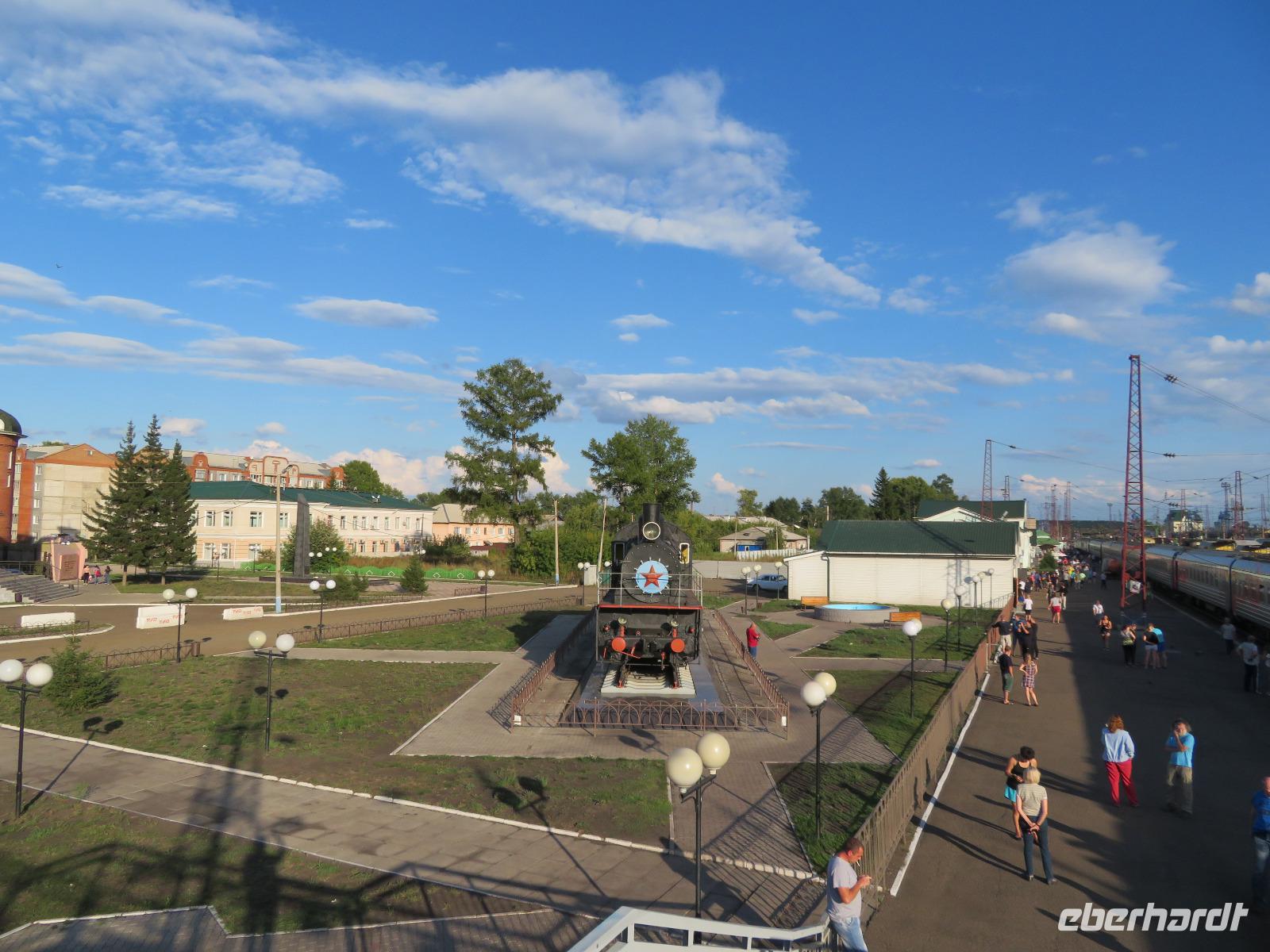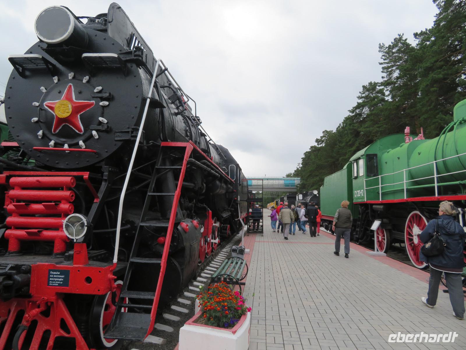 Wir begannen unsere Tour nach einer kleinen Stadtrundfahrt am Ufer des Ob und ließen uns die Entstehung der Stadt, die Anbindung an die Transsib und die Bedeutung des Zaren Alexander III. für die technisch-logistische Erschließung Sibiriens erklären. Von hier setzten wir, bei kühlem Wetter und drohendem Regen, unsere Busfahrt fort Richtung Stausee und dann in den Stadtteil Akademgorodok, zu Sowjetzeiten bedeutendes Forschungs-, Lehr- und Wohnstädtchen im Grünen. Mittlerweile entsteht ein neues Akademgorodok mit Gebäuden für start-ups und neuer Wohnbebauung; Zeichen der weiteren Entwicklung Russlands. Auf dem Rückweg dann ein Besuch im Eisenbahnmuseum der Stadt. Weit über einhundert Lokomotiven und verschiedenste Eisenbahnwaggons wurden zusammengetragen und künden von der Eisenbahngeschichte des Landes. Am Ende des Waggonparks dann noch eine Fläche mit alten Moskwitschs, Wolgas, Saparoshez und auch einem Katjuscha-Geschosswerfer. Manch Waggon stammte auch aus der ehemaligen DDR oder zahlreiche Lokomotiven trugen das Skoda-Werkzeichen.