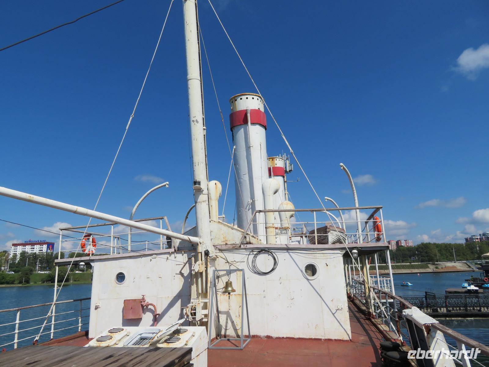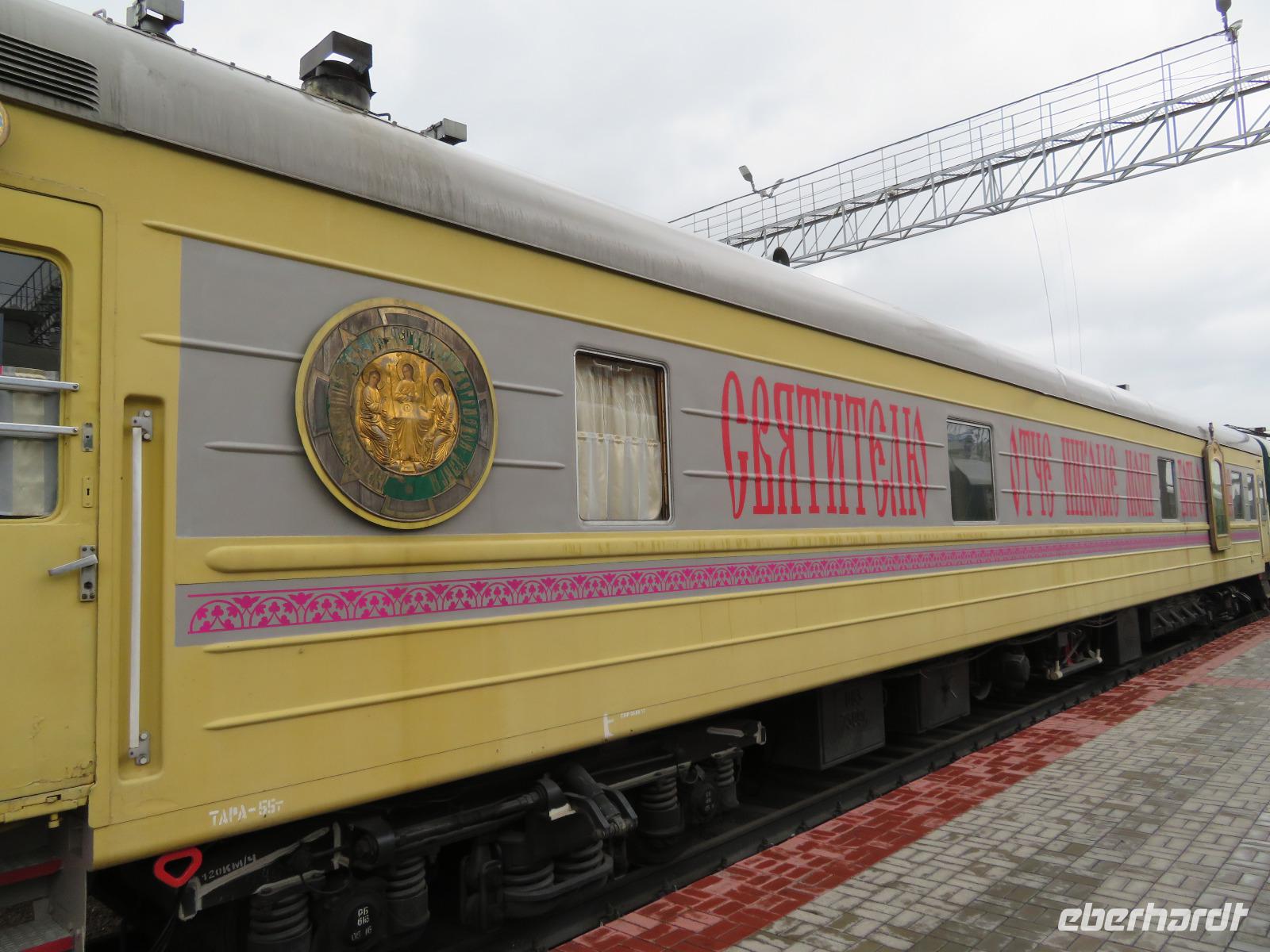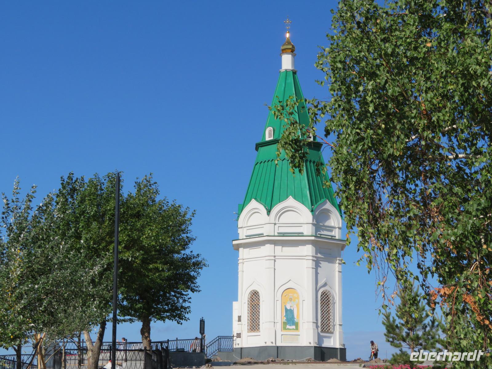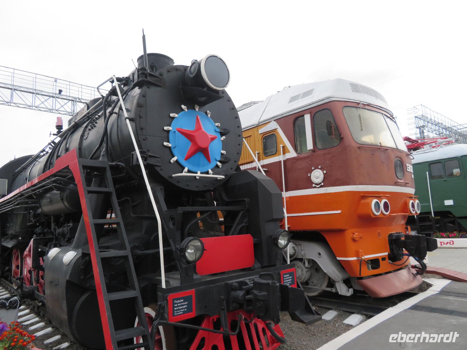 Wir begannen unsere Tour nach einer kleinen Stadtrundfahrt am Ufer des Ob und ließen uns die Entstehung der Stadt, die Anbindung an die Transsib und die Bedeutung des Zaren Alexander III. für die technisch-logistische Erschließung Sibiriens erklären. Von hier setzten wir, bei kühlem Wetter und drohendem Regen, unsere Busfahrt fort Richtung Stausee und dann in den Stadtteil Akademgorodok, zu Sowjetzeiten bedeutendes Forschungs-, Lehr- und Wohnstädtchen im Grünen. Mittlerweile entsteht ein neues Akademgorodok mit Gebäuden für start-ups und neuer Wohnbebauung; Zeichen der weiteren Entwicklung Russlands. Auf dem Rückweg dann ein Besuch im Eisenbahnmuseum der Stadt. Weit über einhundert Lokomotiven und verschiedenste Eisenbahnwaggons wurden zusammengetragen und künden von der Eisenbahngeschichte des Landes. Am Ende des Waggonparks dann noch eine Fläche mit alten Moskwitschs, Wolgas, Saparoshez und auch einem Katjuscha-Geschosswerfer. Manch Waggon stammte auch aus der ehemaligen DDR oder zahlreiche Lokomotiven trugen das Skoda-Werkzeichen.