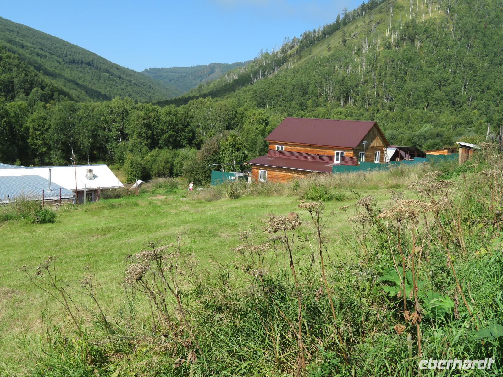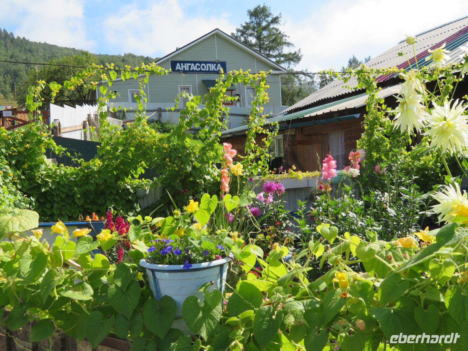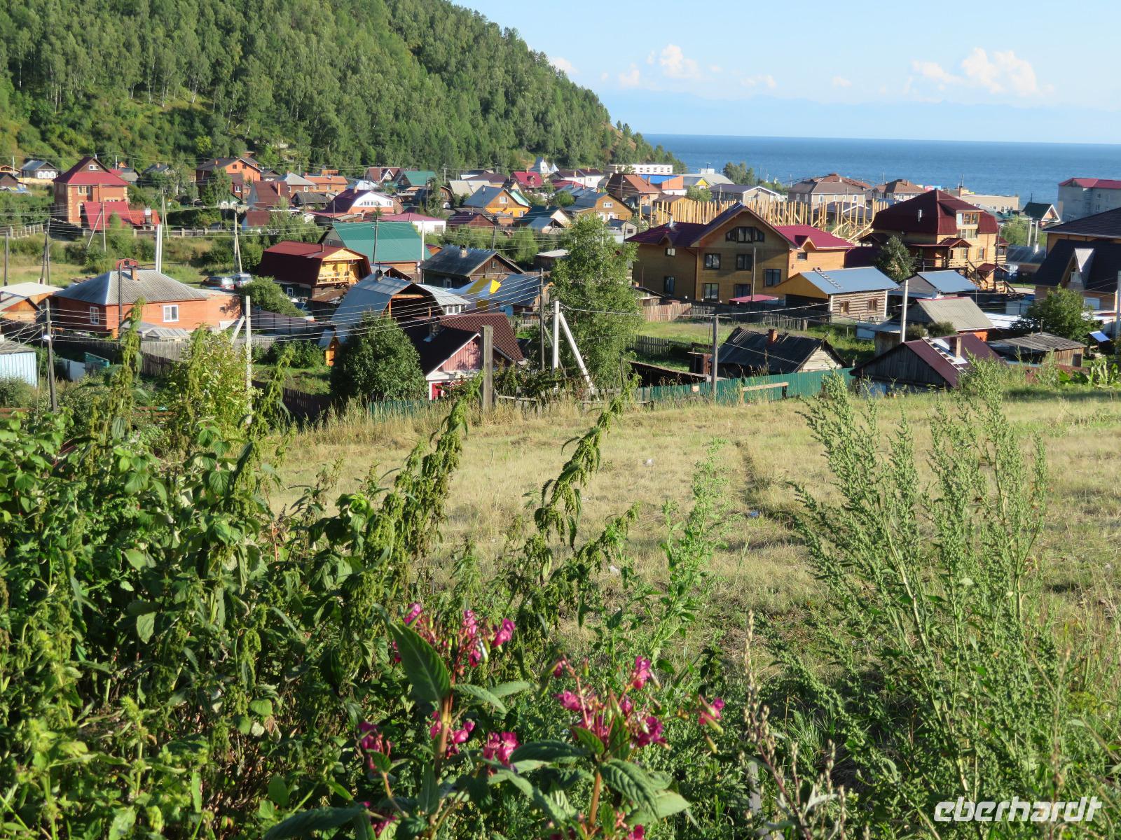 Der Kleinbus brachte uns gegen Mittag zum Hotel, so dass jeder den Nachmittag individuell am Baikal nutzen konnte. Vom Hotel liegt die Uferstraße - Gorkistraße - in Listwijanka nicht weit, um in zwanzig Fußminuten zum bekannten Touristenmarkt zu gelangen. Was vollmundige Reiseführer als Touristenzentrum am Baikalsee verkünden, ist immer noch eine Ansammlung von Kiosken mit Halbedelsteinschmuck, gegrilltem Schaschlik und mit warm und kalt geräuchertem Omul oder Maränen. Die dörflichen Häuser des Ortes ziehen sich in zwei Tälchen in die Berge hinein und werden neuerdings immer mehr unterbrochen durch einige Häuser der „neuen Russen" sowie einigen, zunehmend wachsenden, Hotelbauten. Neben traditionell vielen russischen Gästen waren es vor allem chinesische Gäste, die durch die Markstände quirlten. Bedenklich für den deutschen Reiseleiter, der seit Jahren die Szenerie in Listwijanka verfolgt, sind die Zunahme von Grünalgen auf den Steinen im sibirischen Meer und der wachsende Motorbootverkehr; keiner sagt auch so recht, wie Müll und Abwasser tatsächlich entsorgt werden; geordnete Parkplätze gibt es nicht und die Gastronomie wird durch recht einfache Gastronomie mit Plastegeschirr repräsentiert. Bio, Eco, vegetarisch, Faire Trade, Flaschen- und Dosenpfand - ???