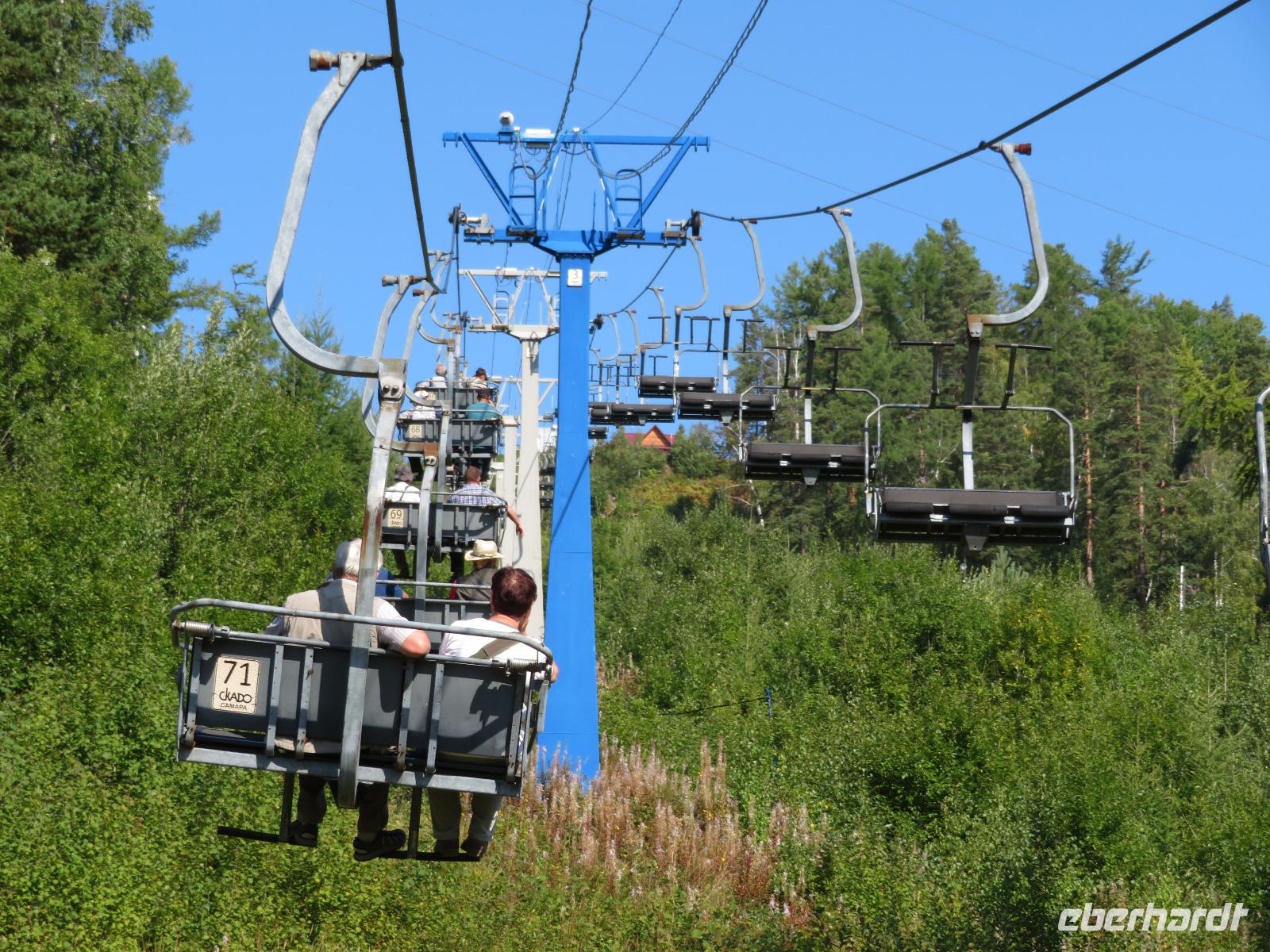 Ein örtlicher Minibus brachte uns hinauf zur unteren Seilbahnstation am Tscherskifelsen.