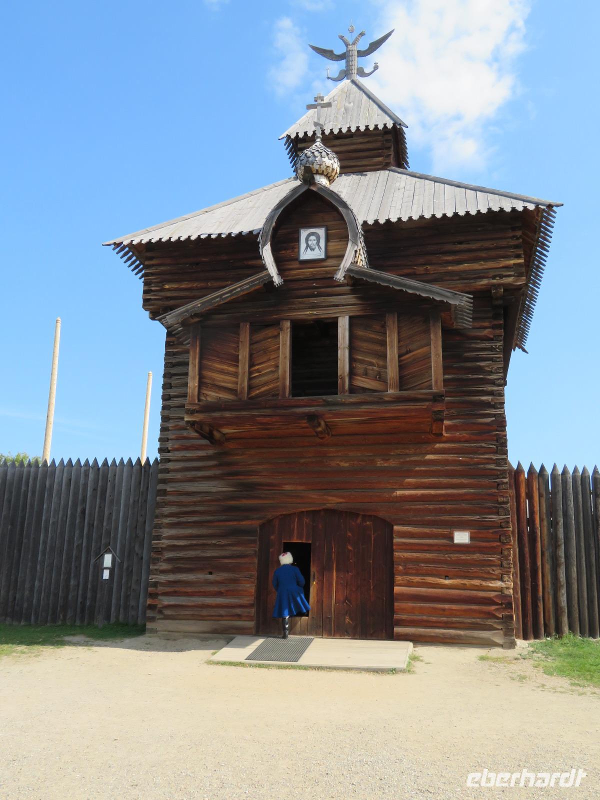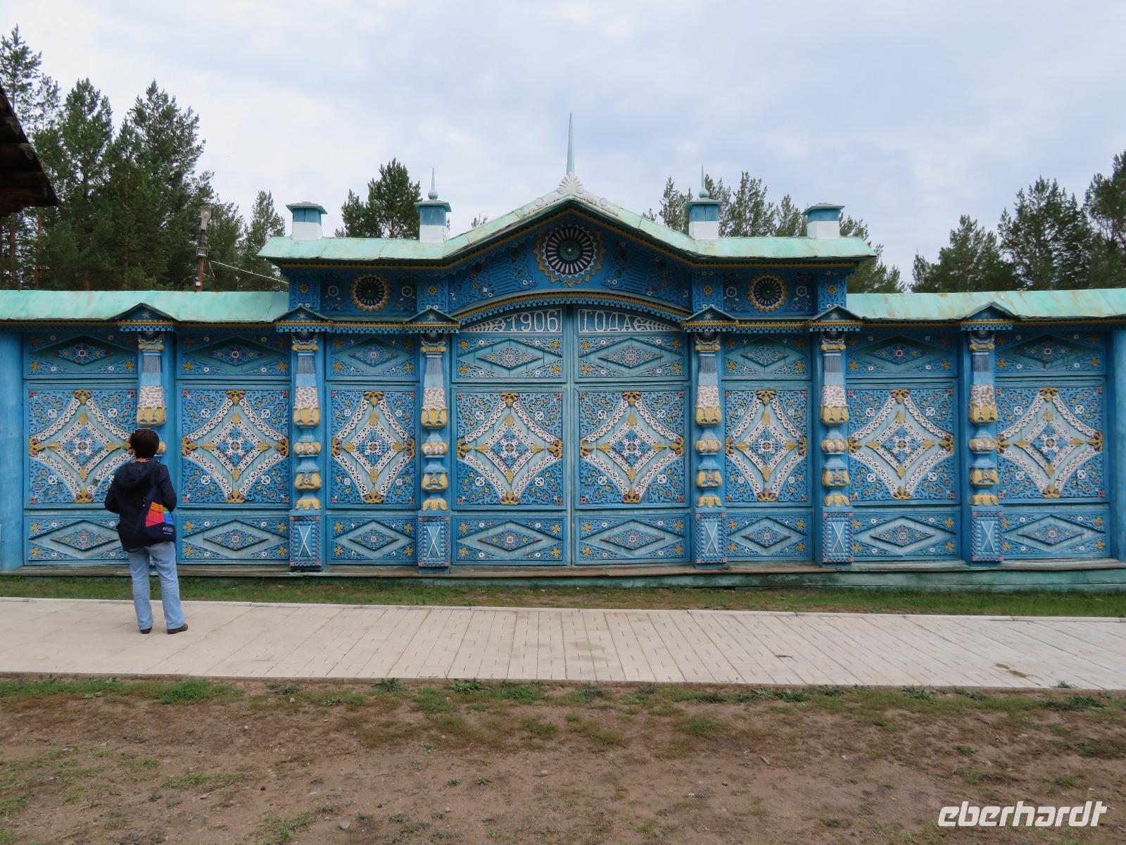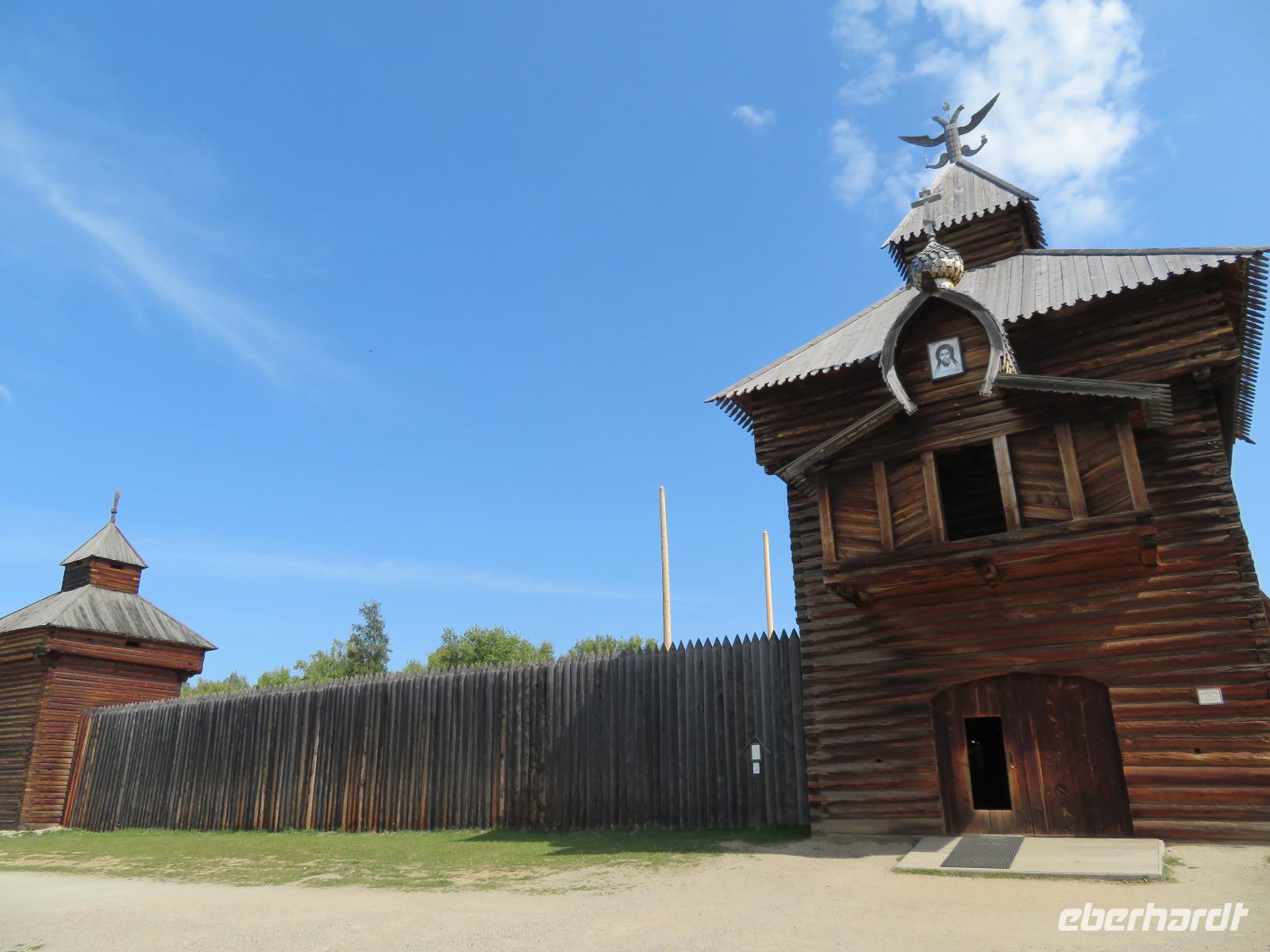 Die anderen Gäste starteten dann gegen Mittag. Auf der Straße, die heute hunderttausende Touristen von Irkutsk an den Baikal bringt und streckenweise eher einer asphaltierten Wellenschaukel gleicht, fuhren wir Richtung Irkutsk durch den Pribaltijski Nationalpark. In Talcy, nach einem Drittel des Weges, wurde ein Freilichtmuseum aus andernorts abgebauten Bauernhäusern, burjatischen Holzjurten und einem Fort, wie es im 18. Jahrhundert mannigfaltig durch Kosaken an Angara und Lena entstand, errichtet. Wir nahmen uns ausreichend Zeit für die Besichtigung und den Abschied von der Angara. Am Nachmittag bummelten wir individuell durch Irkutsk. Ein Tipp für historisch Interessierte ist der Besuch in den museal genutzten Häusern der Dekabristen Trubezkoi und Wolkonskij.