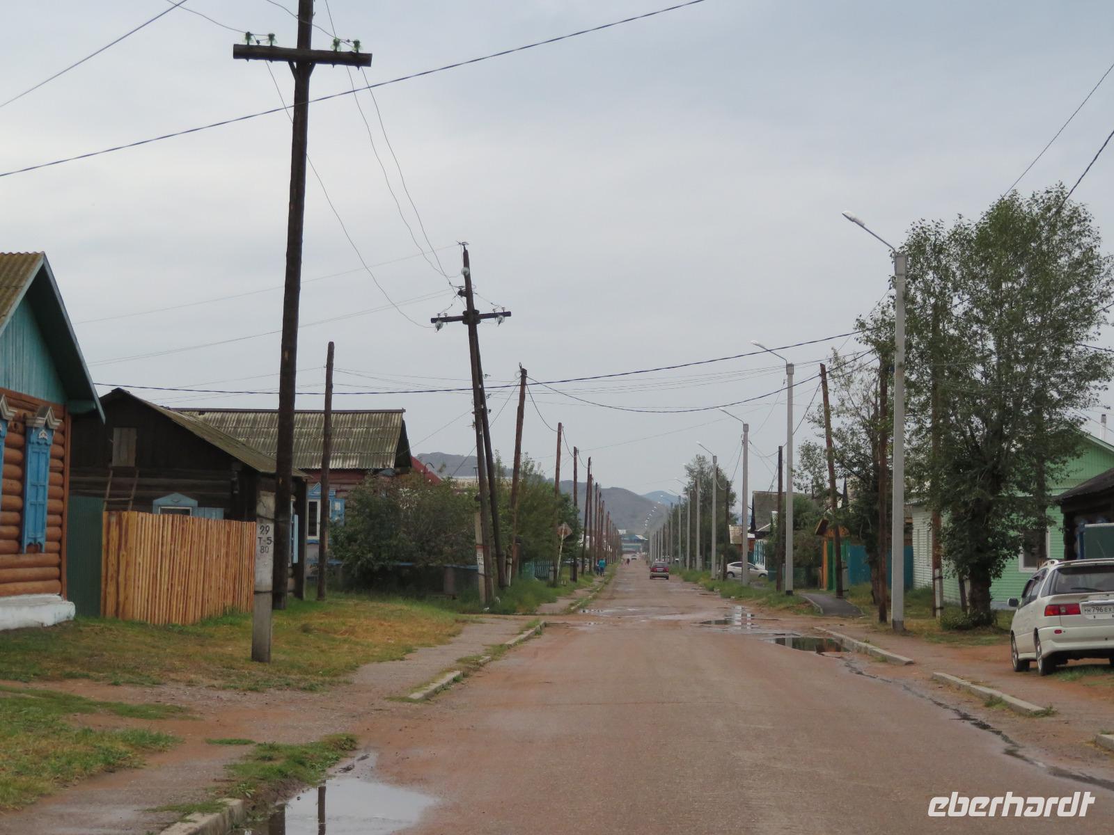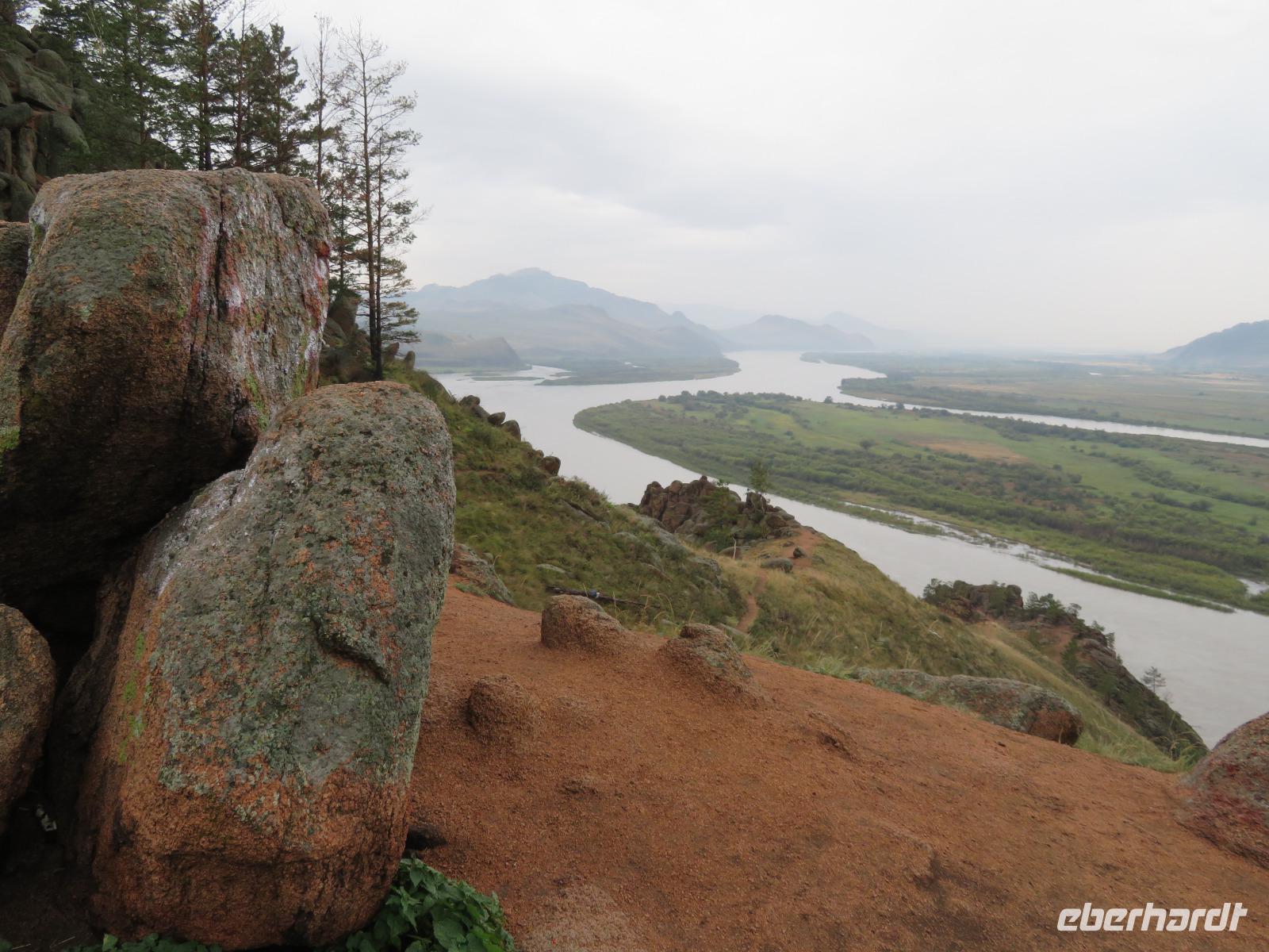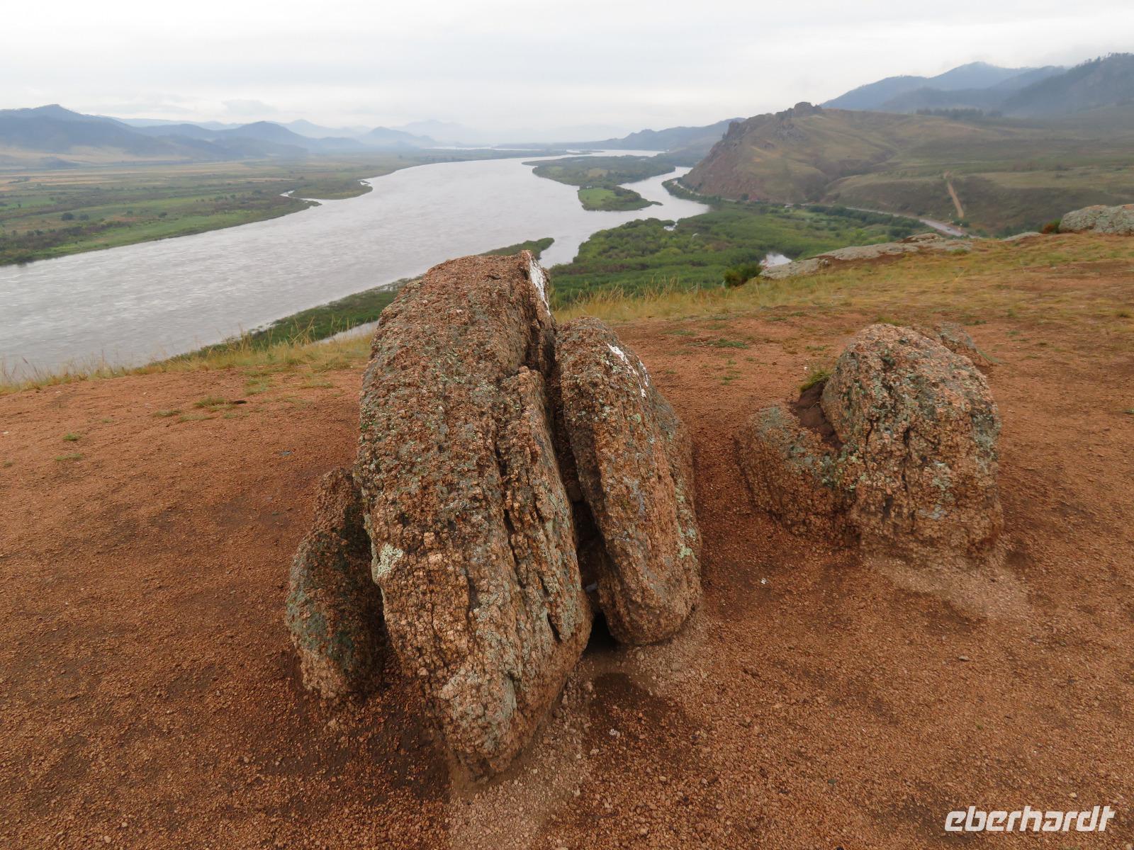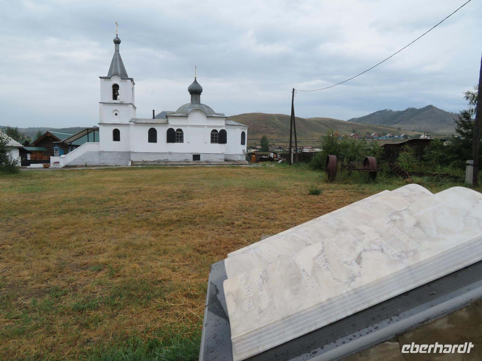 Wir vereinbarten uns für 12 Uhr, so dass jeder am Vormittag Zeit hatte, für das Schreiben der letzten Ansichtskarten und vielleicht doch noch für den Kauf eines Souvenirs. Unsere Tour im Minibus führte uns nach Ivolginsk, wo sich seit 1947 wieder ein burjatisches, buddhistisches Kloster befindet, nachdem in den 30er Jahren die Lama in der damaligen Sowjetunion vernichtet wurden. Das Kloster (Dazan) Ivolginsk ist heute Zentrum der Buddhisten Russlands. Mittlerweile bestehen sieben Tempel in der Klosteranlage, die auch Sitz des Oberhauptes der Buddhisten in Russland ist und eine Ausbildungsfunktion als Hochschule ausübt. Anschließend ging die Fahrt im Tal der Selenga nach dem Dorf Tarbagatai, einem Ort, in dem seit ungefähr 1765 die Altgläubigen wohnen, die aus dem russisch besetzten Polen hier angesiedelt wurden und ehedem Landwirtschaft betrieben. Fünf Kilometer vor dem Dorf bestiegen wir den Hang des Omuljowka, einen Felsen mit schamaistischer Tradition. Bei leichtem Nieselregen und Dunst war leider der Blick auf die Selenga und die langgezogenen Hügelketten Burjatiens nicht so eindrucksvoll wie bei bisherigen Reisen. Im Dorf dann herzliche Begrüßung durch Alexej, den Sohn des Popen, der uns zunächst die Sammlung alter Landwirtschafts- und Haushaltsgeräte im Museum zeigte. Die wieder errichtete Kirche birgt einige jahrhundertealte Ikonen, die Gläubige über die Jahrzehnte der Sowjetzeit retteten. Folklore und Abendessen dann in einem Gehöft der Altgläubigen im Dorf Dezjatka mit verschiedenen Sakuski, Krautsuppe, Schweinefleisch mit Kartoffelpüree, mit Traubenkirschen gefüllten Piroggen, Mors und Zirbelkieferwodka. Durch die hügelige Landsschaft mit einigen Nebelschwaden und tiefhängenden Wolken fahrend, erreichten wir am Abend unser Hotel in Ulan Ude.