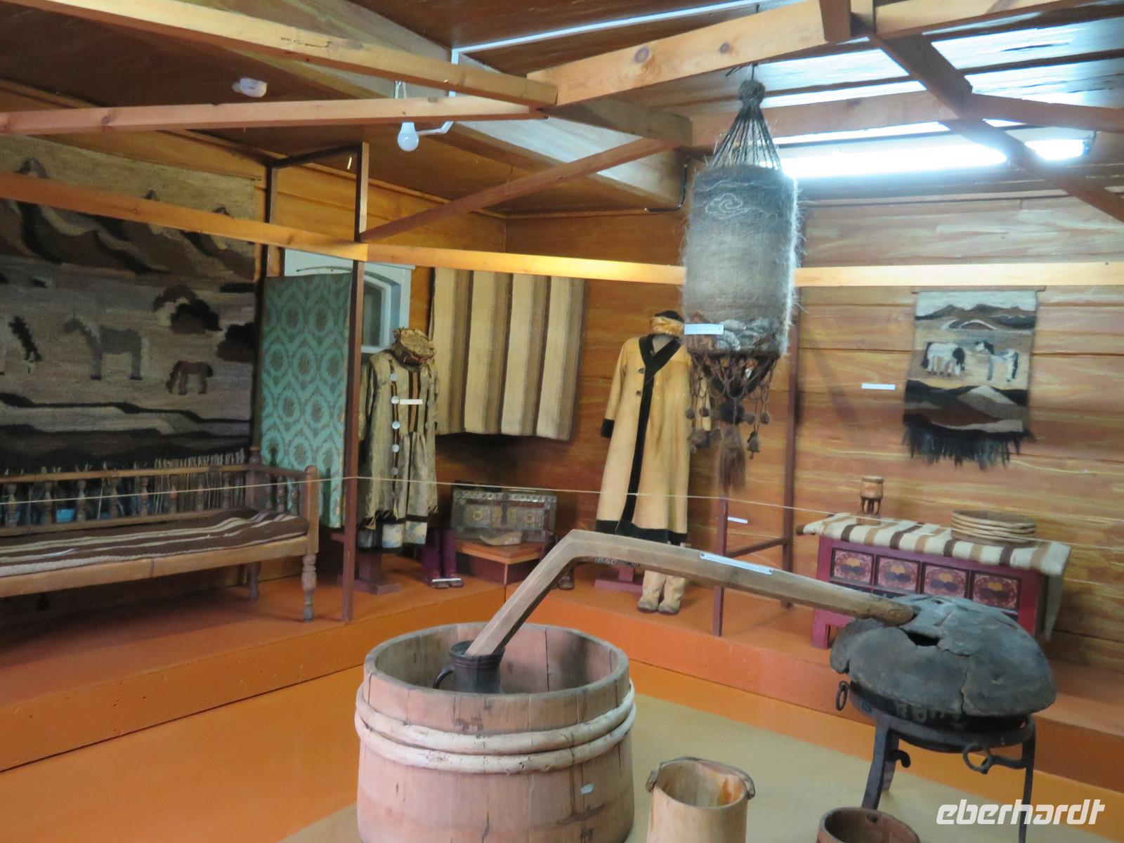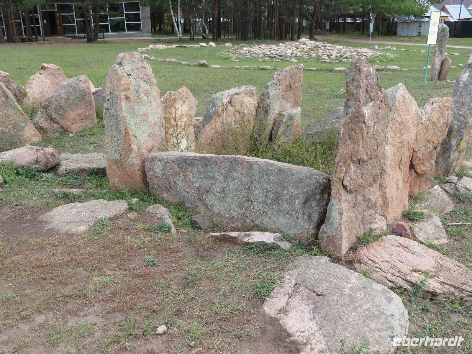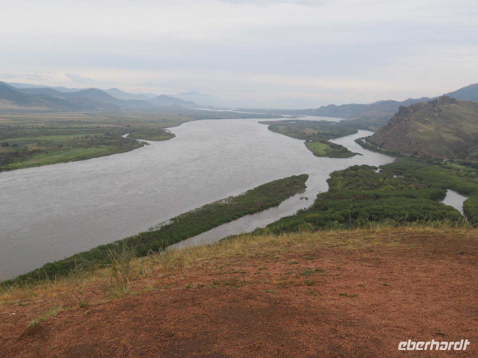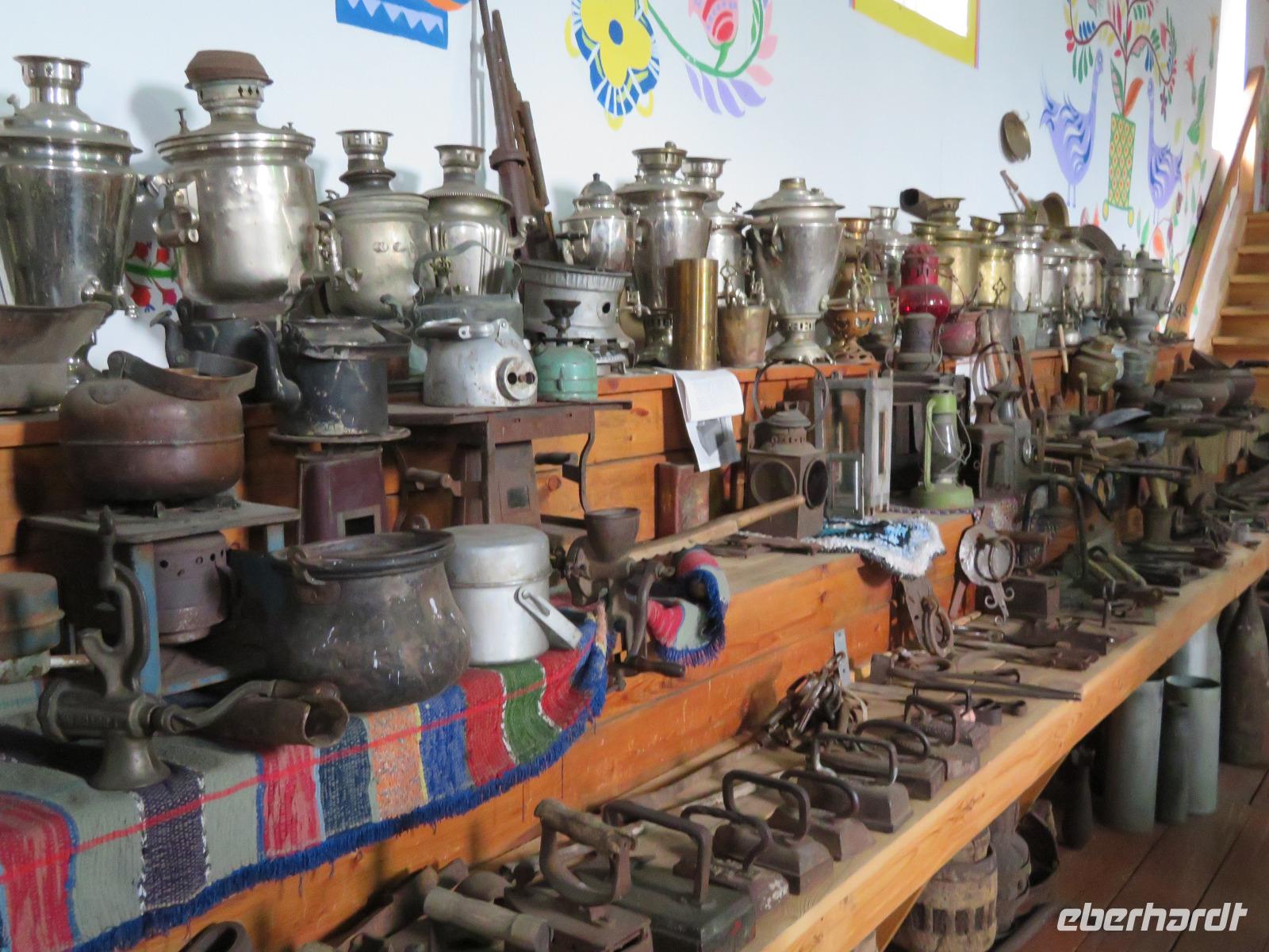 Wir vereinbarten uns für 12 Uhr, so dass jeder am Vormittag Zeit hatte, für das Schreiben der letzten Ansichtskarten und vielleicht doch noch für den Kauf eines Souvenirs. Unsere Tour im Minibus führte uns nach Ivolginsk, wo sich seit 1947 wieder ein burjatisches, buddhistisches Kloster befindet, nachdem in den 30er Jahren die Lama in der damaligen Sowjetunion vernichtet wurden. Das Kloster (Dazan) Ivolginsk ist heute Zentrum der Buddhisten Russlands. Mittlerweile bestehen sieben Tempel in der Klosteranlage, die auch Sitz des Oberhauptes der Buddhisten in Russland ist und eine Ausbildungsfunktion als Hochschule ausübt. Anschließend ging die Fahrt im Tal der Selenga nach dem Dorf Tarbagatai, einem Ort, in dem seit ungefähr 1765 die Altgläubigen wohnen, die aus dem russisch besetzten Polen hier angesiedelt wurden und ehedem Landwirtschaft betrieben. Fünf Kilometer vor dem Dorf bestiegen wir den Hang des Omuljowka, einen Felsen mit schamaistischer Tradition. Bei leichtem Nieselregen und Dunst war leider der Blick auf die Selenga und die langgezogenen Hügelketten Burjatiens nicht so eindrucksvoll wie bei bisherigen Reisen. Im Dorf dann herzliche Begrüßung durch Alexej, den Sohn des Popen, der uns zunächst die Sammlung alter Landwirtschafts- und Haushaltsgeräte im Museum zeigte. Die wieder errichtete Kirche birgt einige jahrhundertealte Ikonen, die Gläubige über die Jahrzehnte der Sowjetzeit retteten. Folklore und Abendessen dann in einem Gehöft der Altgläubigen im Dorf Dezjatka mit verschiedenen Sakuski, Krautsuppe, Schweinefleisch mit Kartoffelpüree, mit Traubenkirschen gefüllten Piroggen, Mors und Zirbelkieferwodka. Durch die hügelige Landsschaft mit einigen Nebelschwaden und tiefhängenden Wolken fahrend, erreichten wir am Abend unser Hotel in Ulan Ude.