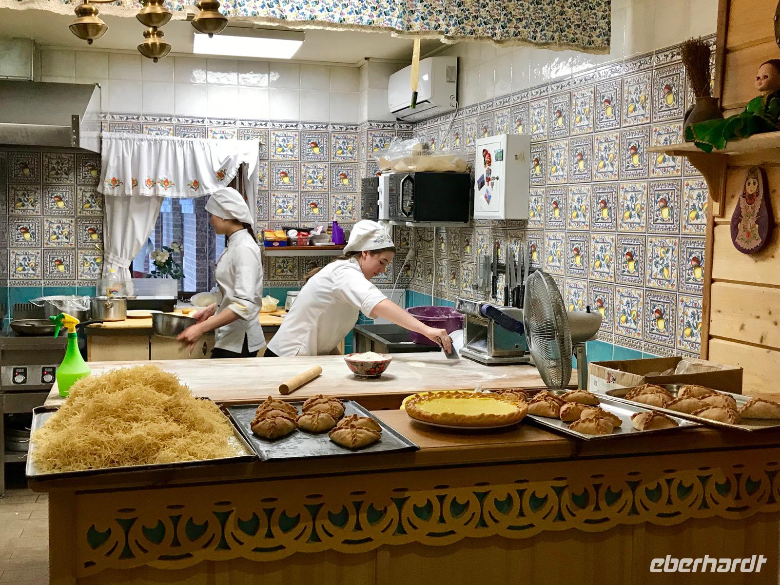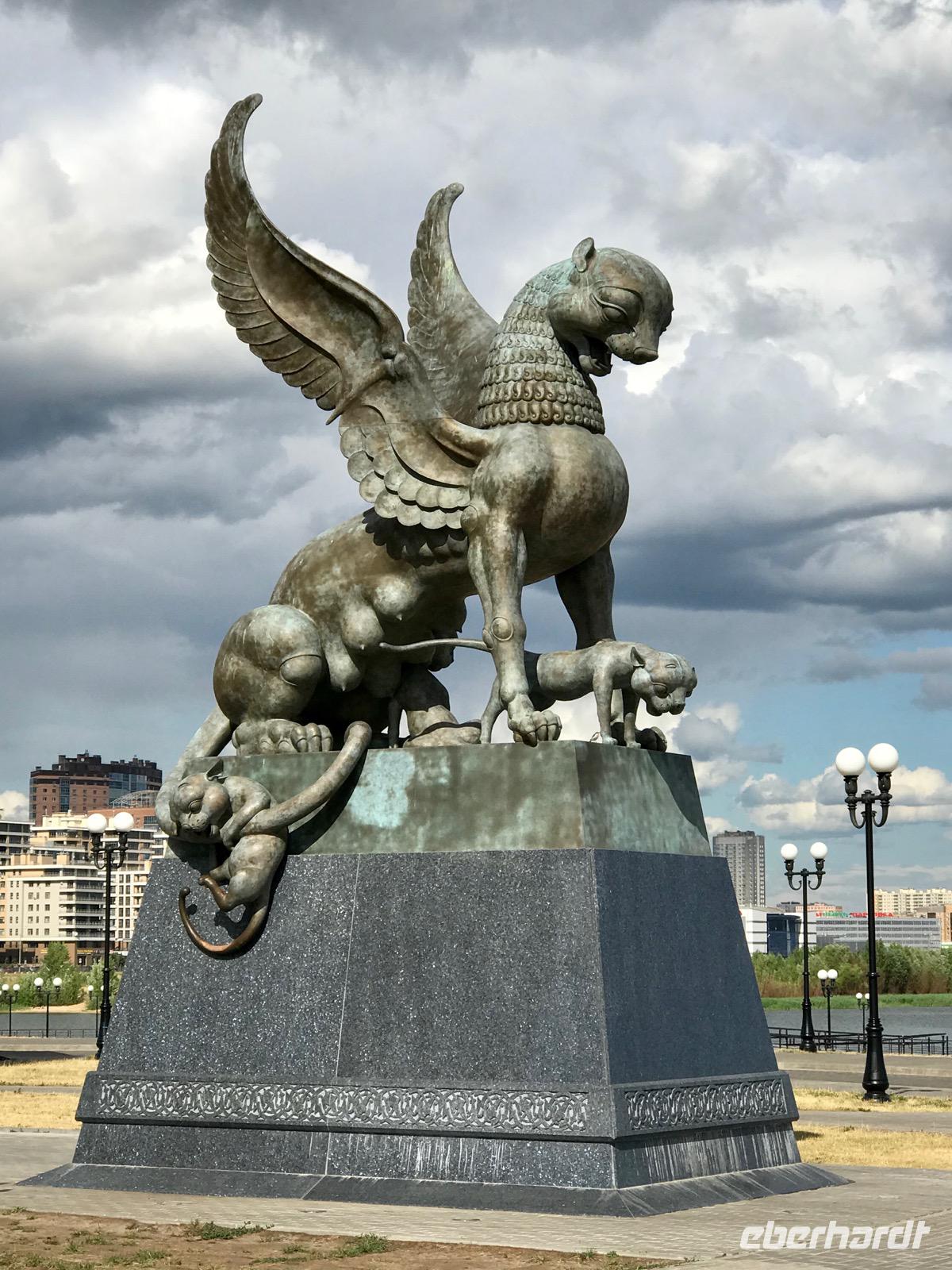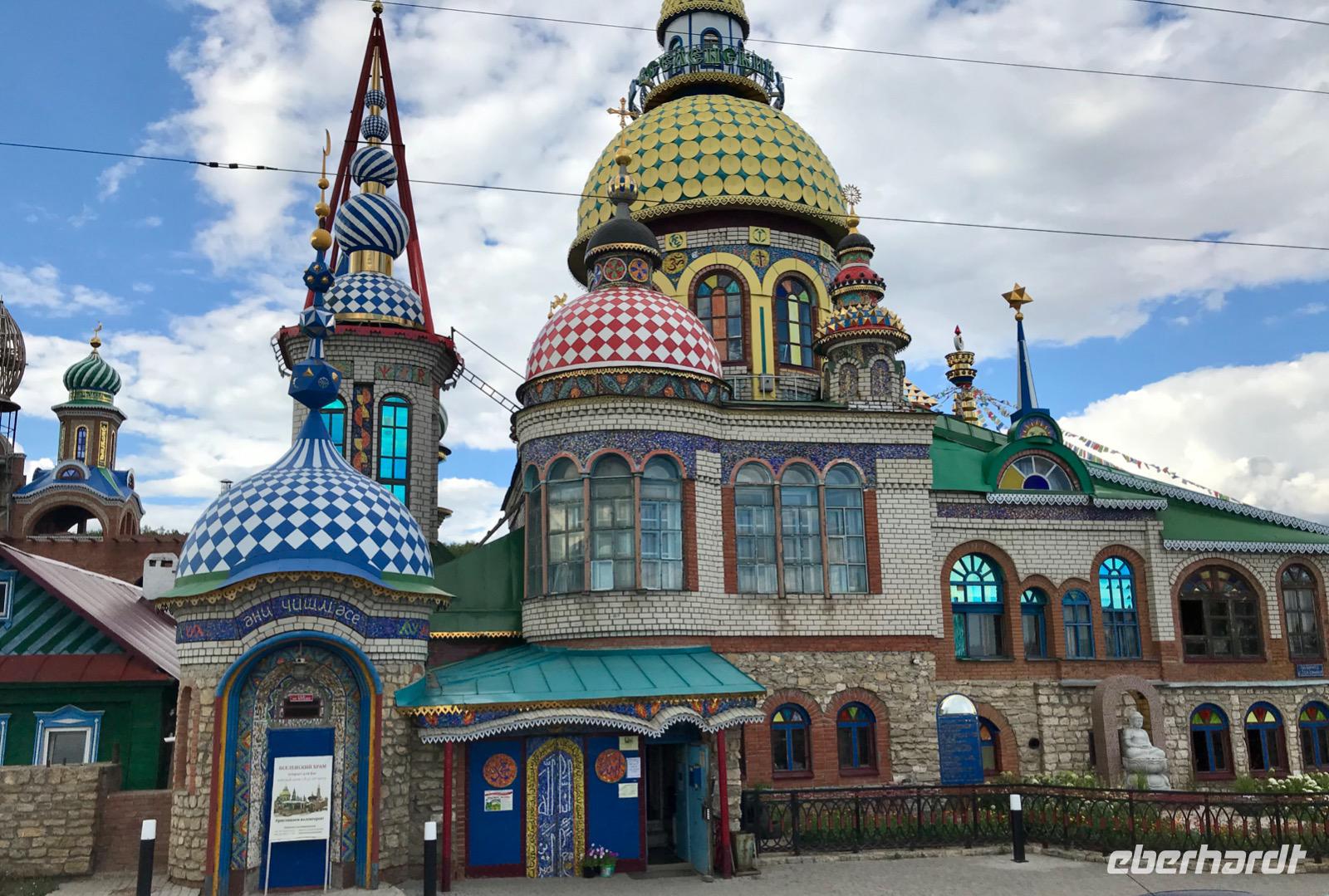 Noch am Vormittag beginnt unsere Stadtbesichtigung zu Fuß zum Kazaner Kreml. Von Weitem sieht man den weißen Kreml mit der langen Mauer und den orthodoxen Kirchen. Aber da sind auch die vier Minarette der 2005 zum 1000. Jahrestag der Stadtgründung geweihten Kul-Scharif-Moschee. Kazan' ist auch das Zentrum des Islams in Russland. Die Moschee soll die größte sein außerhalb des unmittelbaren islamischen Einzugsgebietes. Und sie ist für unser Auge gewöhnungsbedürftig mit ihren türkisblauen Dächern. Wir betreten den Kreml durch den Erlöser-Turm, besuchen die Maria-Verkündigungs-Kathedrale aus dem 16. Jahrhundert, wo wir eine Replik der Ikone Gottesmutter von Kazan' sehen. Sie zählt in der russisch-orthodoxen Kirche zu den meistverehrten Ikonen. Die Silhouette des Kremls wird auch durch den 57 Meter hohen und sich neigenden Sjüjümbike-Turm bestimmt. Hier hören wir die traurige Geschichte der Tatarenfürstin, die sich nicht in die Hand des Zaren Ivan des Schrecklichen begeben wollte, obwohl er sie anbetete. Nach unserer sehr entspannten Vormittagstour und den wunderbaren Ausblicken vom Kreml auf die Stadt und auf den Fluss Kazanka, der hier in die Wolga mündet, fahren wir mit dem Bus in das Zentrum der Stadt. Unmittelbar an der zentralen Straße der Stadt, der Bauman-Straße, die heute Fußgängerzone ist, haben wir unser Mittagessen im Restaurant „Sterljadka". Nach einem kurzen Bummel in der Fußgängerzone setzt sich unsere Tour fort. Wir fahren zunächst an das Ufer der Wolga und betrachten die außergewöhnliche Architektur des Hochzeitspalastes in Form eines gigantischen Kessels, der von geflügelten Drachenschlangen bewacht wird. Er soll an die Gründungslegende der Stadt erinnern. Ein in die Erde vergrabener Topf, ein Kazan' (asiatischer Kochtopf), soll hier angefangen haben zu kochen und man gründete an dieser Stelle die Stadt. Dass es in dem Topf anfing zu kochen, ist sicher darauf zurück zu führen, dass es hier heiße Quellen gibt. Wir fahren weiter in die neu gebauten Stadtviertel, die Schlafstadt wie Alina sie nennt, betrachten die ungewöhnliche Architektur mit asiatischem Flair, sehen das Fußballstadion, das Kindertheater und den Tempel aller Religionen, der christliche Kreuze, muslimische Halbmonde, Davidsterne und chinesische Kuppeln in einem Gebäude vereint. Eine erlebnisreiche Stadtrundfahrt nähert sich dem Ende. Das Abendessen haben wir in der tatarischen Vorstadt. Bevor wir jedoch in einem alten Gutshof eines reichen tatarischen Kaufmanns das leckere Essen genießen, sehen wir uns hier noch etwas um. Vom Stadtsee, dem Wildschweinsee, mit den Wasserspielen sieht man schon die Silhouette der tatarischen Vorstadt. Die Häuser der Tataren sind immer bunt, sagt Alina, und wir können uns davon überzeugen. Bunte Häuser mit kunstvollen Holzschnitzereien. Auf dem Boden des Sees sollen übrigens noch die Schätze der Goldenen Horde liegen. Unser Tag geht zu Ende und die Reise setzt sich am nächsten Tag fort.