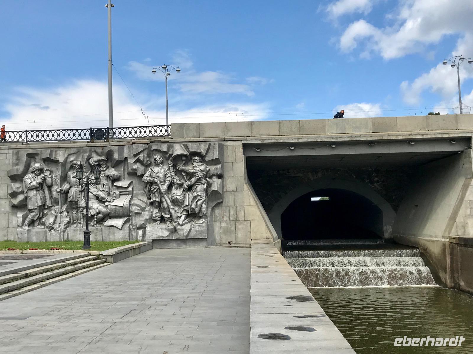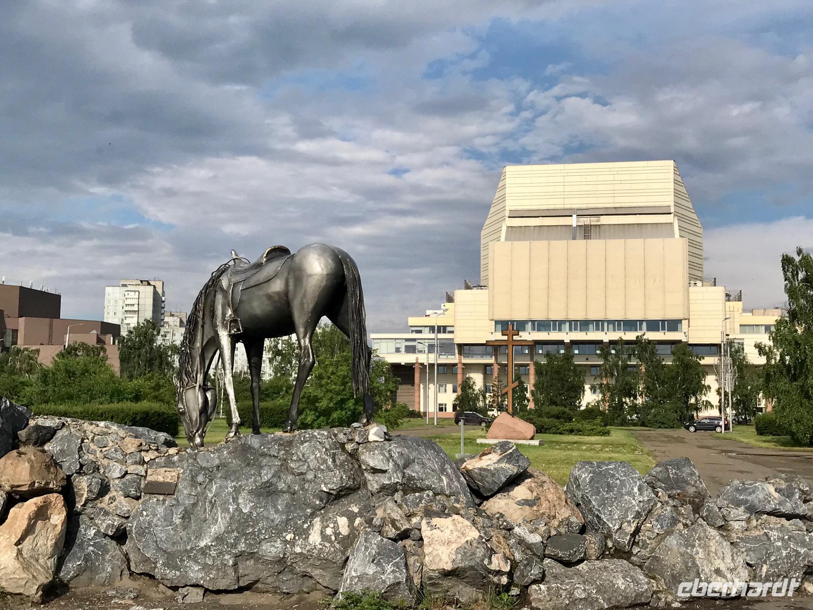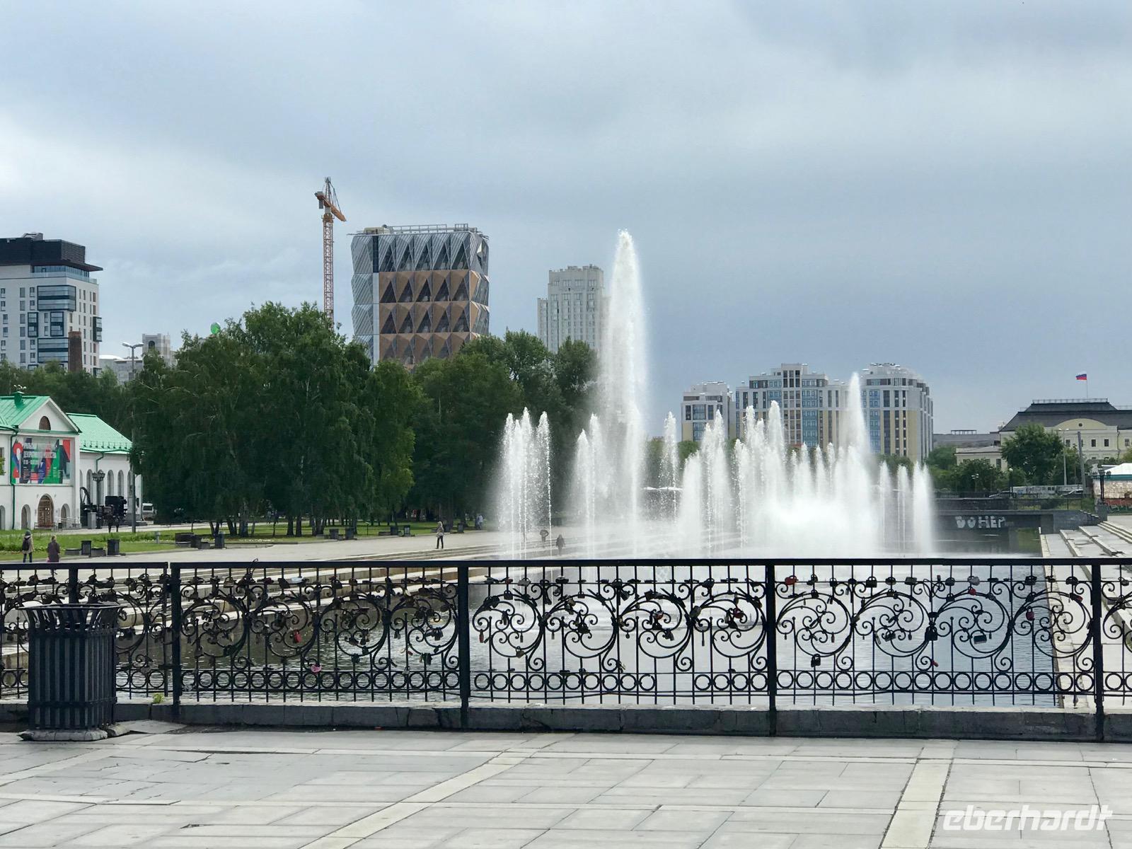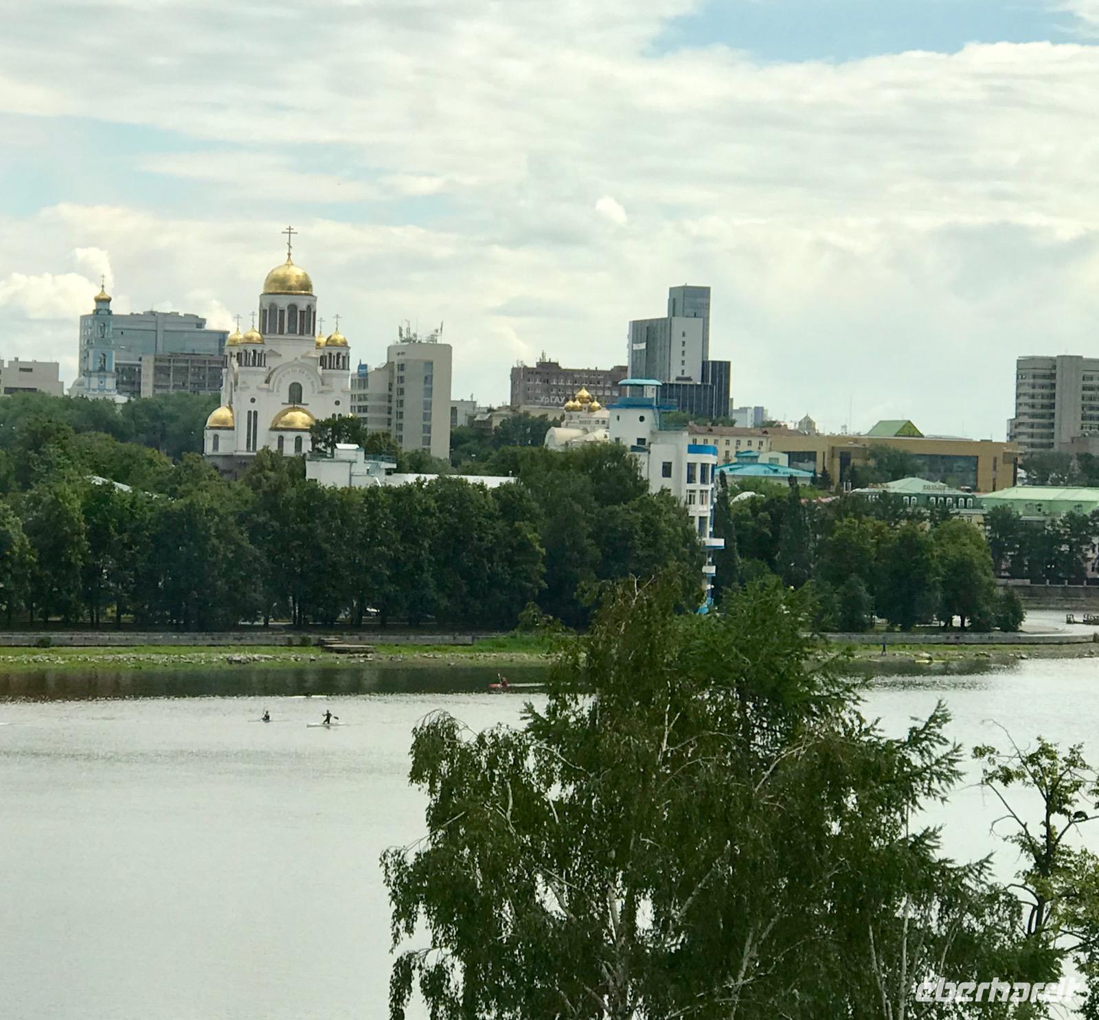 Wir sind an der Schnittstelle zwischen Europa und Asien, im Uralgebirge. Ekaterinburg entstand 1721 im Rahmen der Erschließung der Naturreichtümer des Urals und wurde von Zar Peter I. gefördert. Es war Vasilij Tatišcev, der an diesem Ort die erste Eisenfabrik gründete und mit dem Bau der Siedlung begann. Wir beginnen unseren Stadtrundgang am architektonisch bemerkenswerten, 2015 eröffneten Jelzin-Zentrum, das sich direkt am Ufer des Flusses Isset im Stadtzentrum befindet. Hauptteil des Zentrums ist das Jelzin-Museum, das dem ersten russischen Präsidenten gewidmet ist, der aus dem Ural stammt und der von 1976 bis 1985 Parteichef in dieser Stadt war. Unsere Reiseleiterin erzählt uns im Museum detailliert über die sieben historischen Tage, die die Sowjetunion und Russland grundlegend veränderten. Es ist ein außerordentlich gut gestaltetes Museum, dass dem Besucher in eindrucksvoller Weise die Zeit der Wende nahebringt. Auch wir haben Russlands Historie besser verstehen gelernt.