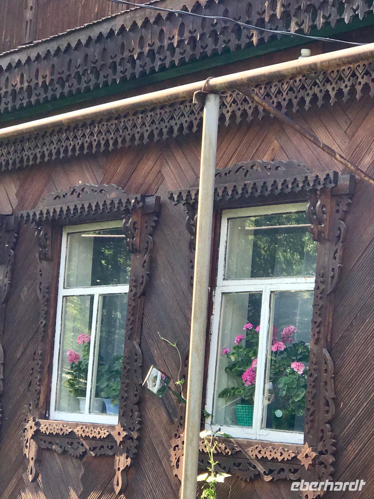 Sehr früh am Morgen hält unser Zug in Irkutsk. Wir werden von unserer örtlichen Reiseleiterin Vera herzlich empfangen. Die Koffer werden in einem Kleinbus verstaut und wir gehen zunächst in ein IBIS-Hotel zum Frühstück, bevor unsere Stadtrundfahrt beginnt. Es ist, als ob die Stadt noch schläft. Irkutsk gehört zweifellos zu den schönsten Städten Sibiriens, liegt an einem wunderschönen Fluss, der Angara, und stellt das Fenster nach Sibiriens Osten dar. Unser Weg beginnt an der Erlöserkirche, des ersten steinernen Gebäudes in Irkutsk mit den einzigartigen Außenfresken. Wir besuchen das Ewige Feuer für die gefallenen Soldaten und sehen die Gotterscheinungskathedrale im sibirischen Barock, gehen zur Karl-Marx-Straße, vorbei am Heimatkundemuseum, am geschichtsträchtigen Weißen Haus an der Uferpromenade und dem Denkmal der Kosaken, die diese Stadt gründeten. Sehenswert sind vor allem die Holzhäuser, reich verziert und oftmals gut restauriert, wie z.B. das Heimatmuseum für Stadtgeschichte. Ein Höhepunkt unserer Stadtbesichtigung ist sicherlich das Museum für die Dekabristen. Wir besuchen das ehemalige Wohnhaus des Grafen Volkonskij und freuen uns an der sehr umfangreichen Ausstellung von Kleidung, Haushaltsgegenständen und Möbeln aus dieser Zeit. Wir hören die Schicksale der adligen Familien, die den Ehemännern in die Verbannung folgten. Es fällt nicht schwer, das harte Leben in Zwangsarbeit und Verbannung nachzuvollziehen.