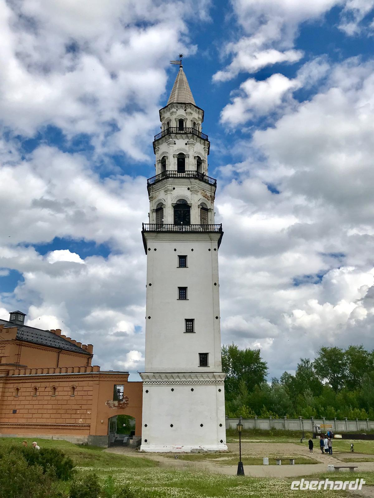 Heute fahren wir in das Uralgebirge. Auf dem Programm steht Nevjansk, eine kleine Stadt am Ostrand des Mittleren Urals am Fluss Neiva. Der Ort entstand 1701 im Zusammenhang mit der Errichtung eines Eisenwerkes, welches im Ural eine bedeutende Rolle spielen sollte. Hauptsehenswürdigkeit ist der Schiefe Turm von Nevjansk, der zum Eisenwerk gehörte und eigentlich ein Wachturm war. Hier steht eine Besichtigung an. In unmittelbarer Nähe ist auch das Denkmal für Zar Peter I., der die Erschließung der Erze im Ural anordnete, und für Akinfi Demidow, den ersten Unternehmer des Eisenwerkes und einen der reichsten russischen Industriellen des 18. Jahrhunderts.