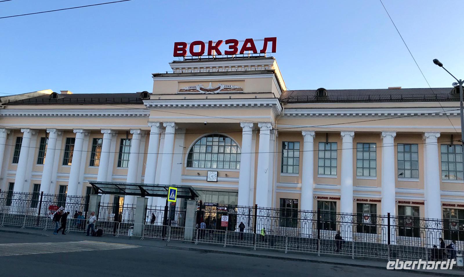 Um 6:45 Uhr fährt unser Zug Nr.060 von Kazan' nach Ekaterinburg. Wir werden den ganzen Tag im Zug verbringen, doch die Fahrt ist nie langweilig. An uns zieht die Landschaft vorbei, endlose Birkenwäldchen säumen den Weg, es ist ein erholsames Grün, eine sumpfige Gegend, das Wasser steht manchmal bis an die Gleise. Dann sehen wir kleine Dörfer entlang der Trasse, Holzhäuser, oftmals verlassen und windschief, aber auch größere Wohnhäuser, wahrscheinlich von den „neuen" Russen, alte Industrieanlagen, die die Sowjetzeit nicht überstanden haben und welche die Natur wieder zurückerobert. Wir wundern uns, dass wir keine Tiere sehen, kein Vogelgezwitscher hören und finden keine Antwort auf das Warum. Wir sehen kleine Gärten mit Gemüseanbau direkt an den Häusern, die Pflanzen stehen sehr gut, es muss ein nahrhafter Boden sein und alles ist perfekt gepflegt, Selbstversorger also, wozu dann die Sanktionen. Die Bahnhofsgebäude in Schuss, frisch getüncht, farbenfroh und sauber. Die Reisenden mit großen Taschen und Koffern, vielleicht waren sie in der Hauptstadt. Es ist ein Gewimmel auf dem Bahnsteig. Der Zug ist immer pünktlich, das verwundert uns positiv, denken wir doch an die Deutsche Bahn. Wir lesen den Fahrplan im Wagon und wissen dann genau, wie lange der Zug hält an den Haltestellen. Man kann den Zug verlassen, aber man wird nicht vergessen, denn die schmucken Zugbegleiter stehen an den Türen und begrüßen neue Gäste und sammeln die Reisenden ein, sobald es Zeit zur Abfahrt ist. Die Reise ist für uns erholsam, man schläft ein bisschen, liest ein paar Seiten im Lieblingsbuch, unterhält sich mit den Mitreisenden und trinkt Tee und isst und trinkt Tee..... Wir bekommen das Essen im Speisewagen und dann gibt es noch Essen in das Abteil geliefert, das man mit der Fahrkarte gekauft hat. Im Überfluss...Am Schluss fragt man sich, wo die Zeit geblieben ist. Wir kommen am späten Abend in Ekaterinburg an und werden freundlich von unserer örtlichen Reiseleiterin Irina begrüßt. Wir übernachten im „Park Inn Radisson".