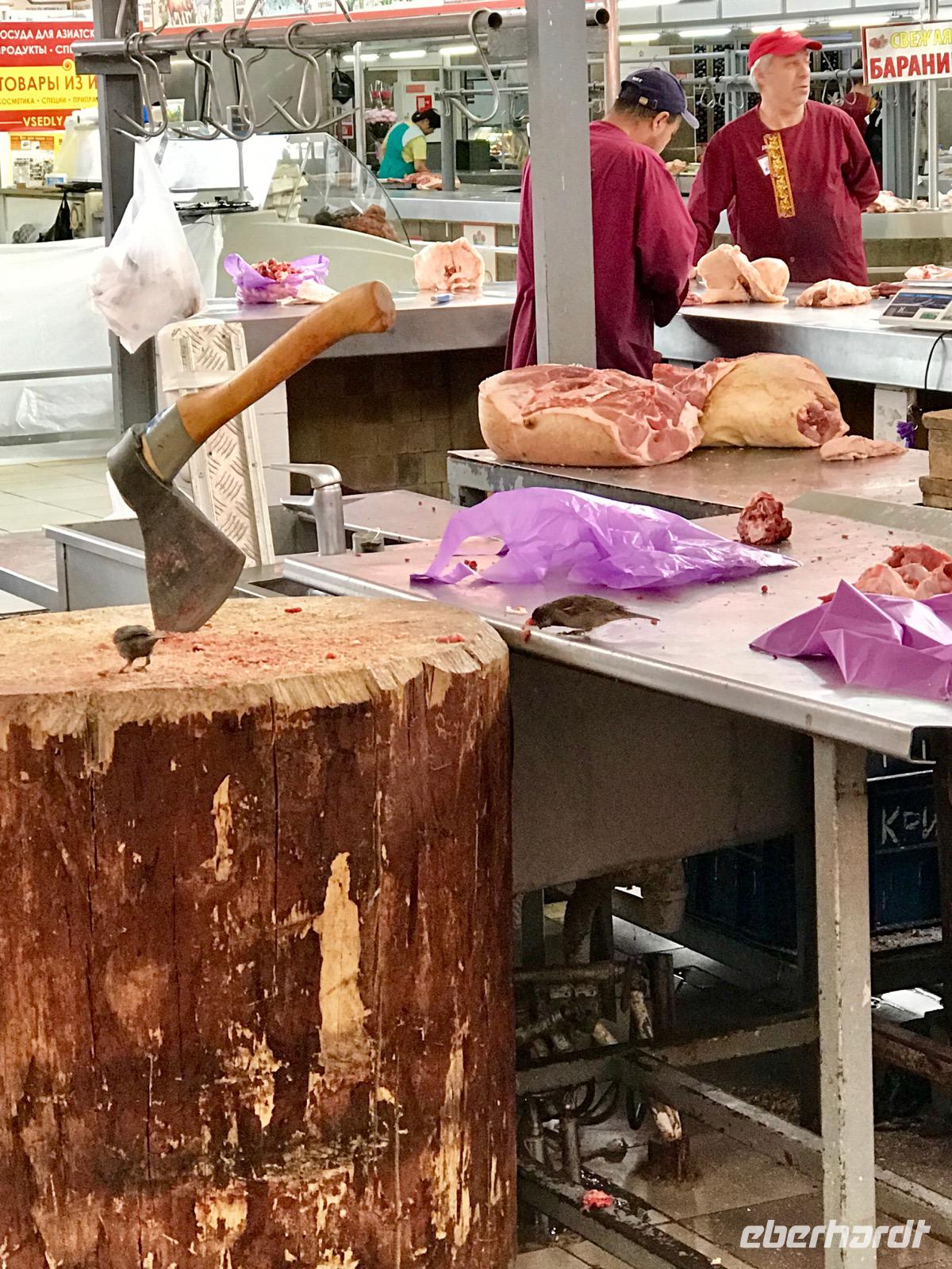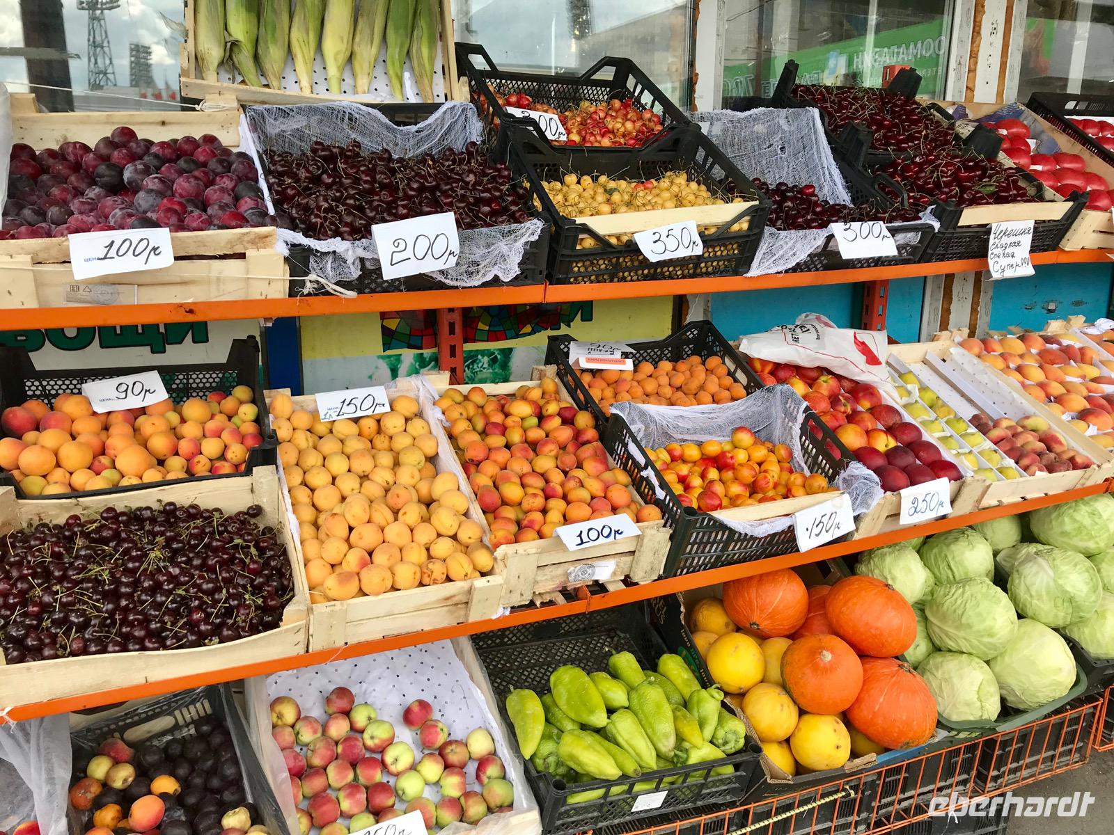 Heute ist Michail unser Begleiter und wir beginnen den Rundgang an der Aleksandr-Nevskij-Kathedrale aus rotem Backstein. Dann fahren wir hinab zum Fluss, wo es einladende Promenaden gibt, und bestaunen die gewaltige Eisenbahnbrücke über den Ob' und das Stück der alten Brücke, das als Denkmal hier steht. Die Brückenpfeiler sind mächtig, müssen sie doch den Eisschollen im Winter widerstehen. Anschließend fahren wir in das Akademikerstädtchen Akademgorodok, ein Zentrum der Wissenschaft seit Jahrzehnten und nunmehr soll es sich zum Silicon Valley in der Taiga entwickeln. Hier gibt es Forschungsinstitute aller Fachrichtungen und die Mitarbeiter(innen) können auch in unmittelbarer Nähe wohnen. Wir nutzen den Abstecher, um ein einladendes Kaffeehaus nach westlichem Vorbild zu besuchen. Russlands Jugend kommt hier gern her. Das Eisenbahnmuseum, das eigentlich heute auf dem Plan stand, hat montags geschlossen. Wir fahren trotzdem hin. Denn einen Blick durch den Metallzaun kann man schon werfen. Die Sammlung ist schließlich unter freiem Himmel. Zurück nach Novosibirsk besuchen wir zunächst den Zentralmarkt und bestaunen all die Köstlichkeiten, frisches Obst und Gemüse, Fische, die wir gern mitnehmen würden, und vieles mehr. Danach steht das Birkenrindenmuseum auf dem Plan. Sicher eine große Besonderheit im ganzen Land. Wir erhalten eine Führung und erfahren viel Interessantes über die Verarbeitung der Birkenrinde. Im Museum selbst sind von vielen Volkskünstlern Haushaltsgegenstände und auch Kunstwerke ausgestellt. Unser Ausflug wird am Leninplatz beendet. Ein gewaltiges, mächtiges, kraftstrotzendes Denkmal für Lenin, das die Wendezeit überstanden hat, daneben Figuren des Volkes. Welch eine Macht auf uns kleine Menschen, die wir davorstehen, herabfließt. Aber der Leninplatz ist auch bekannt für das größte Opernhaus in Russland. Es ist größer als das Bolschoj-Theater in Moskau. Zum Schluss, quasi als Ersatz für die „Nichtbesichtigung" des Eisenbahnmuseums, fahren wir am Abend noch ein Stück den Ob' hinauf mit dem Ausflugsdampfer. Ein recht schönes Erlebnis auf diesem breiten Fluss und Kontakte mit der einheimischen Bevölkerung bekommt man auch ganz schnell. Heute gestaltet sich unser Abend etwas anders. Wir können unser Hotelzimmer noch bis kurz vor Mitternacht nutzen. Aber bald schon werden wir abgeholt, der Zug Nr. 008 fährt 23:54 Uhr ab und mittags am Folgetag sind wir in Krasnojarsk.