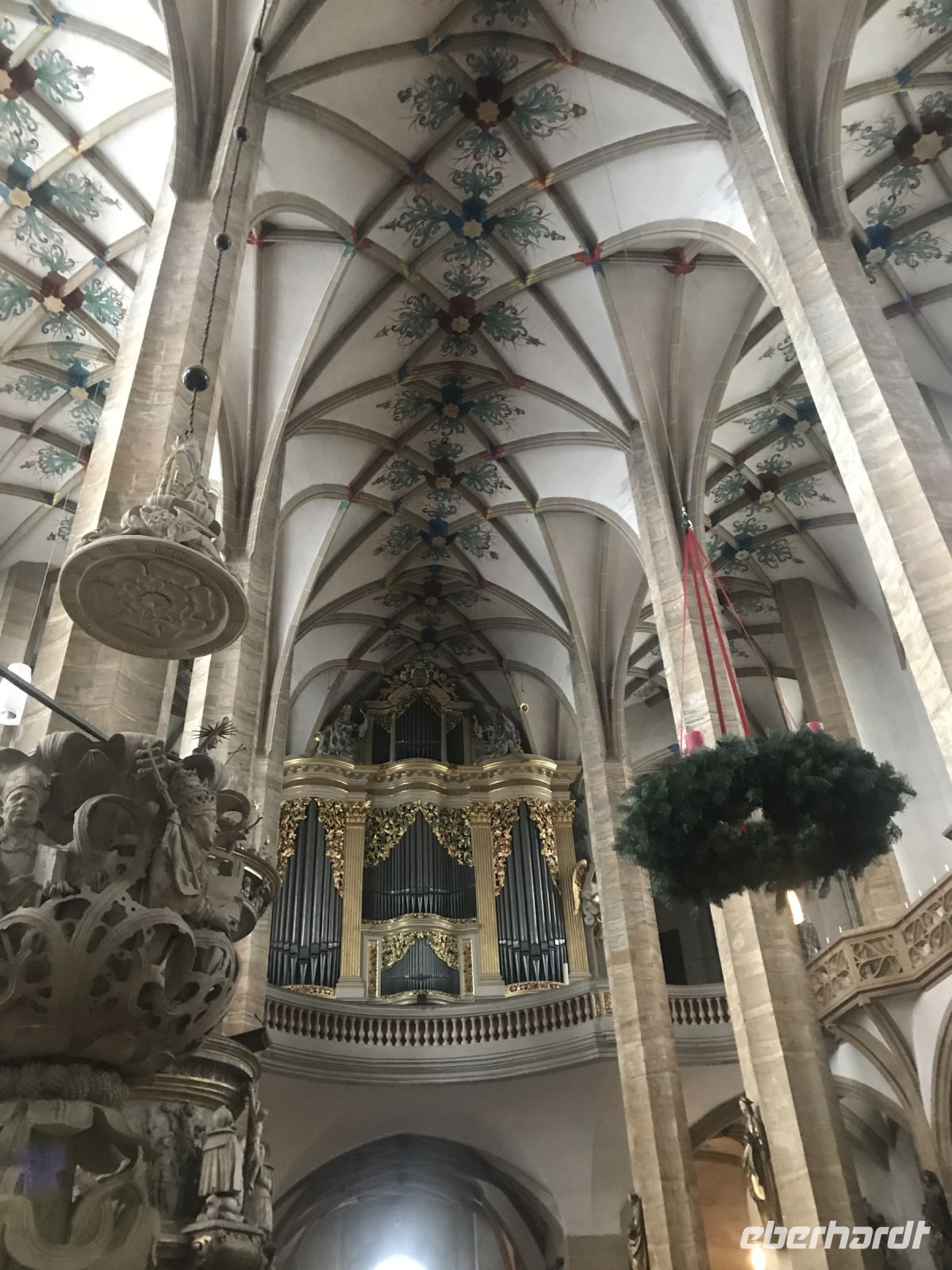 Am 2. Dezember 2023 gegen 9:00 Uhr waren alle Gäste an Bord und wir starteten in einen herrlich weißen Dezembertag. Vorbei am Strietzelmarkt, wo noch die leuchtenden Lichterketten in Gold und Silber für die Reisenden gut sichtbar waren. Von Dresden aus fuhren wir durch die verschneite Landschaft gemütlich auf der B173 in Richtung Freiberg. Unser Busfahrer Jens, durch dessen Heimat wir fuhren, verwies auf kleine Besonderheiten, welche es in diesen Ortschaften in der Weihnachtszeit gibt. Z.B. die kleinen Dorfpyramiden, herrlich geschmückte Weihnachtsbäume oder ein riesiger Adventskalender In Freiberg - Silberstadt, Universitätsstadt, Große Kreisstadt und Bergstadt - angekommen, konnten wir die Kursächsische Postmeilensäule, Bürgerhäuser der Renaissance aus dem 16Jh. sowie einen Abschnitt der noch stehenden Stadtmauer sehen. Zur linken, am Albertpark, der im weißen Gewand mit seinen 3 Teichen einen Eindruck der Stille, Erholung und Zufriedenheit ausstrahlte. Vom Schloss Freudenstein - in welchem die Mineralausstellung ist - ging es die paar Meter zu Fuß zum St. Marien Dom. Bis zur Führung war noch etwas Zeit und so schauten wir uns im Domladen um. Gegen 11:00 Uhr begann unsere Führung, beeindruckend der Blick an die Decke - das netzartige Gewölbe, die Deckenmalerei, die Tiefe und die Pfeiler. Eine kurze Begrüßung durch den Domführer, dann erklang die Orgel. Ein wahnsinniges Gefühl der Stärke dieser Klänge erreichte uns, wir lauschten. Im Anschluss wurde uns die geschichtliche Entwicklung und Bedeutung einzelner Figuren und der Orgel nahe gebracht. Der Domführer war eine Perle, man merkte, er macht es mit Leidenschaft. Diese Führung ist ein unbedingtes "MUSS", wenn Freiberg besucht wird. Anschließend gab es im Restaurant „Pfeffersack“ in gemütlicher Atmosphäre Gaumenfreuden. Nach ca. eineinhalb Stunden Mittagspause konnte jeder für sich den traditionellen Weihnachtsmarkt auf dem Obermarkt, der vom historischen Ambiente der Stadt umgeben ist, besuchen. Es erwartete uns eine Pyramide, der Stollenanschnitt, das Bergorchester, der Duft von Gebrutzelten und Süßen, sowie schön geschmückte Hütten, welche Kunsthandwerk und regionale Spezialitäten zum Probieren anboten. 17:30 Uhr ging es, nun schon im Lichterschein, zurück Richtung Dresden. Wir fuhren über Tharand zurück, konnten die vielen beleuchteten Häuser bewundern. Jens hatte einen kleinen Herrnhuter Stern auf gehangen und Weihnachtsmusik eingelegt. Ein schöner Tag ging zu Ende. Allen eine besinnliche Weihnachtszeit Ihre Reisebegleiterin Renate Schuster