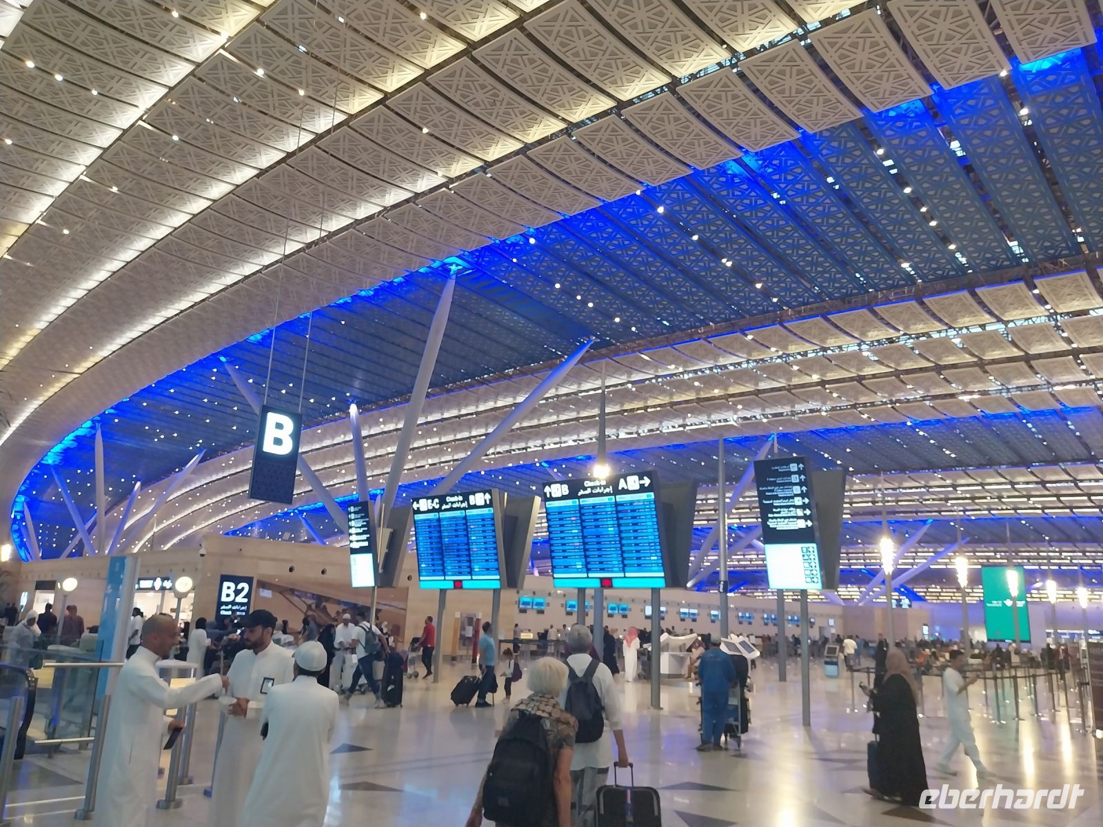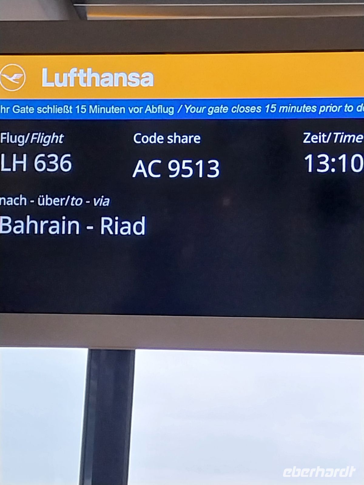 Am internationalen Flughafen von Riad brauchen wir noch etwas Geduld, der Flieger von Bahrain kommend verspätet sich. Die Lufthansabesatzung und das Bodenpersonal sind aber flink und können Zeit gewinnen, so dass wir letztendlich am frühen Morgen pünktlich im verregneten Frankfurt landen.