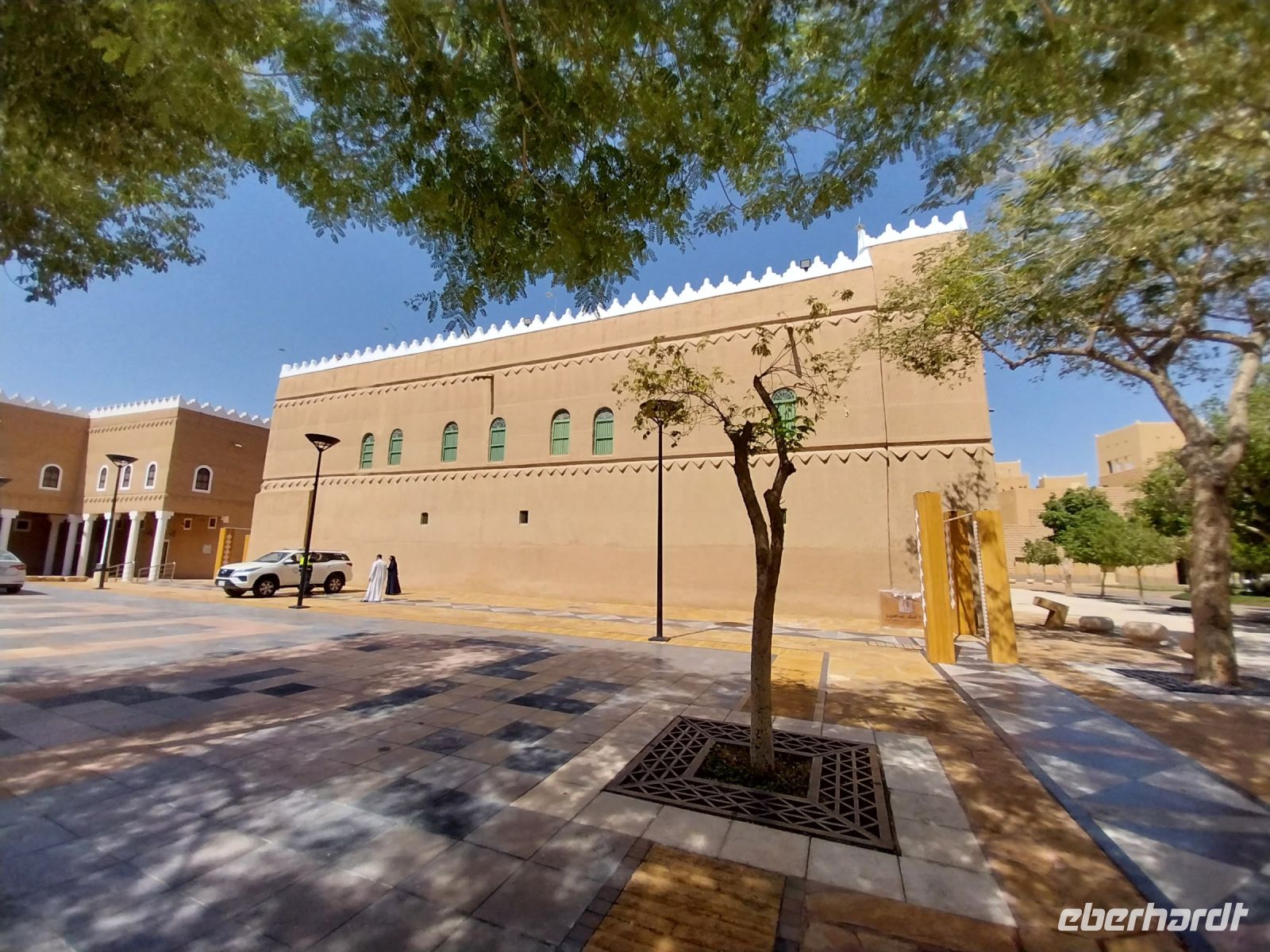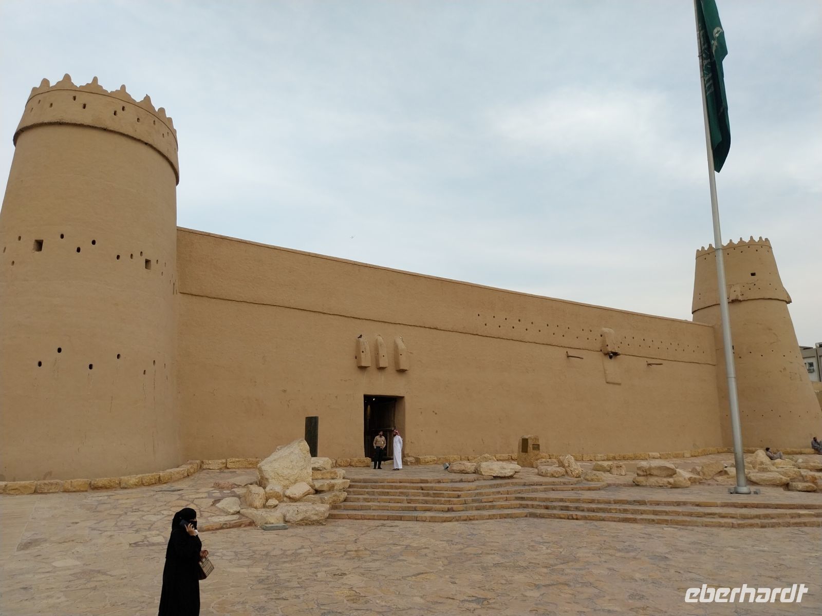 Bevor wir abends ins Hotel zurückkehren, halten wir noch am Masmak Fort. Auch hier geht es vor allem um die jüngere Geschichte der AL Saud Familie. Insbesondere wird die Eroberung des Forts 1902 durch eine Handvoll Saudis unter Führung des späteren Staatsgründers glorifiziert.