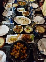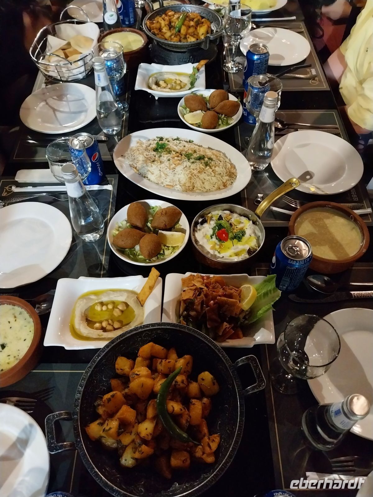 Unser Abendessen haben wir im Restaurant Lobani außerhalb des Hotels. Bei sommerlichen Temperaturen im Freien genießen wir wir ein leckeres libanesisches Tischbuffet.