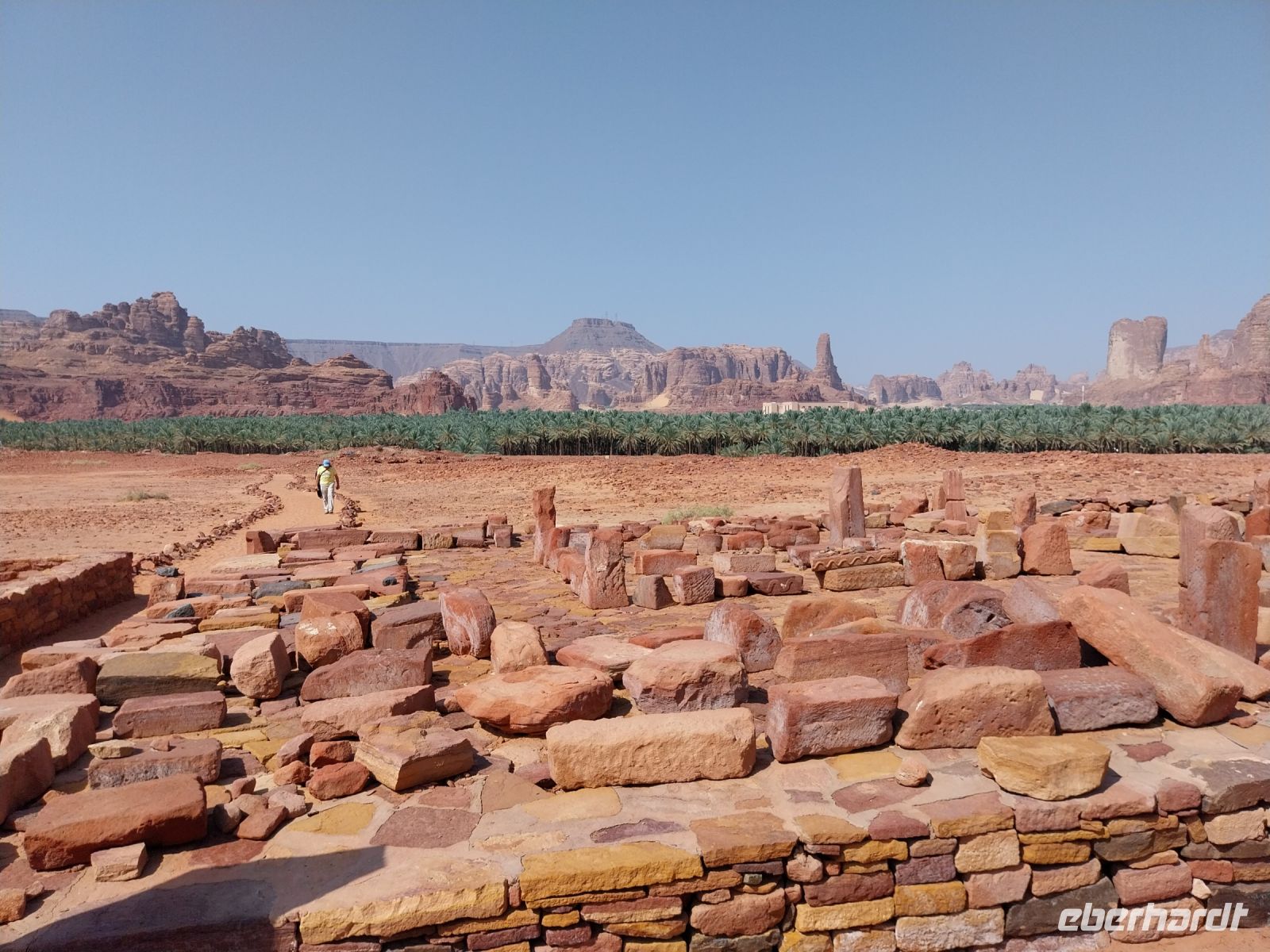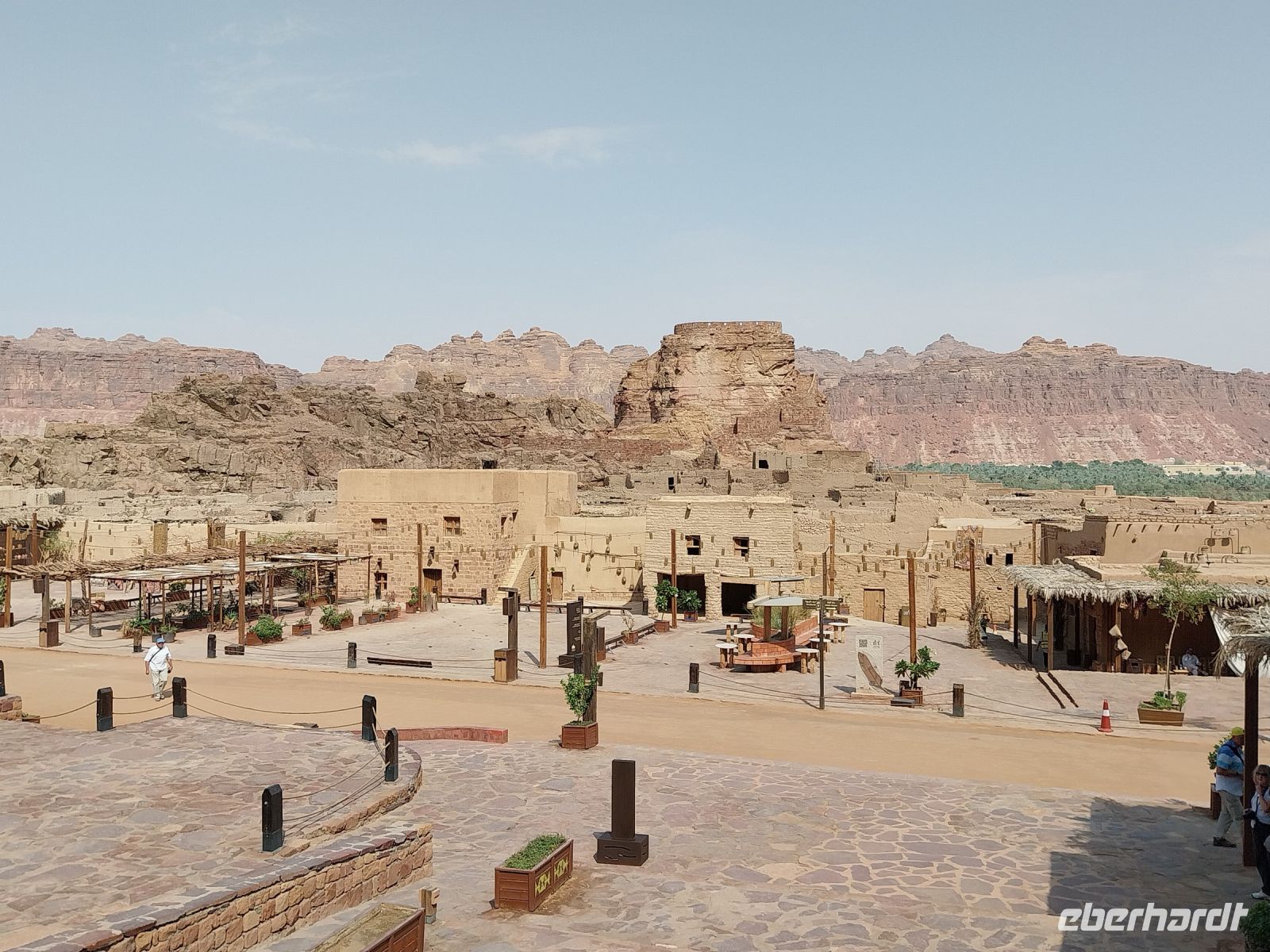Mittags erkunden wir als nächstes die Altstadt von Al Ula. Wir konzentrieren uns auf die Fußgängerzone während im stark gefährdeten Winterlehmdorf unterhalb der Fußgängerzone umfangreiche Rekonstruktionsarbeiten durchgeführt werden.