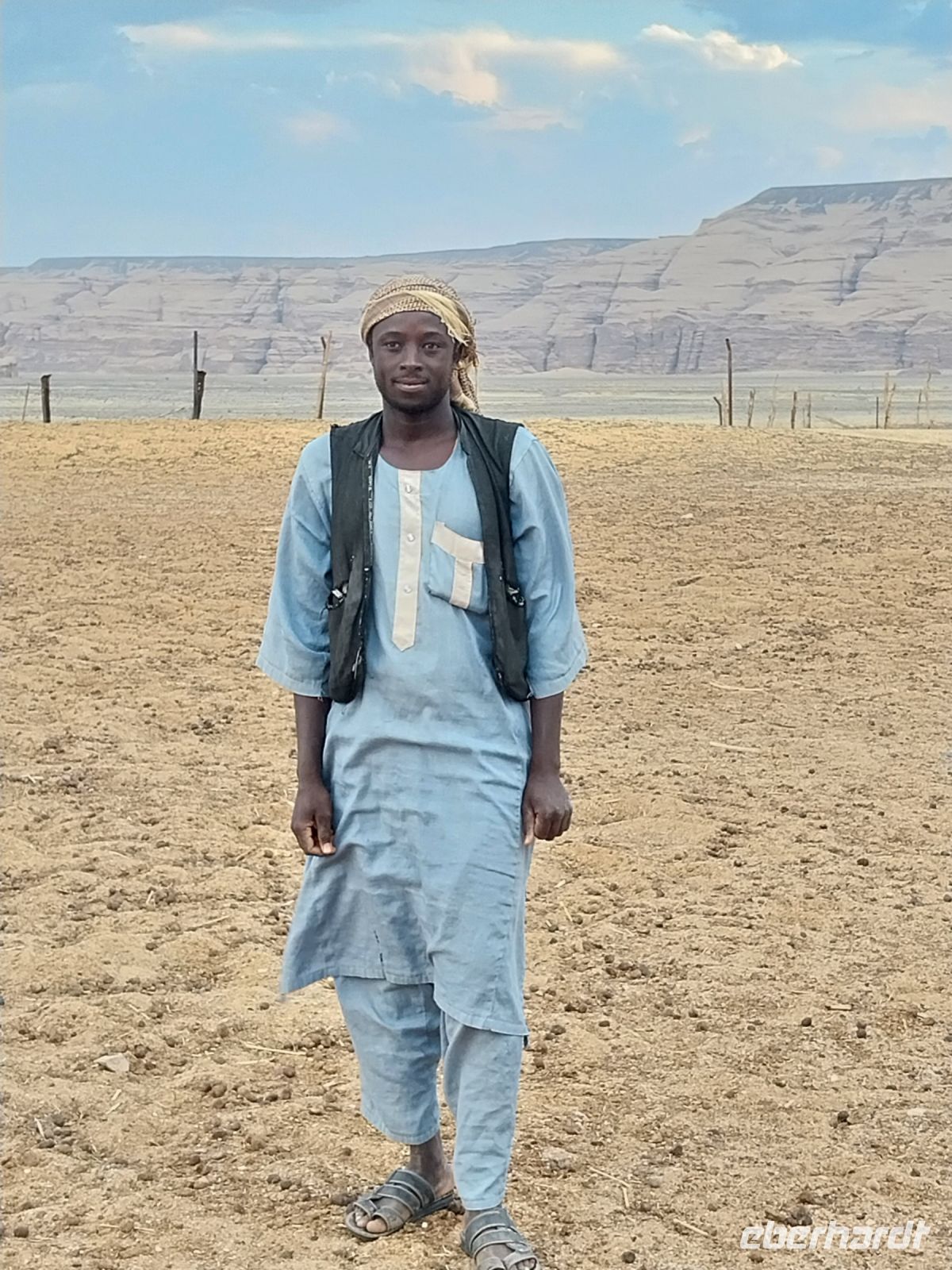 Wir haben unser geplantes Programm im zeitlichen Ablauf umgestellt und damit Zeit für einen zusätzlichen Ausflug gewonnen. Nachdem wir noch eine vergessenen Sonnenbrille in der Altstadt abgeholt haben, fahren wir zum Felsenbogen im Madachil-Tal. Der Felsenbogen, ein Wunder der Natur, ist auch für uns ein willkommenes Fotomotiv. In der Nähe haben wir Kamele in einem Gatter entdeckt. Also besuchen wir noch Kamele. Der sudanesische Aufpasser lässt uns ins Gatter hinein und damit ganz nah an die Kamele heran. Wir haben viel Spaß…?? Inzwischen senkt sich die Sonne am Horizont. Ein weiterer Tag mit schönen Eindrücken geht zu Ende.