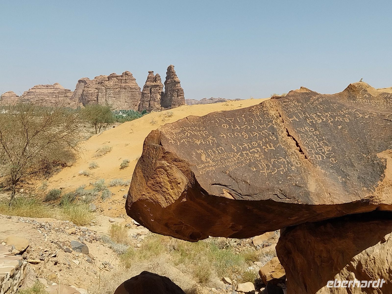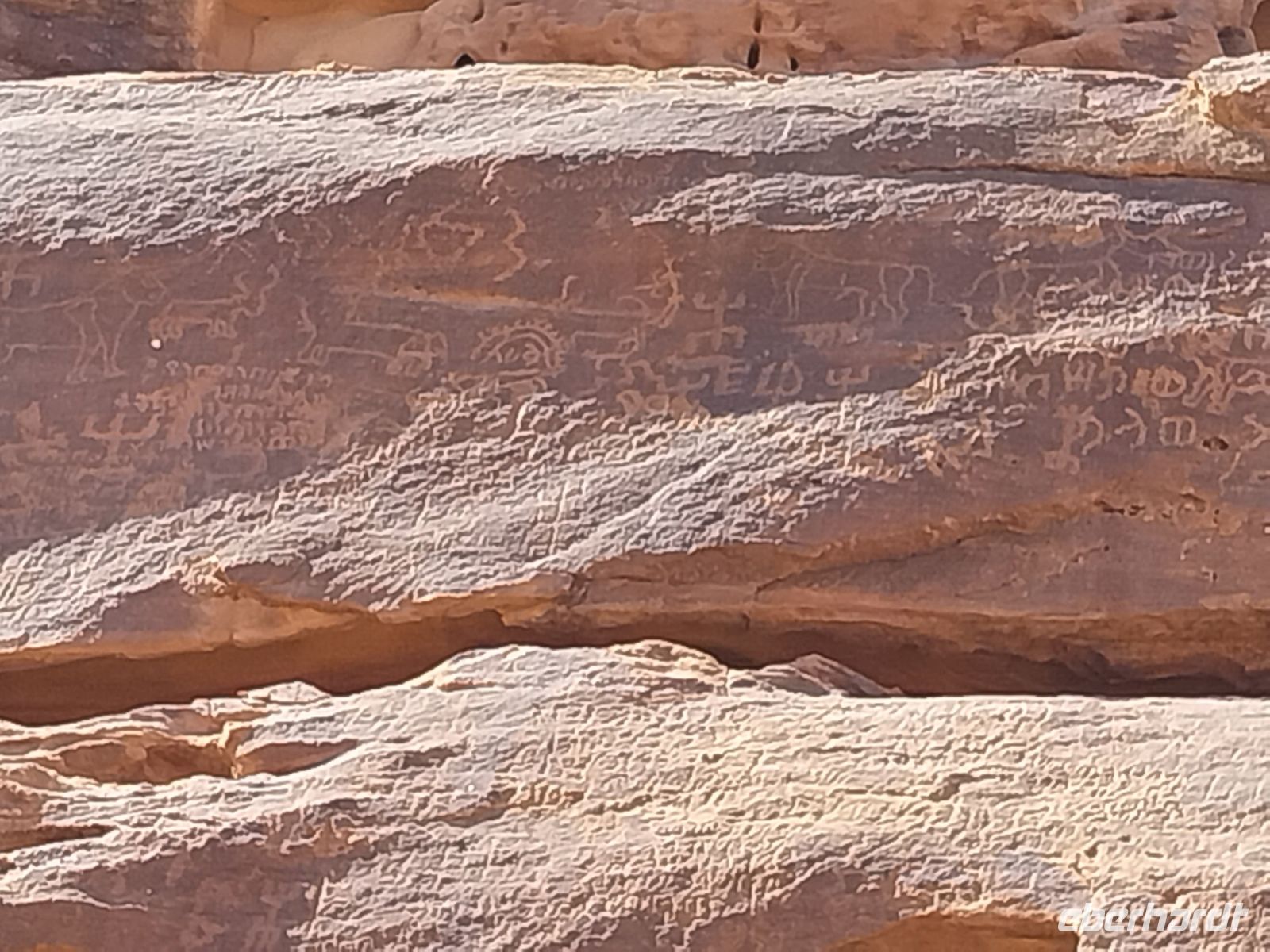 An anderer Stelle, zu Füßen des Berges Jabal Ikmah widmen wir uns alten Inschriften
