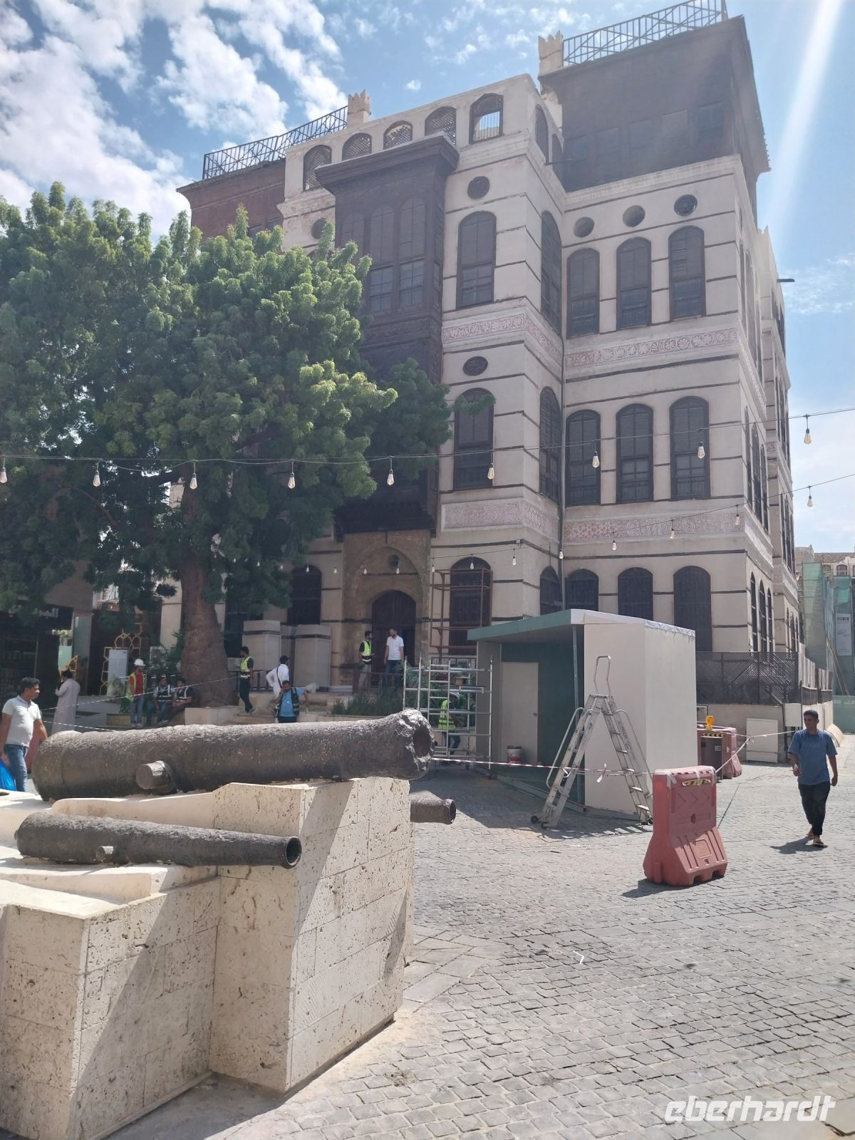 Der Morgen beginnt holprig. Zunächst mag ein Schließfach die Wertsachen nicht mehr hergeben, ein Techniker muss ran. Dann meinen Staatsgäste, dass sie heute das Abdul Raouf Khalil Museum ganz für sich allein haben sollten. Wir kommen also heute nicht in dieses Museum…das ist Saudi Arabien. Wenigstens schauen wir uns das imposante Museumsgebäude noch von draußen an und widmen uns dann ausgiebig der historischen Altstadt und machen dort das „XXL-Programm“.