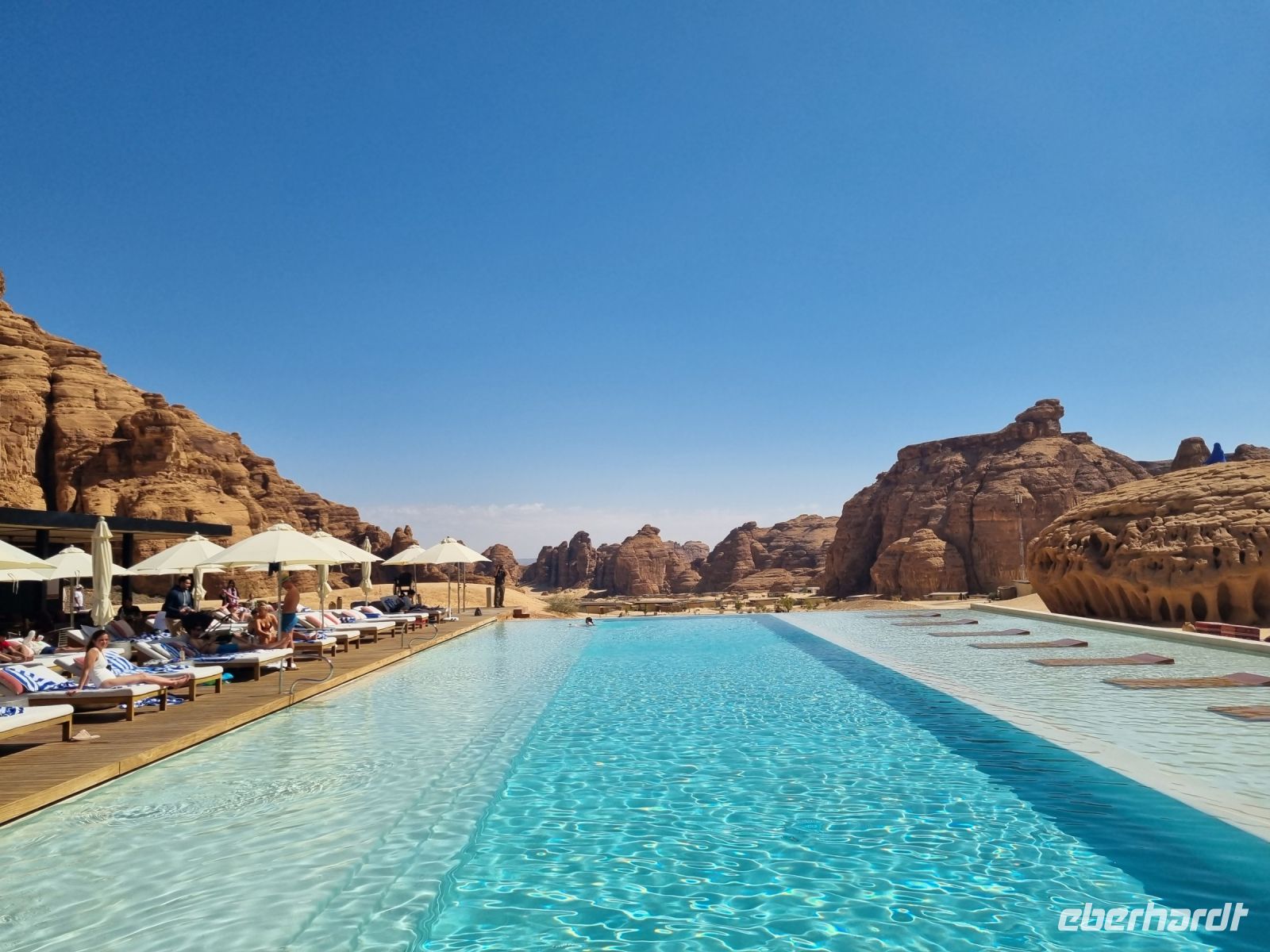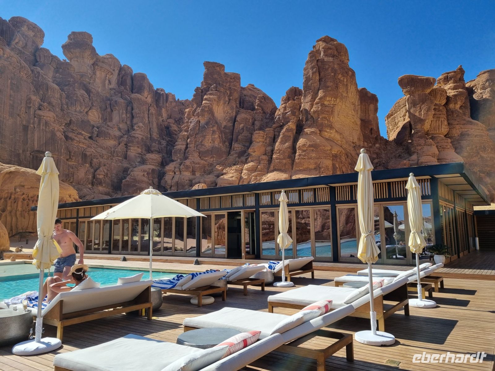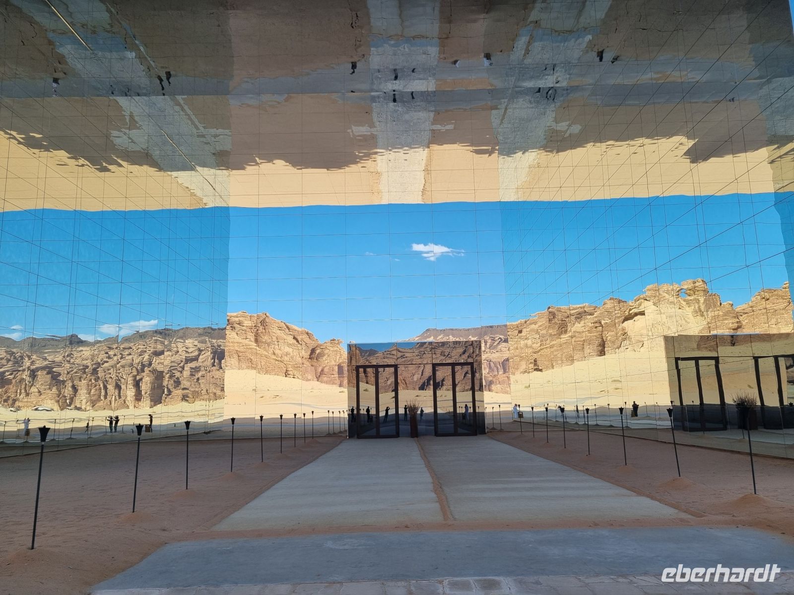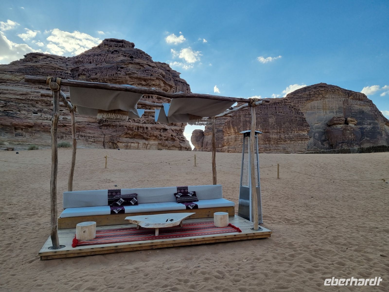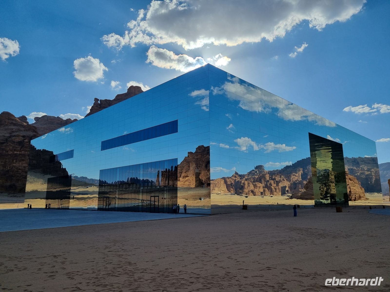 Der heutige Vormittag stand ganz im Zeichen der UNSESCO-Weltkulturerbestätte Mada´in Salih, einem großen Gebiet mit Nabatäischen Ruinen. Sie sind die beeindruckendsten vorislamischen Kulturdenkmäler Saudi-Arabiens und das Pendant zu den Felsengräbern im jordanischen Petra. Das antike Hegra war immerhin die südliche Hauptstadt des Nabatäischen Königreichs, während das heute in Jordanien liegende Petra die nördliche Hauptstadt war. Von den Strukturen der Stadt Hegra selbst gibt es heute kaum Überreste, lediglich einige künstlich angelegte Wasserquellen haben die Zeit überdauert. Entgegen gängiger Annahmen sind die eindrucksvollen, in den Fels gehauenen Bauten nämlich keine Wohngebäude, sondern Gräber. In der Regel haben sich hier bereits zu Lebzeiten Einzelpersonen und Familien Grabmäler errichten lassen und einige dieser gigantischen Nabatäer-Gräber konnten wir uns hier genauer anschauen. So langsam wurde es auch schon wieder Zeit für eine Stärkung und somit fuhren wir in eine luxuriöse Hotelanlage, dem „Habitas Resort AlUla" weiter, um dort ein exklusives Mittagessen einzunehmen. Dieses geschmackvolle Essen und das hervorragende Ambiente war sicherlich einer der Höhepunkte in Bezug auf die Kulinarik unserer Reise. Ein weiteres unvergessliches Erlebnis ließ anschließend nicht lange auf sich warten, denn wir sahen am Nachmittag das größte verspiegelte Gebäude der Welt, die Maraya-Konzerthalle. Maraya bedeutet auf Arabisch Spiegel und bildet eine Erweiterung der Umgebung, wobei alle Seiten vollständig von reflektierenden Paneelen bedeckt sind, die die abstrakten Ansichten des goldenen Sandes und der majestätischen Berge, die sie umgeben, brechen. Einfach gigantisch und mit Worten kaum zu beschreiben! Den Abend verbrachten wir dann am monumentalen Elefantenfelsen, unweit unseres Hotel-Resorts. Er ist einer der weltweit beliebtesten Felsformationen, denn aus der Ferne betrachtet wirkt dieser Felsen wie ein Elefant mit bodengebundenem Rüssel. Rumpf und Körper aus rotem Sandstein wurden durch Wasser- und Winderosion geformt, die über Millionen von Jahren verursacht wurde. Der riesige Elefant steht in einer Landschaft aus goldenem Sand, umgeben von anderen Felsformationen, die ebenso beeindruckend groß sind. Die Schönheit dieses mächtigen Elefanten nimmt nur bei Einbruch der Dunkelheit zu, wo er in den warmen Lichtern, die vor Ort installiert wurden, lebensechter wird.