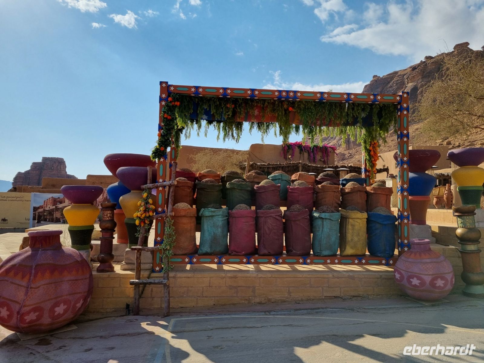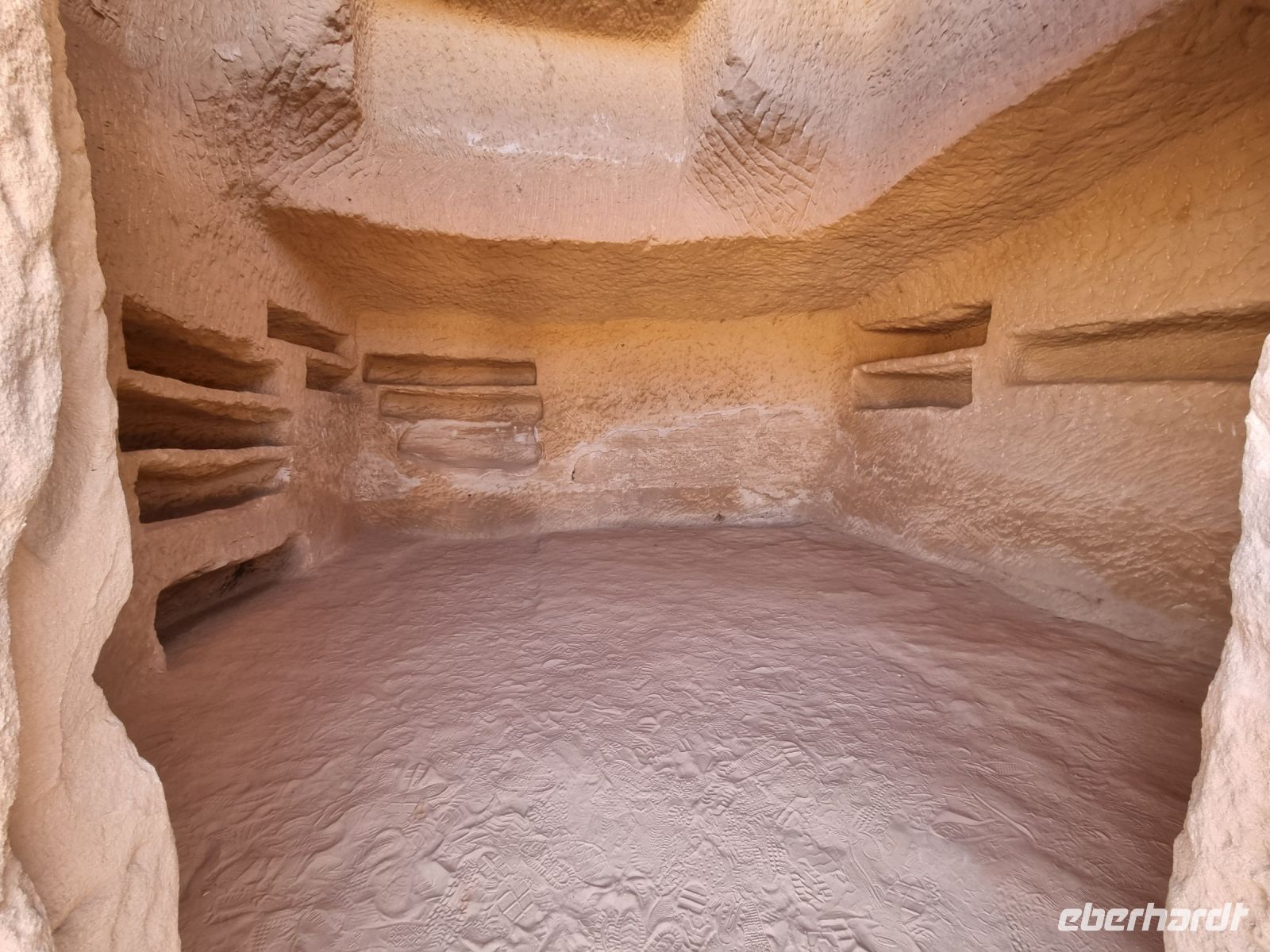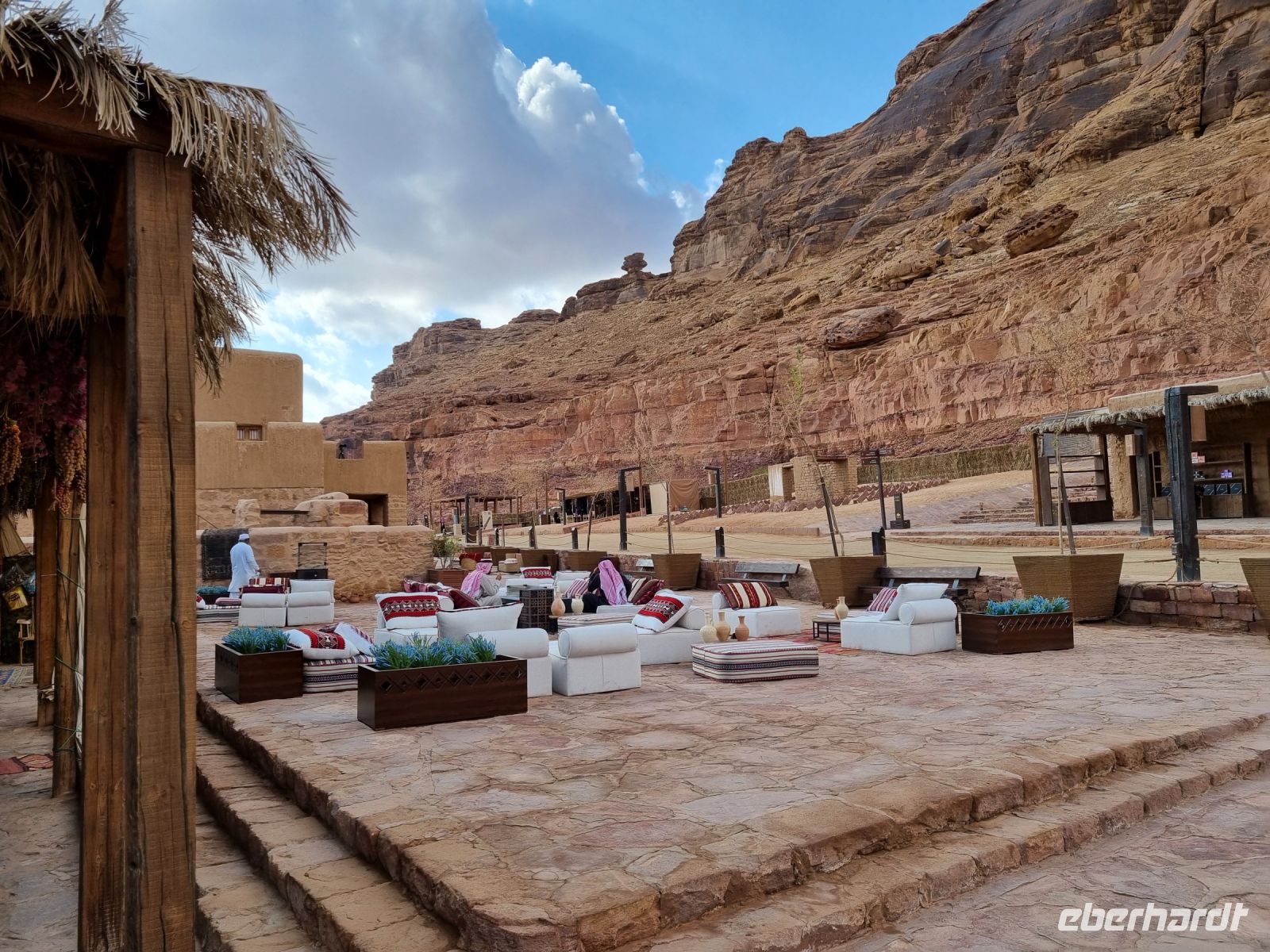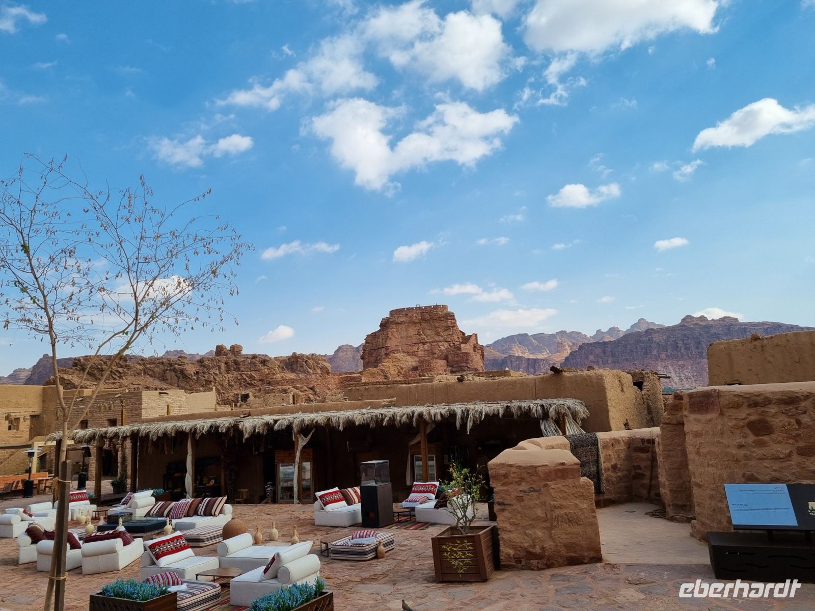 Nach einer kurzen Busfahrt erreichten wir die Altstadt von Al-Ula, welche sich vor allem durch ihre Lehmziegel-Häuser auszeichnet. Diese rund 900 Häuser sind, um Schutz zu bieten, miteinander verbunden gebaut und weisen darauf hin, dass die Verteidigung für die früheren Bewohner der Stadt oberste Priorität hatte. Die Stadt wurde schätzungsweise im 12. Jahrhundert gegründet und war bis in die 1980er Jahre bewohnt, als die letzten Einwohner in moderne Quartiere umzogen. Entlang der Weihrauchstraße im historischen Kern luden uns Open-Air-Restaurants und kleine Geschäfte mit Kunsthandwerk zum Verweilen und Stöbern ein. Gern wären wir hier noch länger geblieben...! Wenig später erreichten wir die benachbarte Oase Daimumah. Ausgehend vom arabischen Wort für „Nachhaltigkeit“ verbindet Daimumah Kunst, Natur und Erbe im malerischen und ruhigen Herzen der Oase – hier entstand in den letzten Jahren ein tolles Naherholungsgebiet mit Zitrusfrüchten und Palmen bzw. allen möglichen Annehmlichkeiten. Eine weitere kurze Busfahrt führte uns zum Besucherzentrum von Dadan, der ehemaligen Hauptstadt der Königreiche von Dedan und Lihyan. Aufgrund der Nähe zu den Weihrauch-Handelsrouten war Dadan noch vor der Ankunft der Nabatäer eine der am weitesten entwickelten Städte Nordarabiens. Wir begaben uns zunächst zu den Gräbern der alten Stadt, das Imposanteste wird immerhin von „Löwen" bewacht. Es handelt sich dabei um nebeneinander liegende, gemeißelte Gräber, jeweils von Löwenreliefs flankiert, die möglicherweise den Verstorbenen göttlichen Schutz bieten sollten. Anschließend besuchten wir Jabal Ikmah, eine wahrhaft atemberaubende Wüstenschlucht. An den Wänden begeisterte uns eine Jahrtausende alte sogenannte „Freiluftbibliothek" mit zahllosen Petroglyphen und beeindruckender Felskunst. Wir konnten uns hier sogar selbst aktiv betätigen, indem wir unsere Namen in Steine einmeißelten. Den Nachmittag verbrachten wir in zwei wunderschönen Gebieten nördlich von Al-Ula – Madachil und Gharamil. Das weite Madachil-Tal zeigte uns eine Märchenlandschaft, in der wir die wahre Poesie der Wüste erleben konnten. Ein besonderes Fotomotiv war für uns ein durch die Natur geformter Bogen, der durch Winderosion entstanden ist. Ein weiterer Höhepunkt war zweifelsohne das Wüstengebiet „Gharamil", eine unendlich weite Landschaft, die uns in eine Mondlandschaft der besonderen Art verführte. Unzählige, phantasievolle und pyramidenförmige Gesteinsfiguren aus Basalt begegneten uns und mit ein wenig Phantasie wurde in jedem einzelnen Stein eine besondere Figur wach. Den krönenden Abschluss des heutigen Tages bildete eine wundervoller Sonnenuntergang in der Wüste.