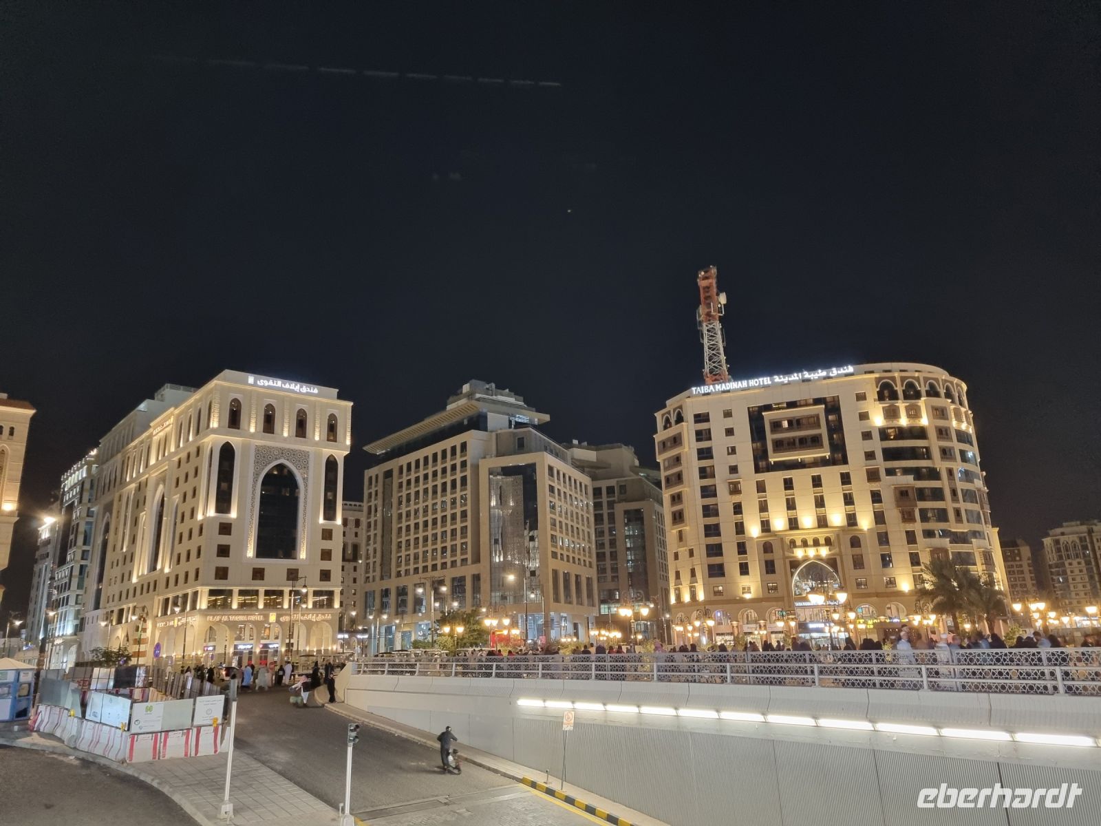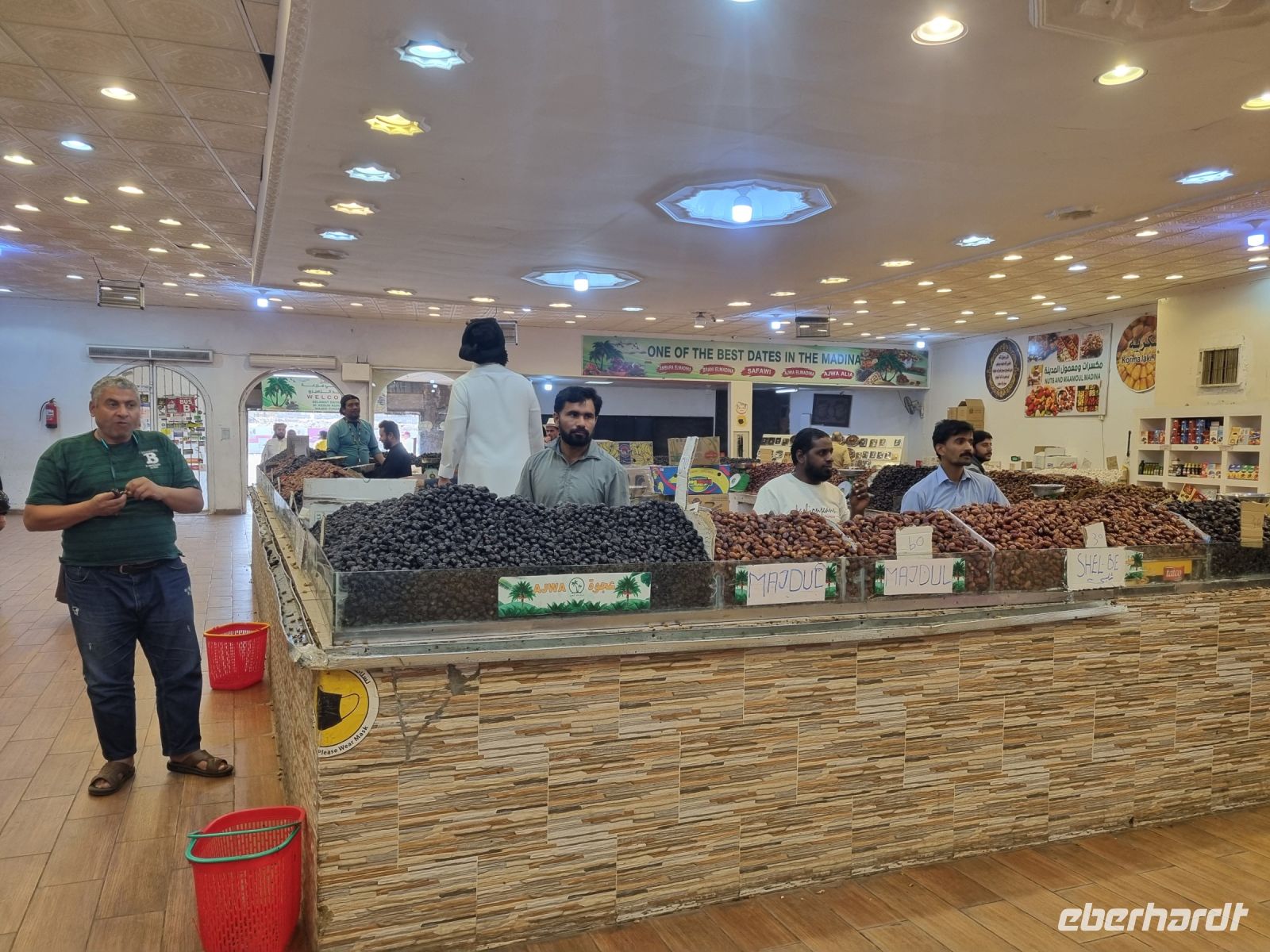 Nach einem letzten Frühstück im „AlUla Resort" brachen wir in Richtung Süden auf. Gegen Mittag legten wir einen Zwischenstopp in Khaibar, einem Oasengebiet auf einem hoch gelegenen Lavaplateau ein. Das Dorf Khaybar war zur Zeit des Propheten eine jüdische Siedlung. Irgendwann gab es schließlich politische Meinungsverschiedenheiten zwischen den Dorfbewohnern und der muslimischen Mehrheit, so dass die Bewohner in Schwierigkeiten gerieten. Wir konnten noch immer die alte Festung sehen, in der sich die damaligen Leute acht Monate von Datteln und Milch ernährten. Lehmhäuser aus der Vergangenheit bestimmen das Ortsbild und wie ein perfekter Archäologen-Traum erschien das völlig verlassene Khaybar. Wir lauschten so einigen Geschichten über Pest, Hexen und Schätze in Khaybar, weshalb alle Dächer entfernt wurden – die Menschen glaubten nämlich, dass die Dörfler ihre Schätze unter ihren Dächern versteckten. Die Weiterfahrt hielt noch eine kleine böse Überraschung für uns bereit, denn unser Bus hatte sich einen Reifenplatten eingefangen und wir kamen nicht umher, eine Werkstatt anzusteuern. Der dritte Anlauf brachte uns Glück und mit einer dieser Situation geschuldeten Verspätung fuhren wir nach Medina weiter. Der heutige Tag hatte es irgendwie in sich, denn als wir am frühen Abend unser Hotel „Le Meridien" erreichten, war an der Rezeption leider nicht wirklich etwas für das Einchecken vorbereitet und wir benötigten daher viel Geduld, um ein sauberes Zimmer zu bekommen. Noch dazu kam, dass aufgrund einer großen Hochzeit das gesamte Hotel ausgebucht war. Wir hatten allerdings noch viel vor und wenig Zeit, denn heute Abend besuchten wir dann auch noch den zweit-heiligsten Ort des Islam und dafür mussten wir uns züchtig kleiden. Lange Hosen oder Kleider, Kopftuch für die Damen und schon konnte es los gehen. Nach wenigen Fahrminuten erreichten wir das Zentrum von Medina. Hier besuchten wir zuerst eine Ausstellung über die Entstehung der Prophetenmoschee, um die sich einige Mythen ranken. Medina ist immerhin der Ort, wohin Mohammed reiste, nachdem er aus Mekka verbannt worden war. Anschließend hatten wir die Gelegenheit, dieses eindrucksvolle Bauwerk des Islam aus der Ferne zu betrachten, denn Nicht-Muslimen ist es nicht gestattet, in die Moschee hineinzugehen bzw. sich auf dem riesigen Areal des Vorplatzes aufzuhalten. Wir beobachteten daher alles aus der Ferne, abgetrennt von einem großen Gitterzaun. Für uns war es trotz dieser Beschränkungen ein einmaliges Erlebnis, das wir so schnell nicht wieder vergessen werden. Ein leckeres Abendessen vom Buffet im Hotel rundete diesen erlebnisreichen Tag ab.