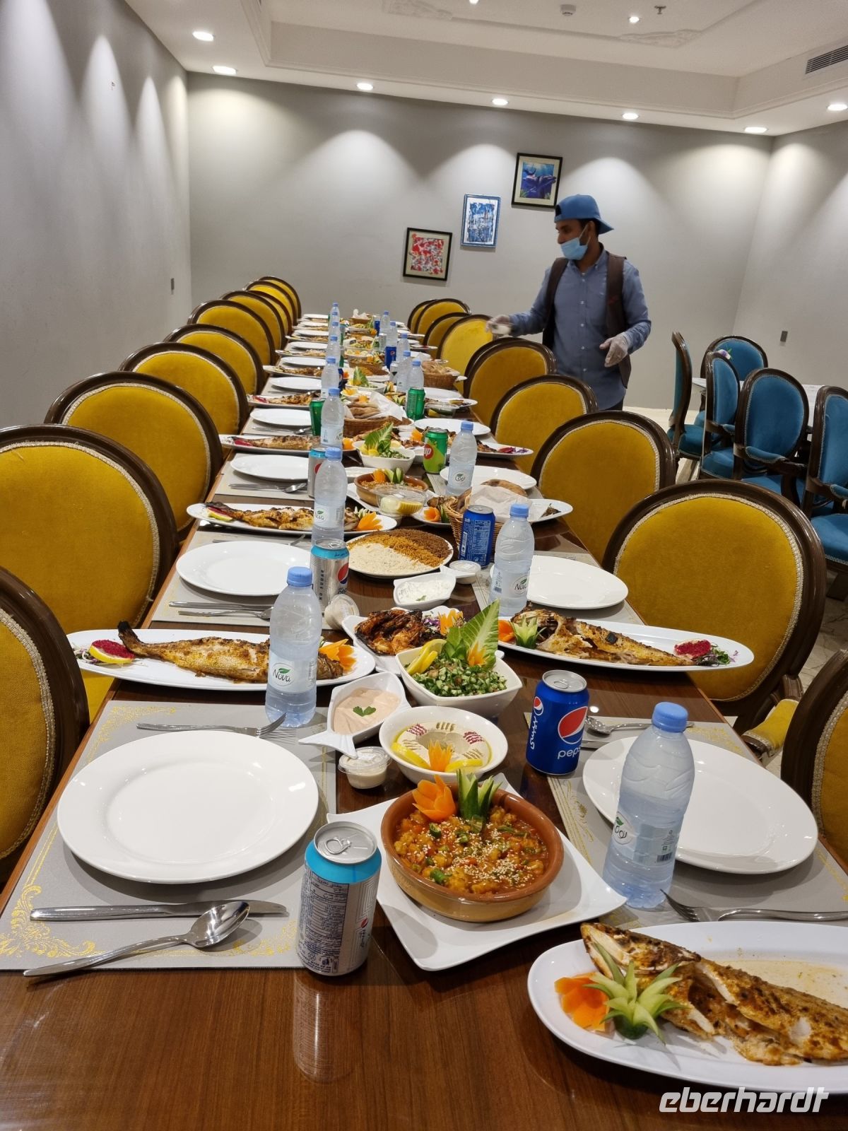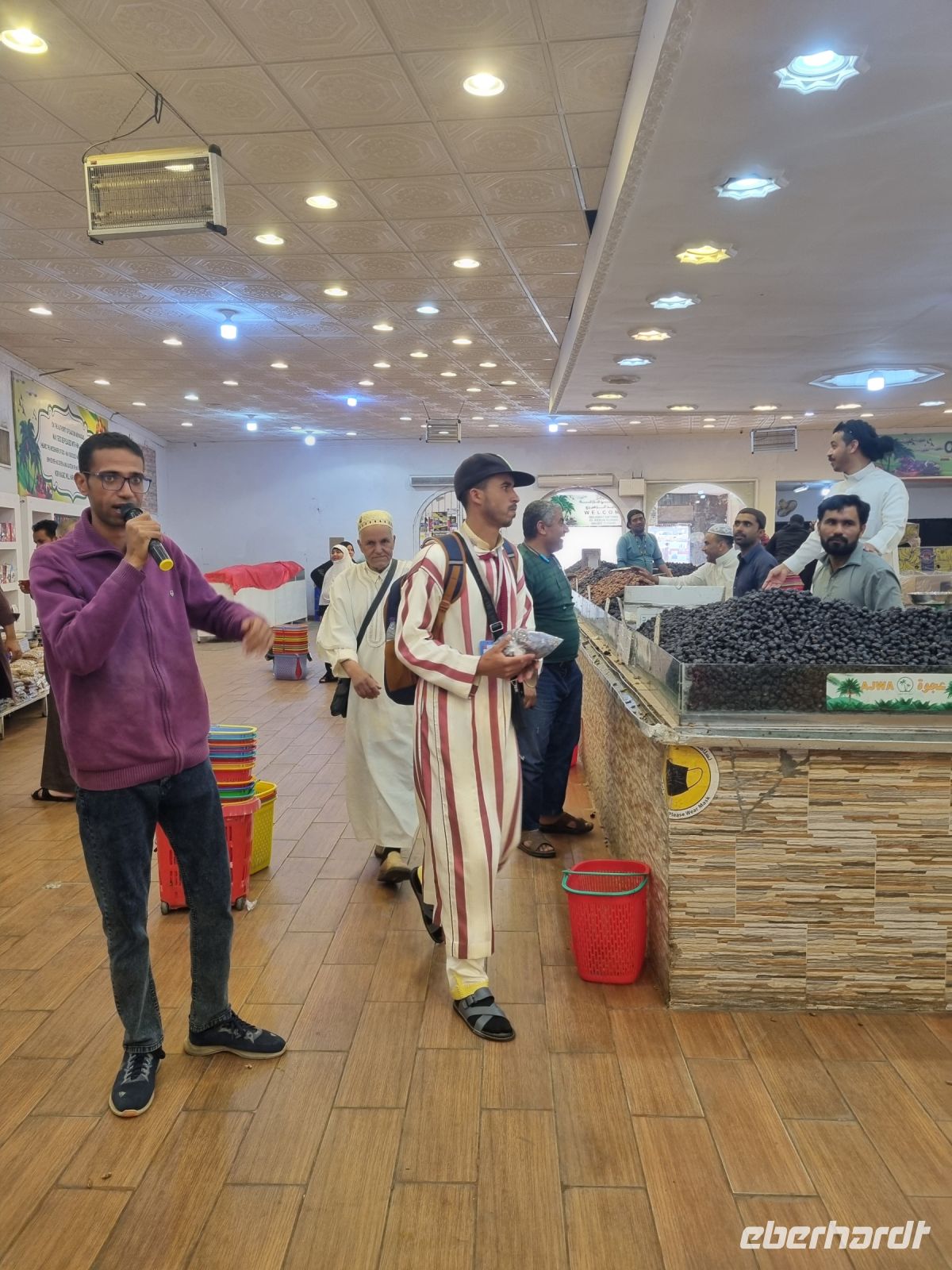 Am Vormittag stand unsere Entdeckungstour in Medina an. Zuerst legten wir einen Fotostopp an der größten Koran-Druckerei der Welt ein. Dieser Komplex druckt jedes Jahr exklusiv mehr als 10 Millionen Exemplare des Heiligen Korans. Diese Drucke sind nicht nur in arabischer Sprache, sondern enthalten auch Übersetzungen in vielen anderen Sprachen. Am heutigen Freitag war eine Innenbesichtigung leider unmöglich. Unsere Stadtrundfahrt führte uns weiter an den verschiedenen wichtigen Moschee der Stadt vorbei. Nachdem wir an der Moschee der zwei Gebetsrichtungen und an den sieben kleinen Moscheen einen Halt machten, erreichten wir wenig später den Dattelmarkt. Medina ist für seine Datteln bekannt und auf dem Dattelmarkt fanden wir die besten Datteln. Vom saftigen Ajwa bis zum karamellartigen Safawi war die Vielfalt erstaunlich und wir konnten sowohl verkosten als auch kaufen. Es handelte sich nicht nur um einen Markt, sondern es war auch ein Erlebnis, dass unsere Geschmacksknospen verwöhnte und uns ein süßes Stück Medina-Traditionen bot. Ein weiteres Besichtigungsziel war später die bekannte Quba-Moschee, die einen bedeutenden Platz in der islamischen Geschichte hat und auch im Heiligen Koran als die Moschee erwähnt wird, die auf „Frömmigkeit“ gebaut wurde. Abschließend erreichten wir das Gebiet zu Füßen des Berges Uhud. Unterhalb des Berges erhebt sich ein kleiner Hügel mit dem Namen Archers´Hill, von wo aus wir einen schönen Blick auf die benachbarte Moschee Shuhada Uhud genießen konnten. Die hiesigen Souvenirgeschäfte luden zu einem Bummel ein, bevor es weiter zum supermodernen Haramain-Bahnhof von Medina ging. Der Bahnhof wirkte fast wie ausgestorben, wir hatten anfangs das Gefühl, fast allein hier zu sein. Absolut kein Vergleich zum hektischen Publikumsverkehr auf deutschen Bahnhöfen! Uns begegneten lediglich einige Pilger, denn der „Al Haramain"-Hochgeschwindigkeitszug pendelt regelmäßig zwischen Medina und Mekka und für diese insgesamt ca. 450 Kilometer lange Strecke durch die Wüste benötigt er nur zwei Stunden, denn zeitweise fuhren wir mit etwa 300 km/h. Nach diesem aufregenden Bahn-Abenteuer verließen wir den Zug in Jeddah, denn als Nicht-Muslime ist es verboten, bis Mekka zu fahren. Unser Bus erwartete uns schon und dann starteten wir direkt mit einer kleinen Stadtrundfahrt bis zum mondänen Yachthafen. Sofort war klar, Jeddah war völlig anders als Medina – moderner und auch weltoffener! Wir flanierten entlang des Yachthafens und hatten das Gefühl, in einer sehr lebendigen Stadt mit allerlei Annehmlichkeiten angekommen zu sein. Straßencafés, Luxusyachten und prachtvolle Häuser prägten diesen Teil der Stadt. Unser Abendessen nahmen wir heute in einem traditionellen Fischrestaurant ein. Papageienfisch und Meeresfrüchte wurden uns unter anderem gereicht – einfach köstlich! Auf der Fahrt zum Hotel lud uns die abendliche Corniche zu einem kleinen Verdauungsspaziergang ein. Diese wunderschöne kilometerlange Strandpromenade am Roten Meer mit seinen zahlreichen Skulpturen ist für viele Einheimische ein beliebtes Erholungsziel. Einer der höchsten Springbrunnen der Welt, der nach König Fahd benannt wurde, befindet sich ebenfalls hier und aus der Ferne konnten wir die am Abend von Flutlichtern angeleuchtete 312 Meter hohe Fontäne bestaunen, bevor wir letztendlich in unserem Hotel „Mövenpick" in Jeddah eincheckten.