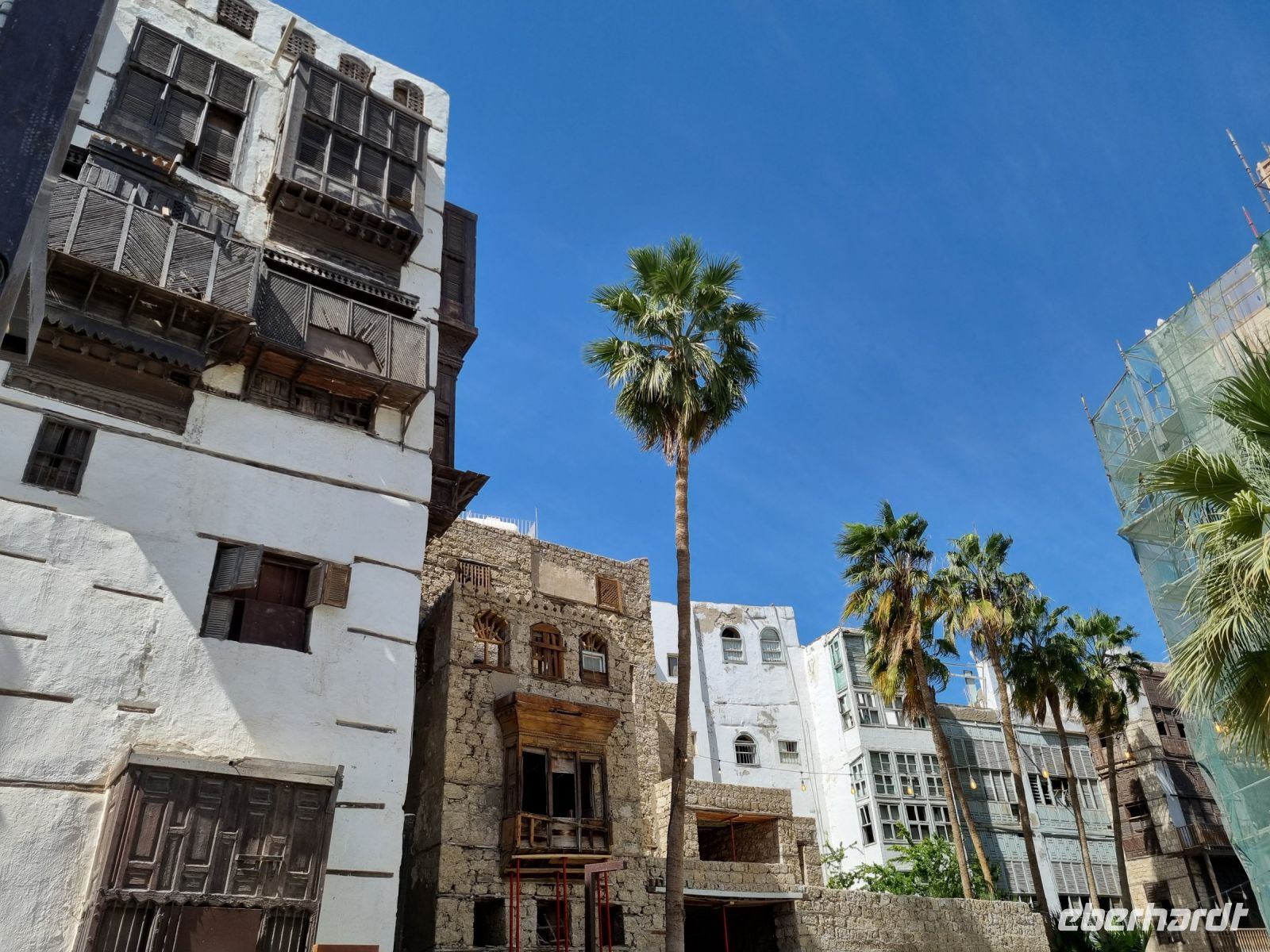 Bereits am Vortag stellten wir schnell fest, dass Jeddah heutzutage eine pulsierende und quirlige Metropole ist, aber die Stadt hat eine ebenso interessante Geschichte und beherbergt zahlreiche interessante Museen. Wir besichtigten zunächst das Museum Abdul Rauf Khalil/Al Taybat, wo uns bereits die Architektur des Gebäudes beeindruckte. Hier gibt es eine interessante private Sammlung von Gemälden, Wandteppichen, Einrichtungsgegenständen und Wohnszenen aus vergangenen Zeiten. Gegen Mittag unternahmen wir dann einen Spaziergang durch die imposante Altstadt, „Al Balad" genannt. Bekannt ist sie für die Bauweise der Häuser, in denen im späten 19. Jahrhundert die Familien reicher Händler lebten und durch die Pilgerströme waren die Einwohner multikulturell, denn es hatten sich Muslime aus Asien, Afrika und dem Nahen Osten niedergelassen. Typisch für die Altstadt sind turmartige Wohnhäuser aus Korallenschutt und Lehmmörtel mit großen sog. „Roshan-Balkonen" aus Holz. Weil der Platz damals knapp war, wurden die Häuser in der Altstadt bis zu sieben Stockwerke hoch gebaut und überragen auch heute noch die umliegenden Moscheen. In eines der Häuser, „Salloum´s Haus", konnten wir sogar hineingehen und bekamen dadurch einen Eindruck über die damaligen Inneneinrichtungen der Wohnungen. Nachdem wir einer im Herzen der Altstadt gelegenen Moschee einen kurzen Besuch abgestattet hatten und dort nochmals wertvolle Informationen über das Leben mit der Religion des Islam bekamen, hatten wir Zeit für einen Bummel durch den Suq Al Alawi. Viele Interessante Geschäfte, die sich wie eine Perlenkette aneinanderreihten, luden uns zum Kauf von arabischen Souvenirs und orientalischen Gewürzen ein. Wenig später erreichten wir dann auch den geschäftigen Fischmarkt von Jeddah, wo die Händler direkt vor unseren Augen die frisch gefangenen Meeresfrüchte und Fische zubereiteten. Zu guter Letzt flanierten wir nochmals und diesmal bei Tageslicht über die Corniche, die Flaniermeile Jeddahs schlechthin, bevor wir zum Flughafen aufbrechen mussten Am Abend ging es leider mit etwas Verspätung von Jeddah nach Riad, wo wir nach nur reichlich einer Stunde Flugzeit landeten und im bereits von der Anreise uns bekannten Hotel „Radisson Blu" übernachteten.