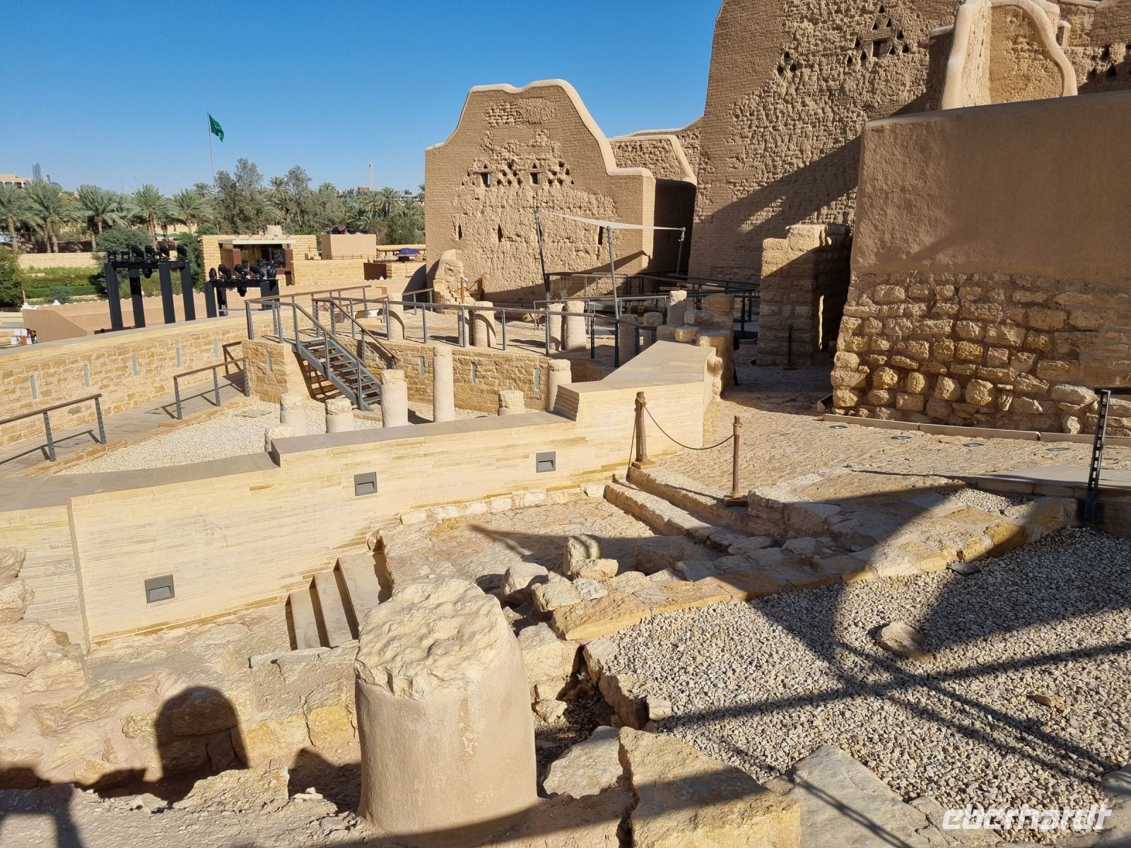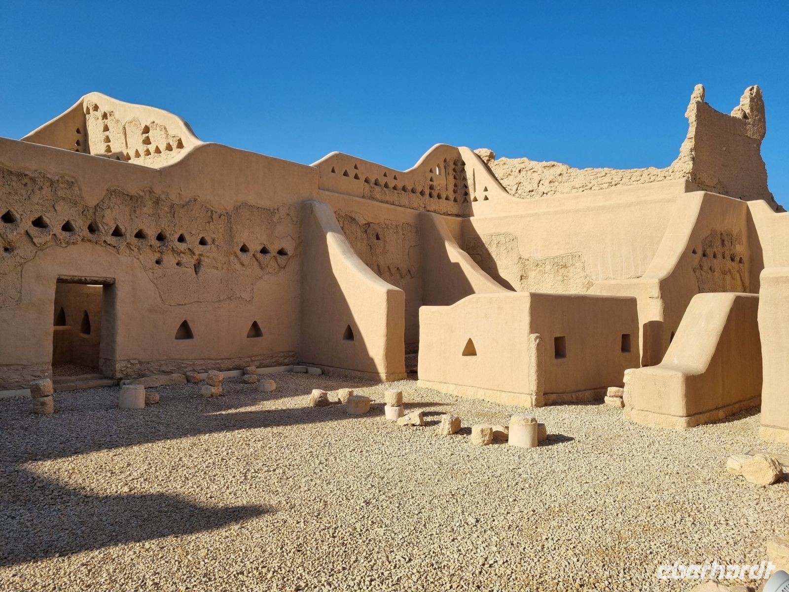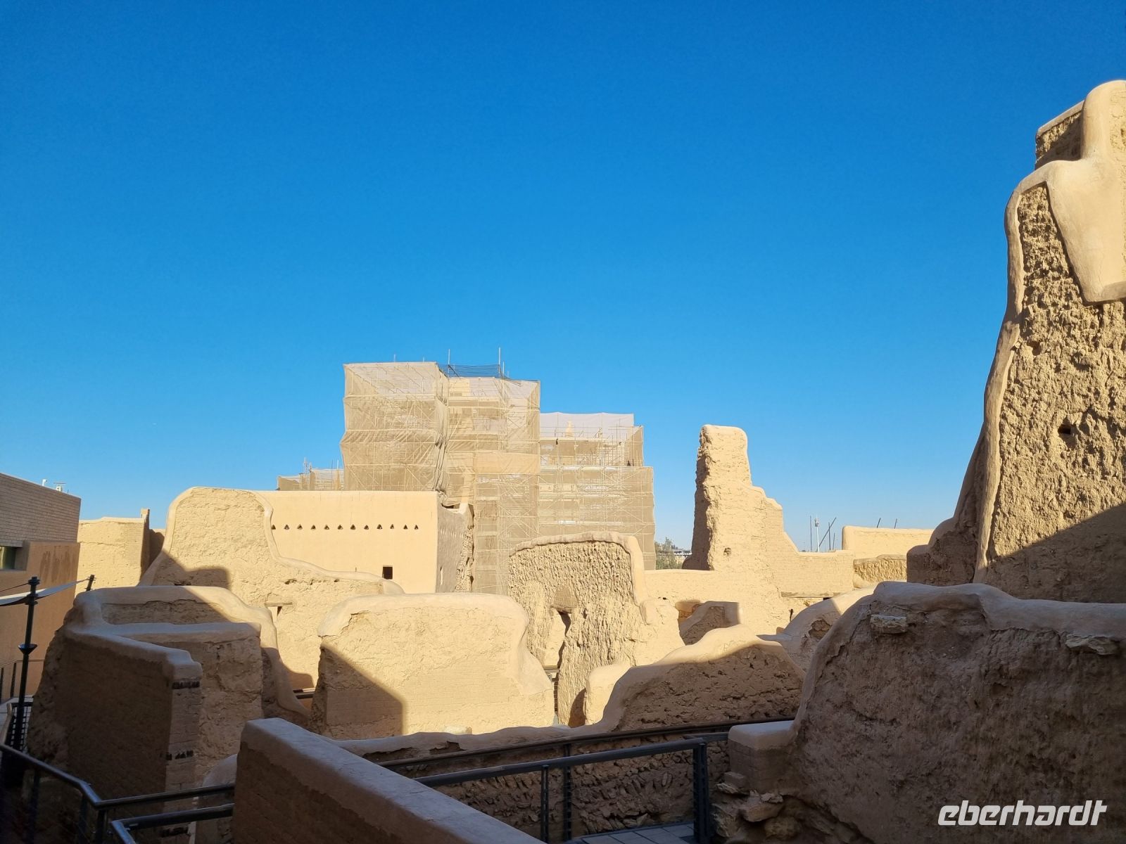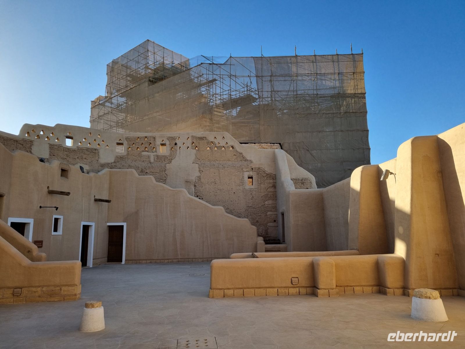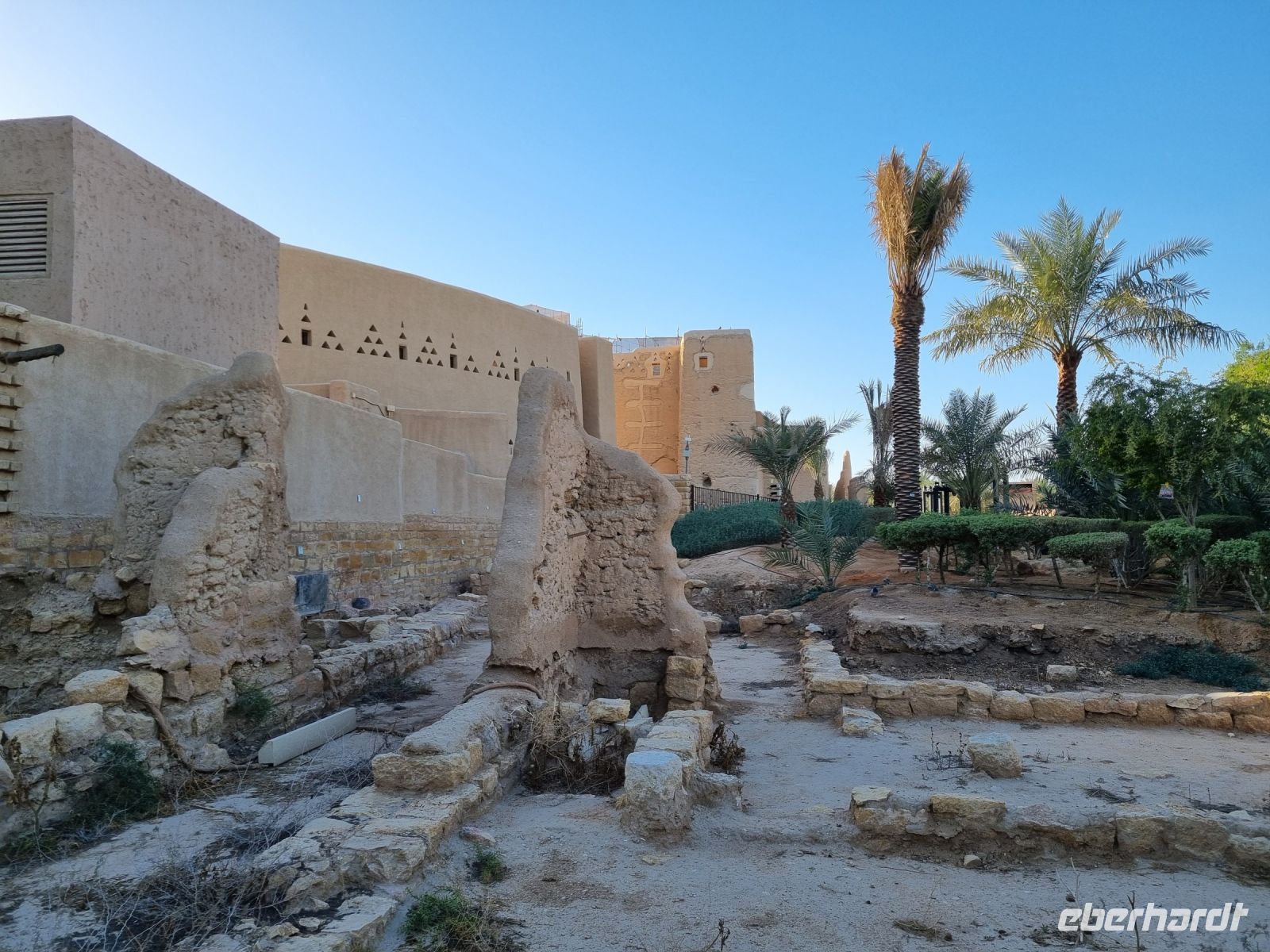 Der letzte Tag stand erneut ganz im Zeichen der saudischen Hauptstadt Riad, einer Millionenstadt im Wandel... Zuerst besichtigten wir den alten Königspalast, auch Murabba Palast genannt, der am Beginn der Reise wegen kurzfristig geänderter Öffnungszeiten nicht stattfinden konnte. Anschließend fuhren wir zum Fort Masmak, wo leider nur eine Außenbesichtigung möglich war, denn derzeit finden hier Restaurierungsarbeiten statt. Der alte Palast von Masmak ist immerhin ein stiller Zeuge wichtiger Ereignisse in der Geschichte der Gründung des Königreichs Saudi-Arabien. In unmittelbarer Nachbarschaft befindlich, gelangten wir nun zu einem der berüchtigtsten Plätze der Stadt, dem Al-Safah-Platz. Dies war bis zum Jahre 2019 ein öffentlicher Hinrichtungsplatz und erstreckt sich direkt vor einem Gebäude der Religionspolizeibehörde. Kaum vorstellbar, dass hier Menschen unter den Augen von zahlreichen Zuschauern geköpft wurden und so manch einer bekam bei diesen Gedanken Gänsehaut. Auch hier konnten wir einen Suq besuchen, um letzte Einkäufe zu tätigen. Am Nachmittag widmeten wir uns der „Keimzelle" der Stadt und erreichten den nordwestlichen Vorort Diriyah im Herzen einer grünen Oase voller Obstplantagen, Farmen und Palmen, inmitten einer arabischen Wüste und an den Ufern des Wadi Hanifa. Hier befanden wir uns nun am Geburtsort des saudischen Königreichs, denn vom 15. Jahrhundert bis Anfang des 18. Jahrhunderts war es die Hauptstadt des Najd (der zentralen Hochebene der Arabischen Halbinsel). Seine große Bedeutung in der Geschichte der Arabischen Halbinsel wurde hervorgehoben, als es 2010 als das brillanteste Beispiel der Najdi-Architektur in die Liste des UNESCO-Weltkulturerbes aufgenommen wurde. Die Geschichte von Ad-Diriyah reicht Tausende von Jahren zurück, da es auf einer alten Handels- und Pilgerroute lag und als Treffpunkt für diejenigen diente, die von oder nach Asien, Afrika und Europa reisten. Während wir anschließend erneut auf die Innenstadt zufuhren, hatten wir dann nochmals die Gelegenheit, die rasante Entwicklung dieser kosmopolitischen Hauptstadt mit seinen zahlreichen Wolkenkratzern zu bewundern – ein absoluter Kontrast und mit Worten kaum zu beschreiben. Abschließend besuchten wir die neue Boulevard-City, das Vergnügungszentrum der Stadt schlechthin. Ganz nach dem Vorbild von Las Vegas ist die Boulevard-World zum neuen Unterhaltungs-Hotspot der Wüstenstadt geworden. Neben dem Nachbau weltbekannter Bauwerke wie dem Times Square, den Kanälen Venedigs, der marokkanischen Medina bis zur Londoner Coventry Street, lockten unzählige weitere Unterhaltungsmöglichkeiten von Achterbahnen über Licht- und Wasserspiele, Feuerwerkshows bis hin zu Einkaufszentren, Kinos, Hotels und Restaurants. Unter dem Motto „Zwischen Tradition und Moderne" schlossen wir unsere Stadtbesichtigung ab und kämpften uns durch den dichten Verkehr in unser Hotel zurück, um eine letztes Abendessen einzunehmen und gegen 22 Uhr zum Flughafen in Riad aufzubrechen. Alles verlief planmäßig und gegen 2 Uhr nachts hob unser Flieger über den nächtlichen Himmel des Wüstenstaates ab.