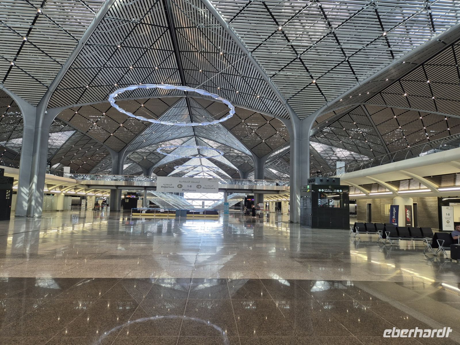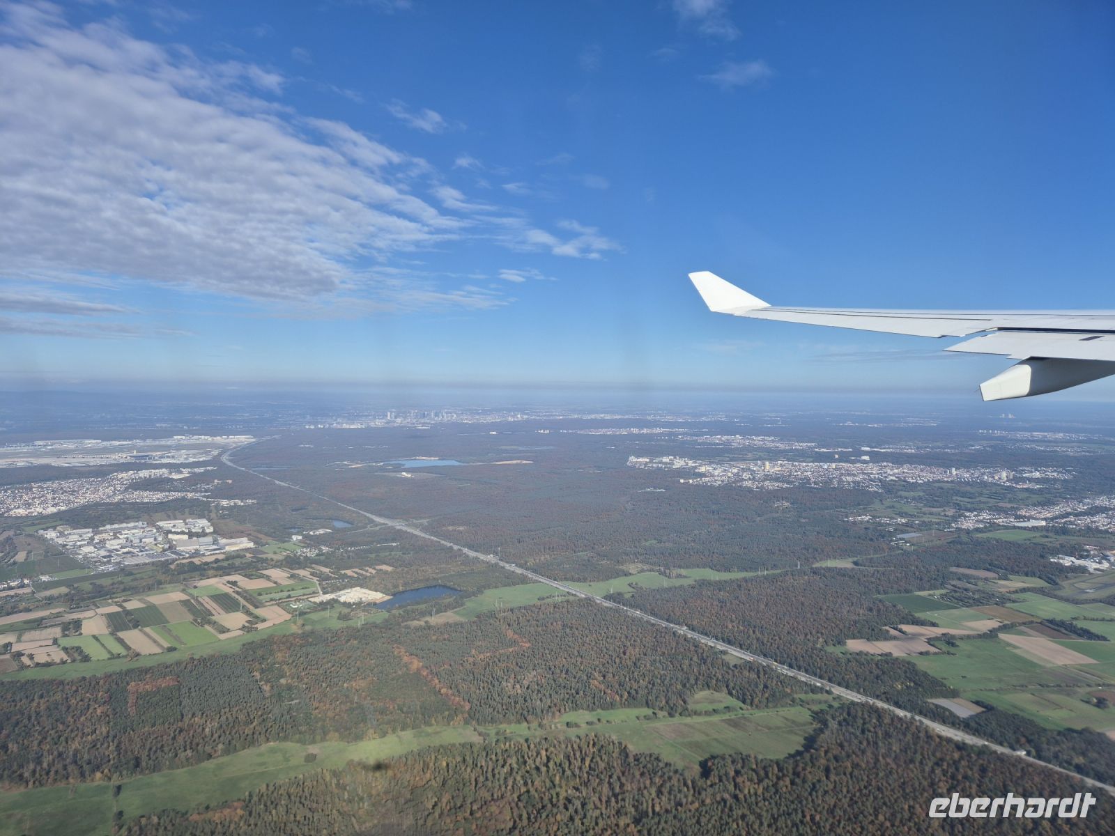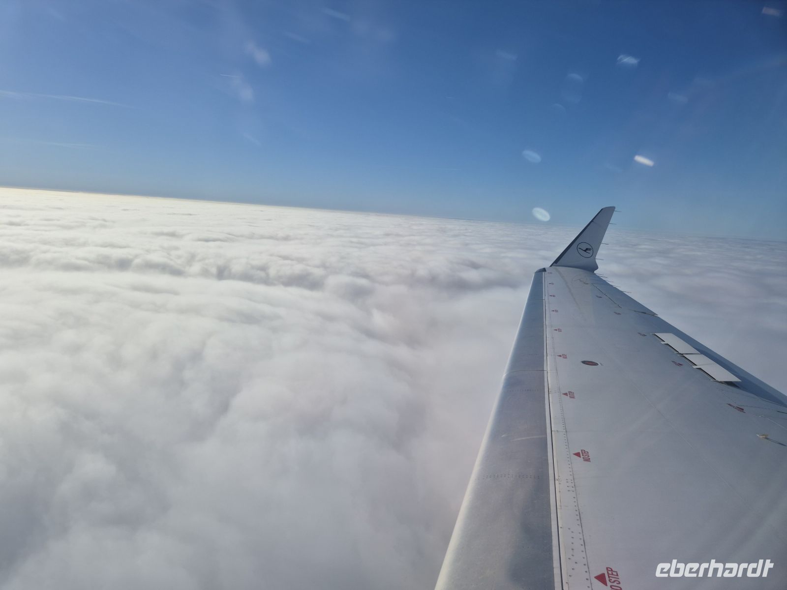 Der internationale Flughafen von Riad ist etwas speziell – die Klimaanlagen laufen auf Hochbetrieb, vielleicht sollen wir uns schon mal auf die Temperaturen zu Hause einstellen und bei der überschaubaren Anzahl an Sitzplätzen am Gate hat man sich vielleicht überlegt, dass es eh besser ist, vor einem langen Flug zu stehen. Der Flieger selbst verspätet sich. Jedoch kann mit einem zügigen Boarding etwas Zeit gut gemacht werden, so dass wir letztendlich am frühen Morgen fast pünktlich und bei schwierigen Sichtverhältnissen sicher in Frankfurt landen.