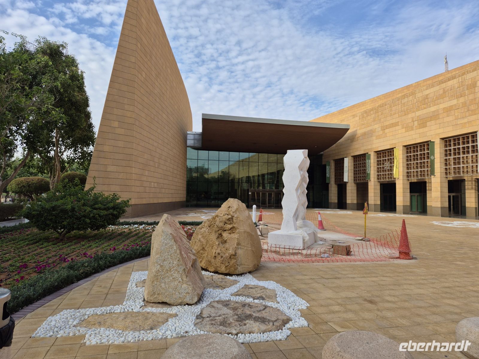 Auf dem Weg in die Innenstadt legen wir einen Stopp im KAFD (King Abdullah Finance District) ein. Der Distrikt wird von den Wolkenkratzern verschiedener Banken und Handelsunternehmen geprägt, darunter dem mit 385 Metern höchstem Gebäude der Stadt, dem PIF Tower. Eine Augenweite ist auch die hiesige Moschee mit ihrer modernen Architektur. Nach eine kurzen Mittagspause bei Starbucks fährt uns Ibrahim (syrischer Gastarbeiter aus Aleppo) zum Nationalmuseum.