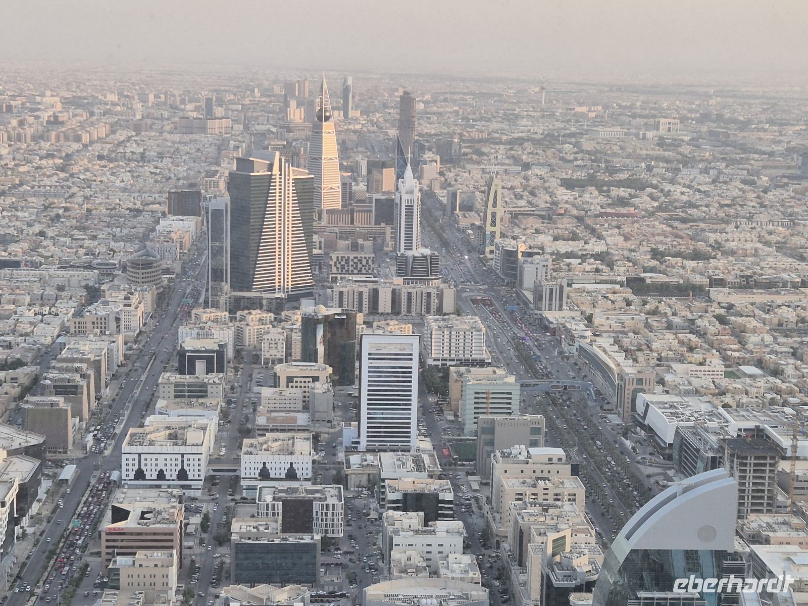 Anschließend besuchen wird den 302 Meter hohen Kingdom Tower, ein bekanntes Wahrzeichen Riads. Von der Skybridge haben wir hoch über der Stadt eine tolle Aussicht auf die 9 Millionen Metropole. So können wir die Wolkenkratzer des Finanzdistriktes KAFD im Norden und die Skyline im Süden mit dem markanten Faisaliyah Tower (der Turm mit der großen goldenen Kugel, Architekt Norman Foster) gut sehen.