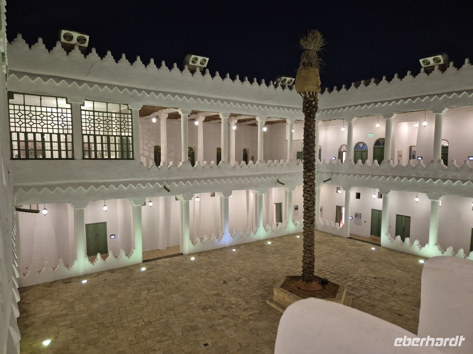 Vormittags besuchen wir das Abdul Raouf Khalil Museum. Es handelt sich um eine Privatsammlung und das größte Museum in Saudi Arabien. Das Gebäude selbst ist im traditionellen Stil der Region gebaut. Die Ausstellung mit seinen 365 Räumen ist so umfangreich, dass wir uns mit den islamischen Stätten und der saudischen Geschichte und Tradition auf zwei Schwerpunkte konzentrieren.