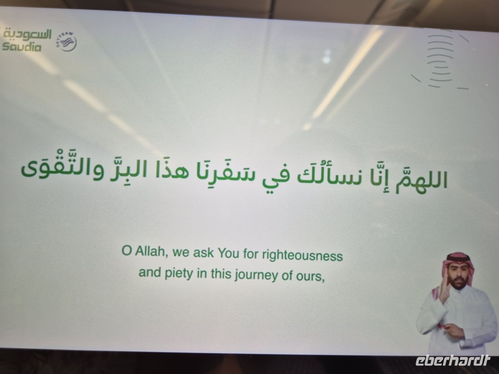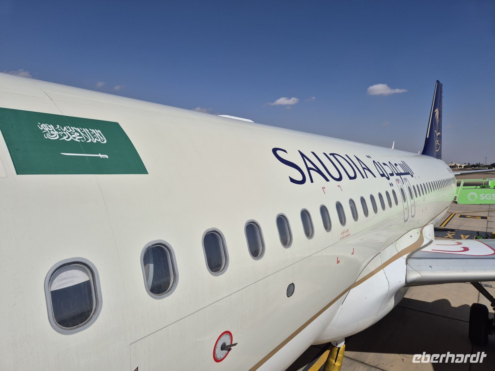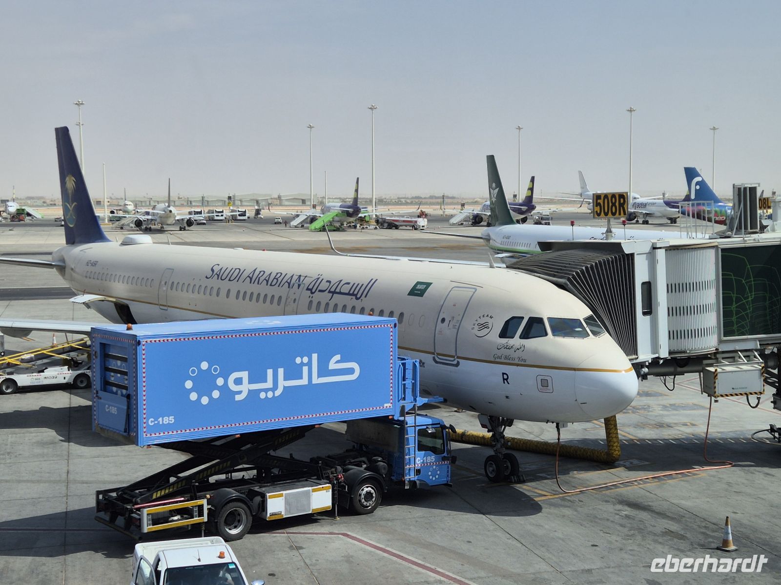 Für den Flug nach Riad mit einem Airbus A 330 der Lufthansa benötigen wir in fünfeinhalb Stunden.