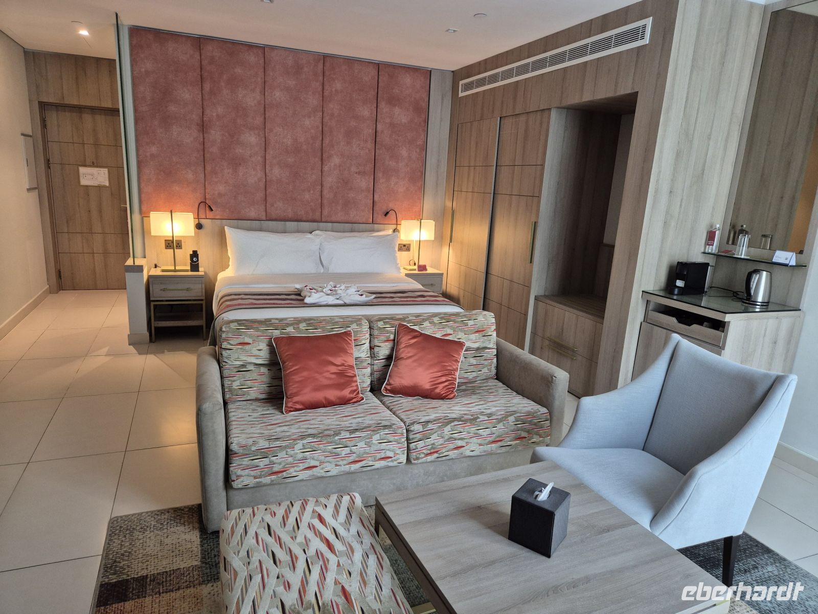 Am Morgen fahren wir durch die weit ausgedehnte Millionenstadt zum Flughafen. Dem pünktlichen Start geht noch ein Gebet für einen guten Flug voraus. Das hat auch geholfen. Nach einem 90 minütigen Flug landen wir mittags pünktlich in Jeddah. Das Wetter hier am Roten Meer unterscheidet sich deutlich von jenem in Riad. Aktuell haben wir 34 Grad und eine hohe Luftfeuchtigkeit. Wir checken als Erstes im 5 Sterne Mövenpick Hotel ein.