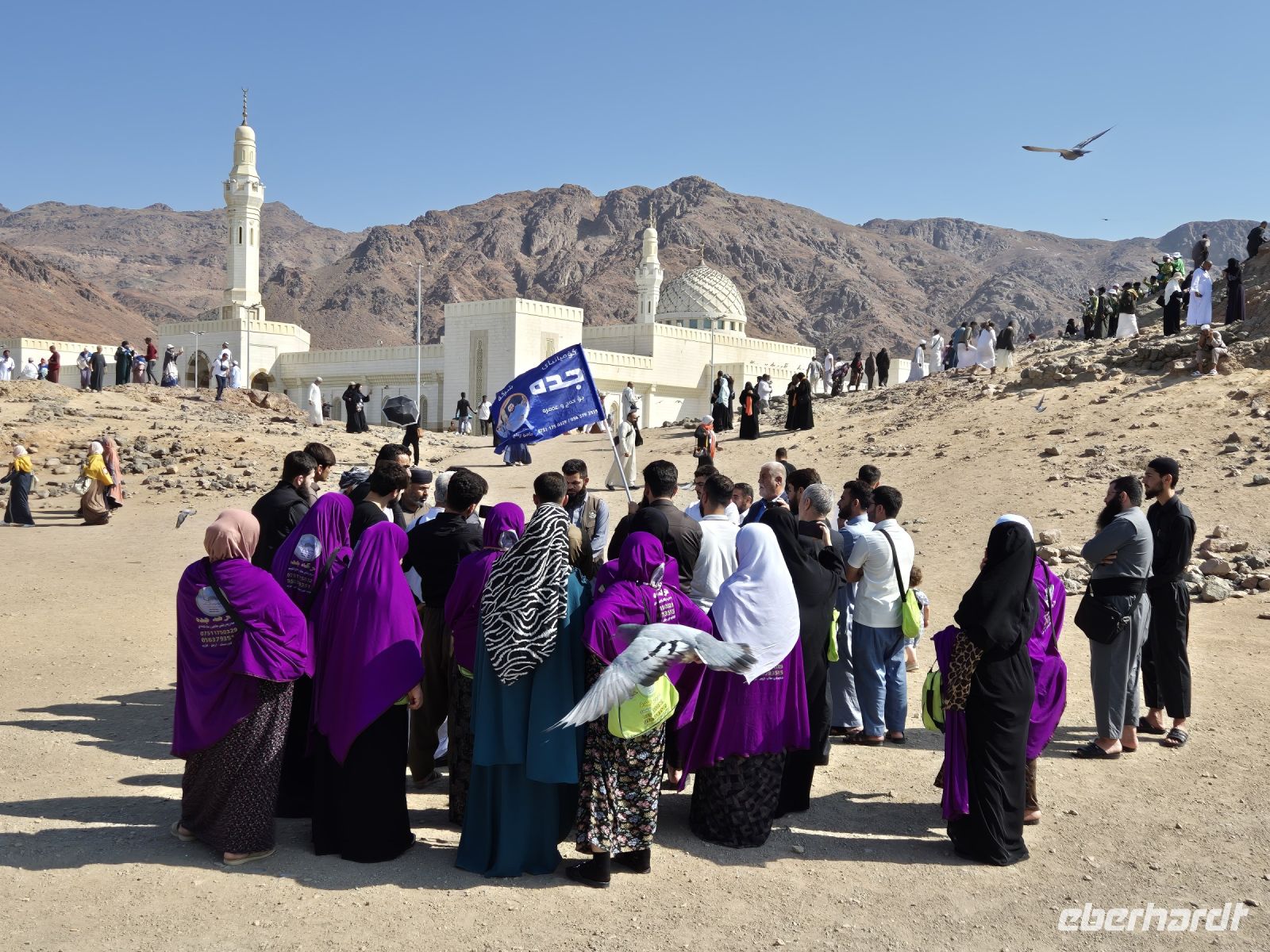Schließlich besuchen wir noch den Jebal (Berg) Uhud. Dieser zählt zu jenen Orten, an denen Kämpfe der Truppen des Propheten gegen die Quraisch aus Mekka stattfanden. Auch hier kommen viele Busse mit Pilgergruppen vorbei.